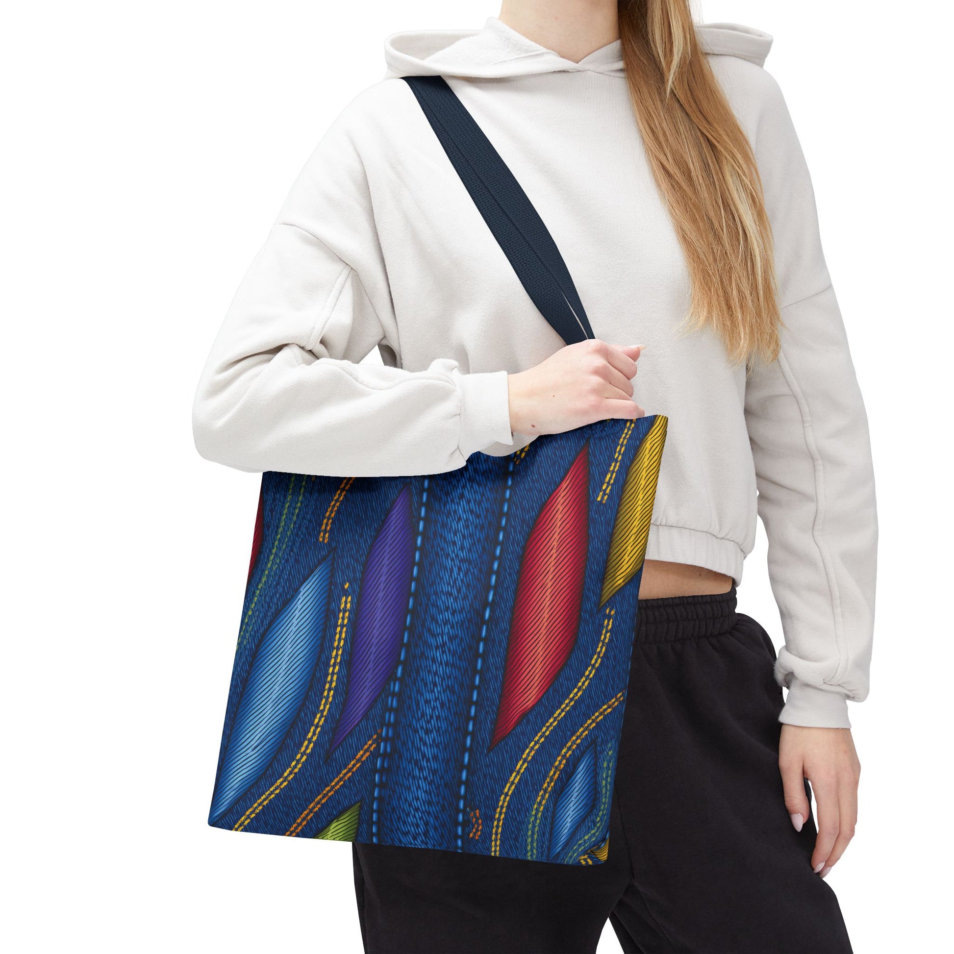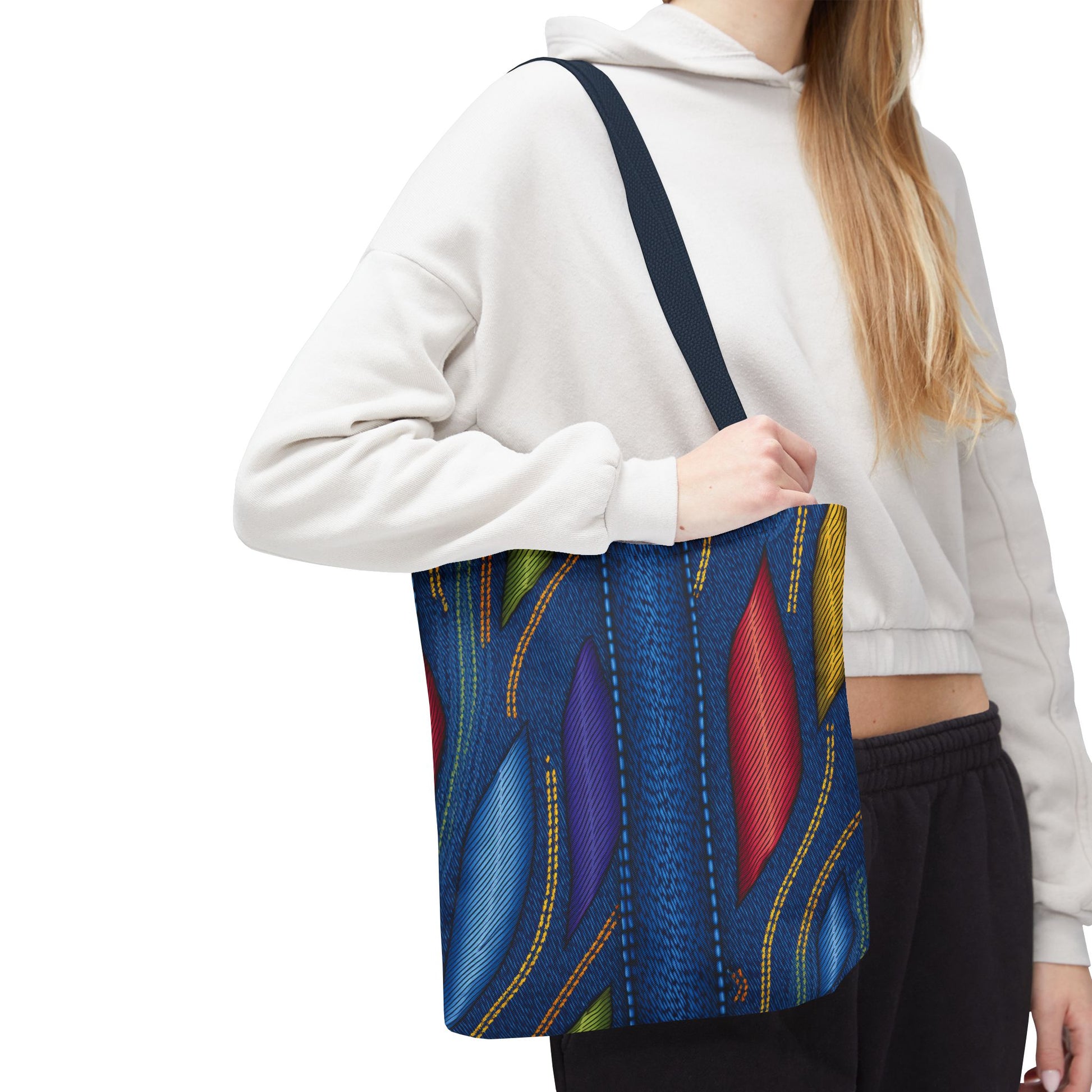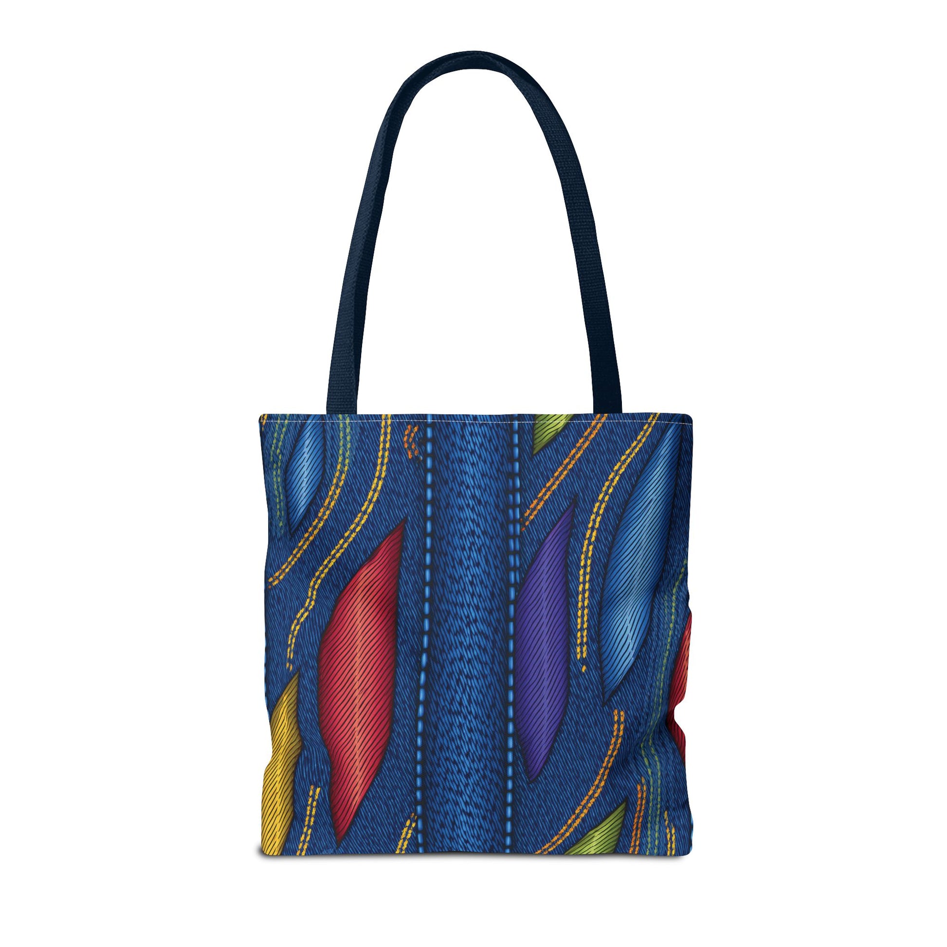 Denim Print Canvas Tote Bag – Elegant Poly Shoulder Bag - Enhance everyday functionality with timeless style in our Denim Print Canvas Tote Bag. Designed for versatility, this custom-printed tote is available in three convenient sizes and offers multiple handle color options to perfectly complement your look. Crafted from premium spun polyester, it delivers exceptional durability with double-stitched seams, sturdy cotton webbing straps, and a non-woven laminate interior.