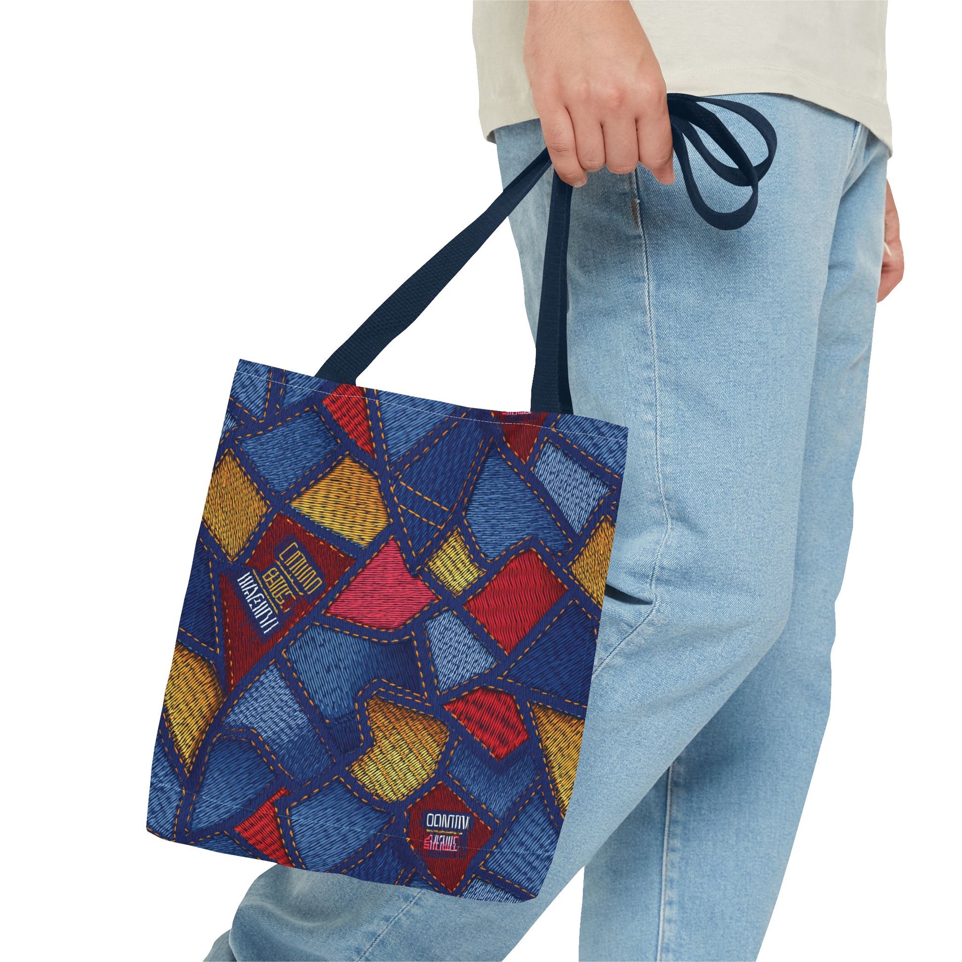 Denim Print Canvas Tote Bag – Elegant Poly Shoulder Bag - Enhance everyday functionality with timeless style in our Denim Print Canvas Tote Bag. Designed for versatility, this custom-printed tote is available in three convenient sizes and offers multiple handle color options to perfectly complement your look. Crafted from premium spun polyester, it delivers exceptional durability with double-stitched seams, sturdy cotton webbing straps, and a non-woven laminate interior.