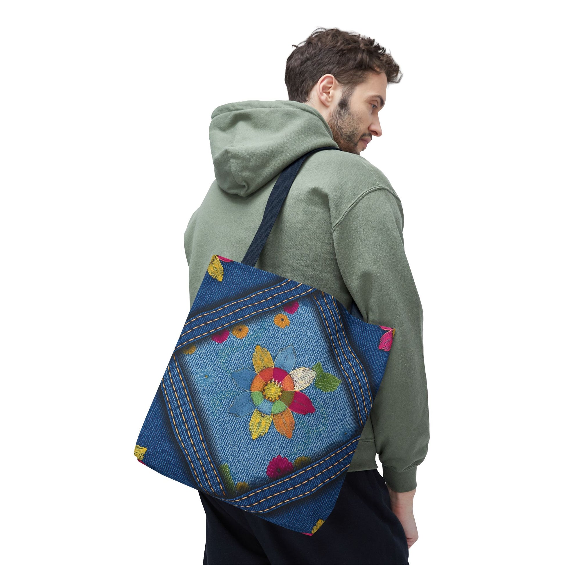 Denim Print Canvas Tote Bag – Elegant Poly Shoulder Bag - Enhance everyday functionality with timeless style in our Denim Print Canvas Tote Bag. Designed for versatility, this custom-printed tote is available in three convenient sizes and offers multiple handle color options to perfectly complement your look. Crafted from premium spun polyester, it delivers exceptional durability with double-stitched seams, sturdy cotton webbing straps, and a non-woven laminate interior.