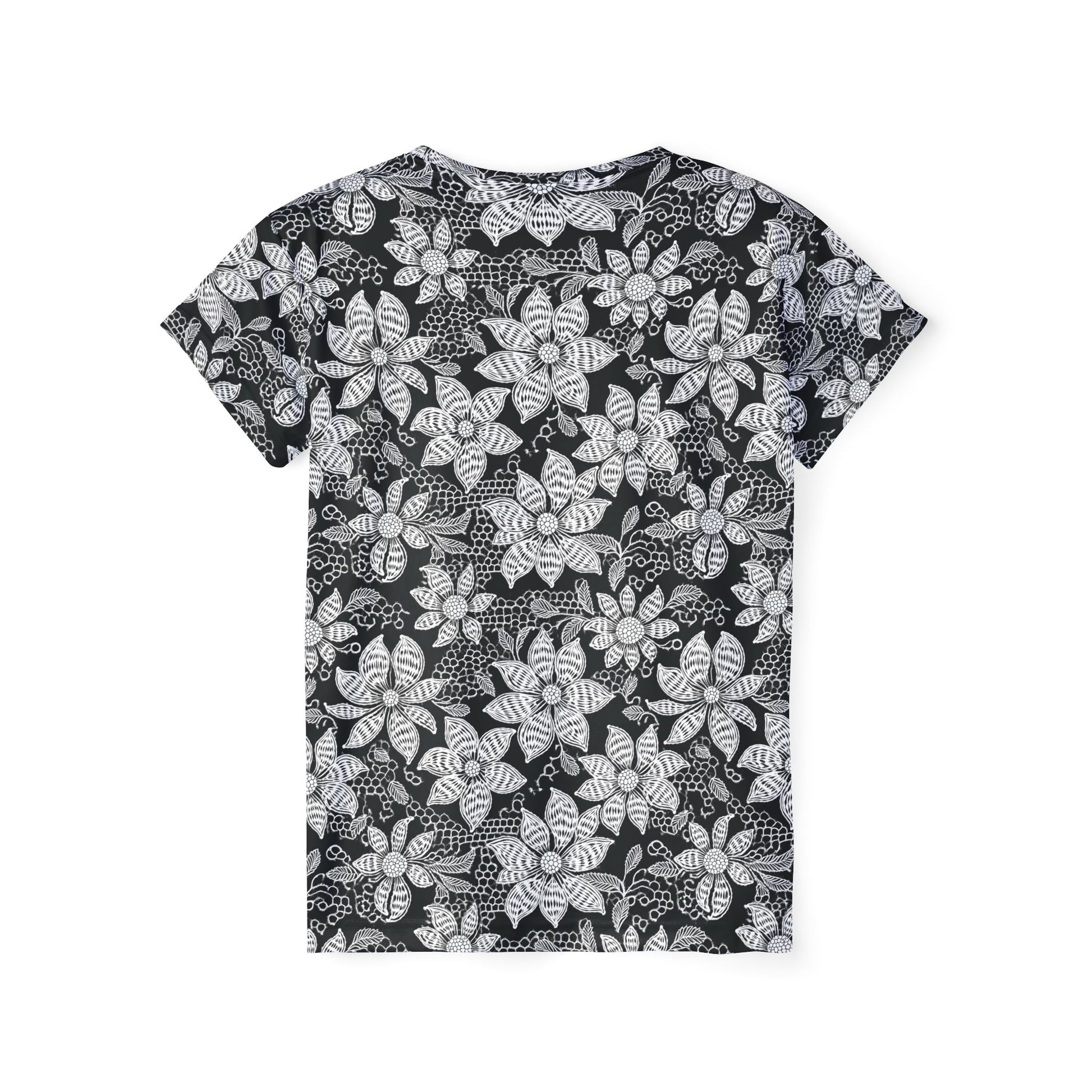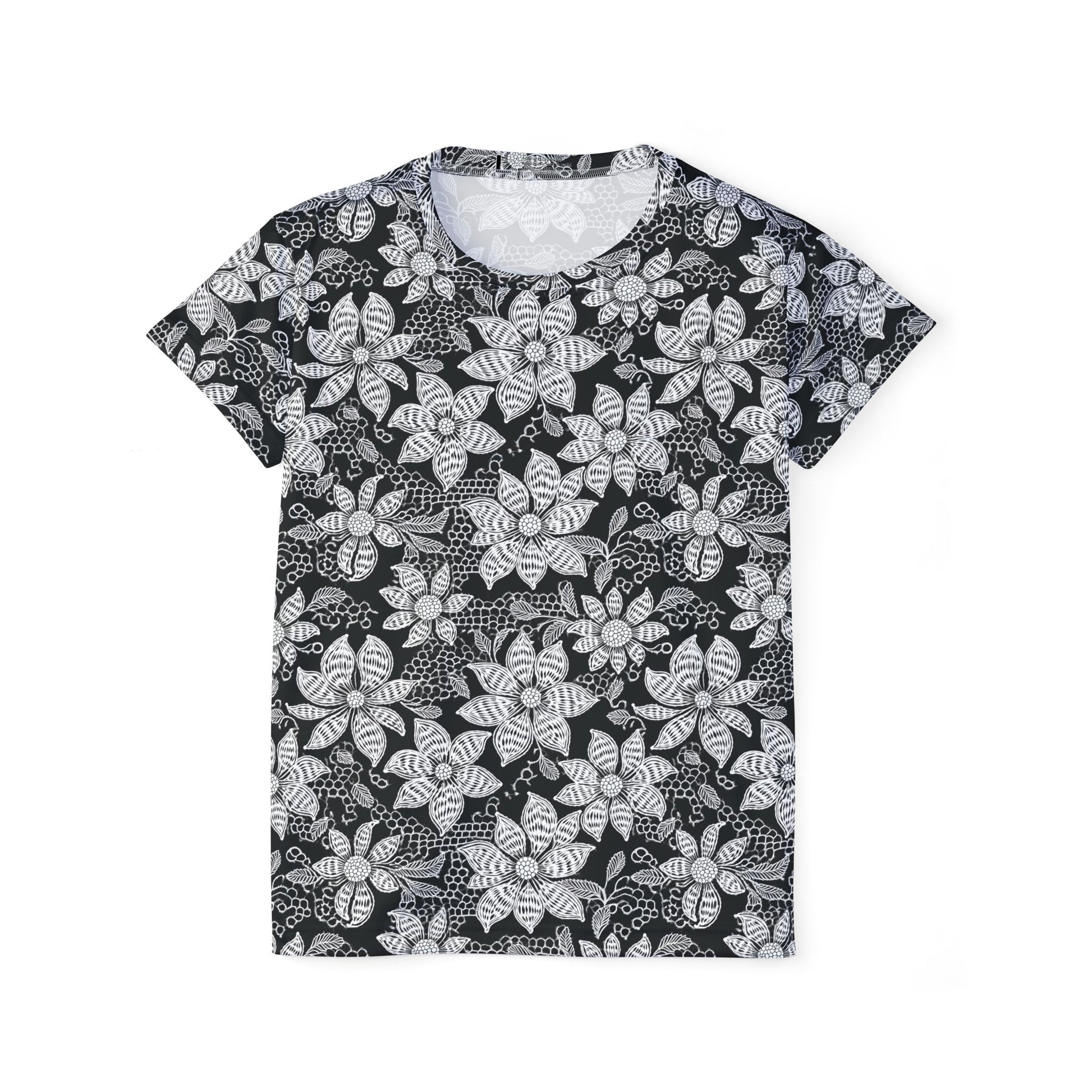 Lace Print Poly Shirt, Poly Shirt with Lace Print, Lace Shirt – Made to order using eco-friendly dye-sublimation printing. Water-based process ensures vibrant, all-over prints that never peel, crack, or fade.