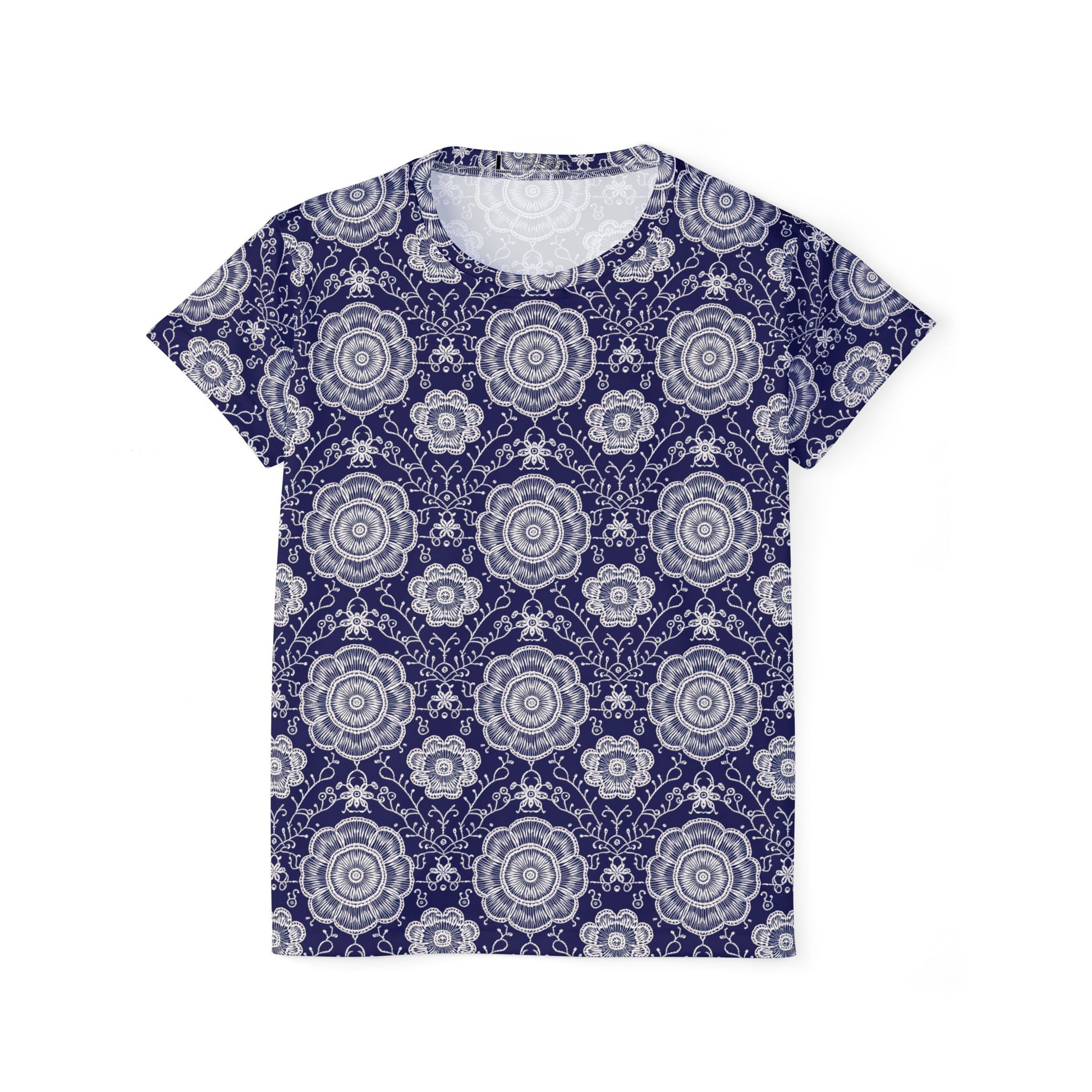 Lace Print Poly Shirt, Poly Shirt with Lace Print, Lace Shirt – Made to order using eco-friendly dye-sublimation printing. Water-based process ensures vibrant, all-over prints that never peel, crack, or fade.