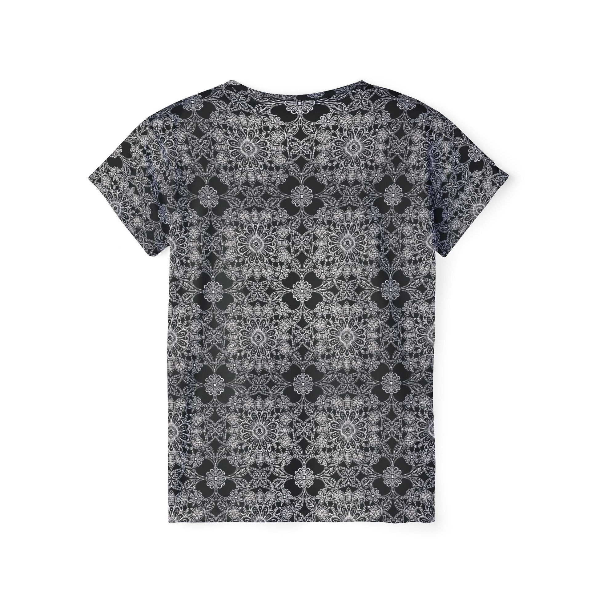 Lace Print Poly Shirt, Poly Shirt with Lace Print, Lace Shirt – Made to order using eco-friendly dye-sublimation printing. Water-based process ensures vibrant, all-over prints that never peel, crack, or fade.