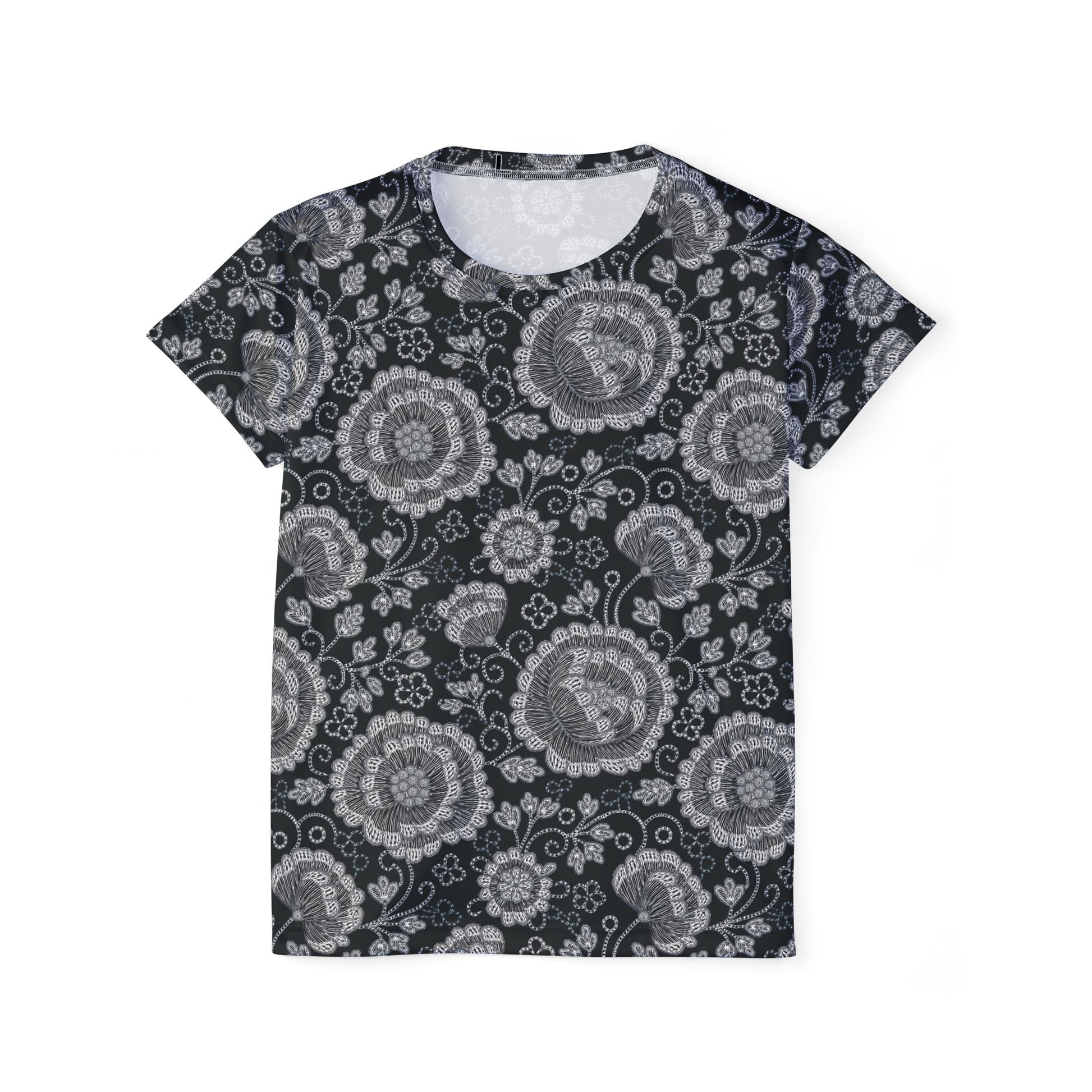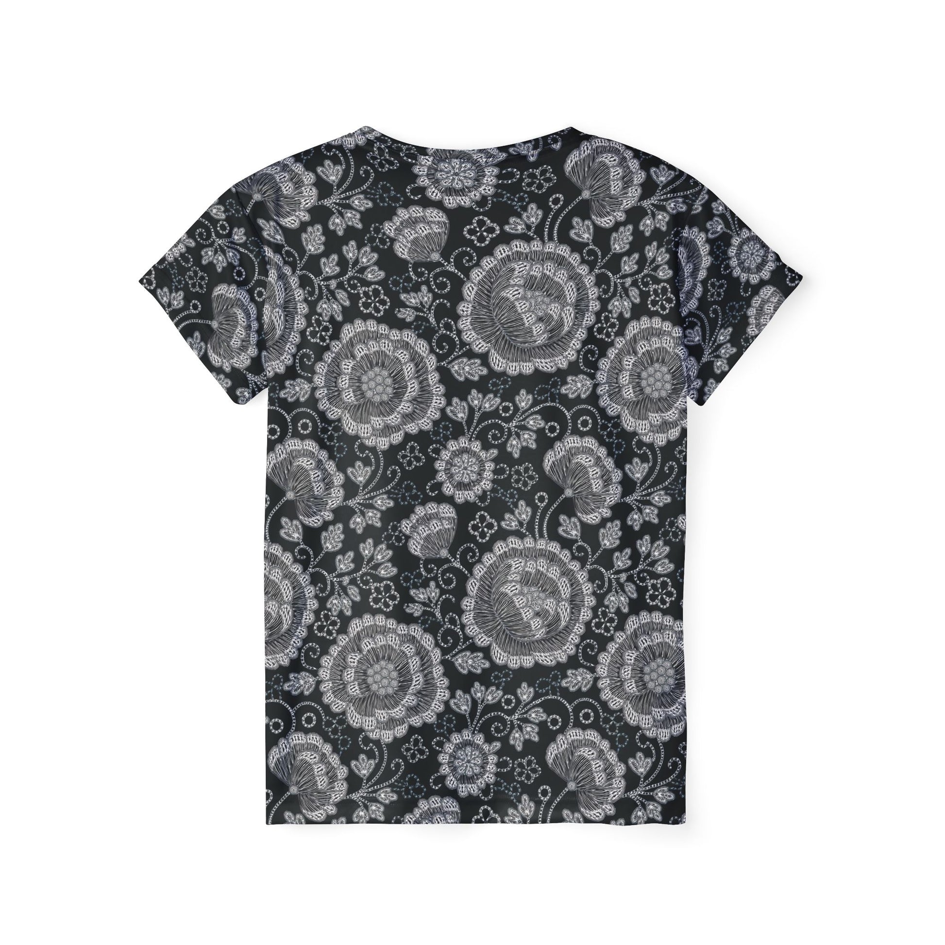 Lace Print Poly Shirt, Poly Shirt with Lace Print, Lace Shirt – Made to order using eco-friendly dye-sublimation printing. Water-based process ensures vibrant, all-over prints that never peel, crack, or fade.