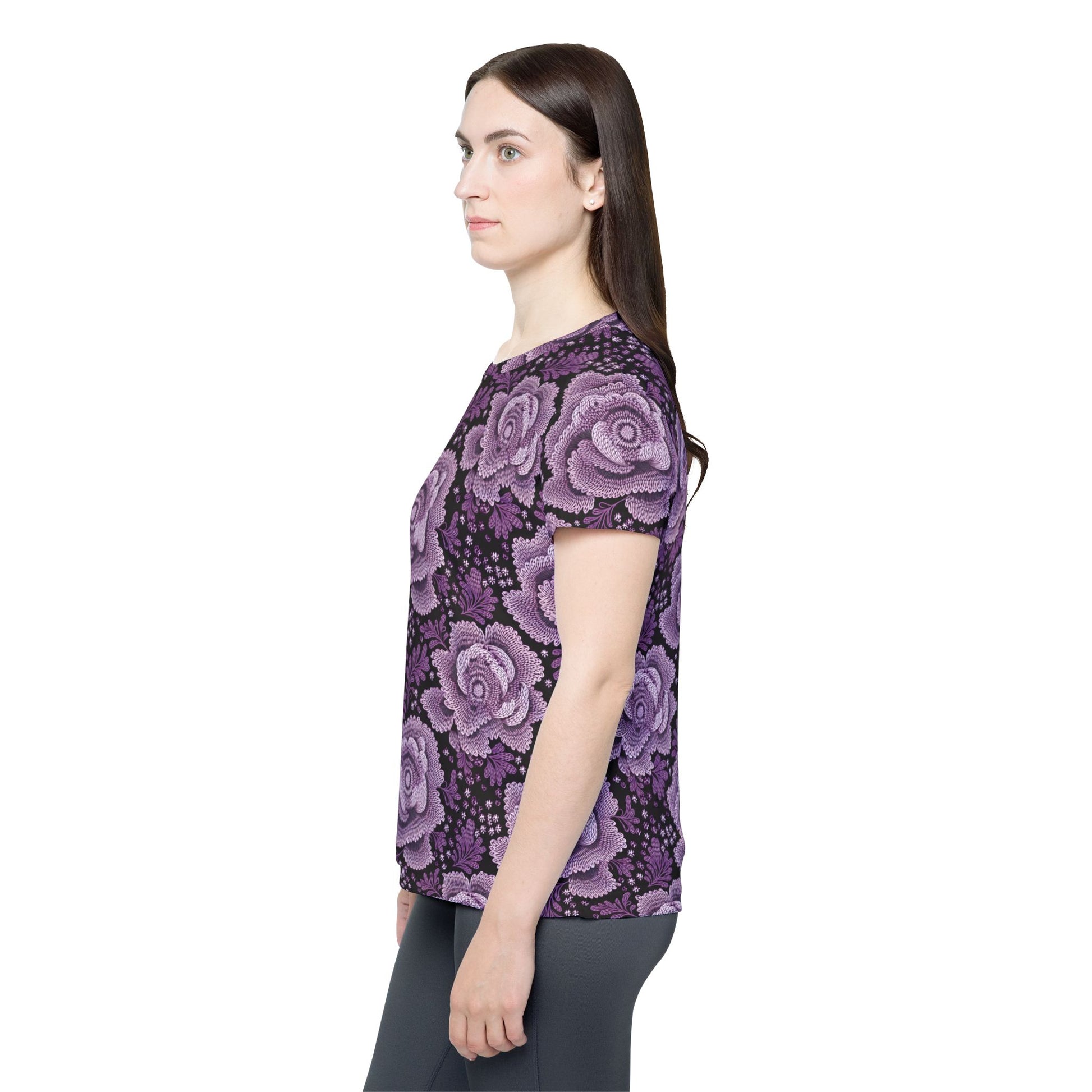 Lace Print Poly Shirt, Poly Shirt with Lace Print, Lace Shirt – Made to order using eco-friendly dye-sublimation printing. Water-based process ensures vibrant, all-over prints that never peel, crack, or fade.