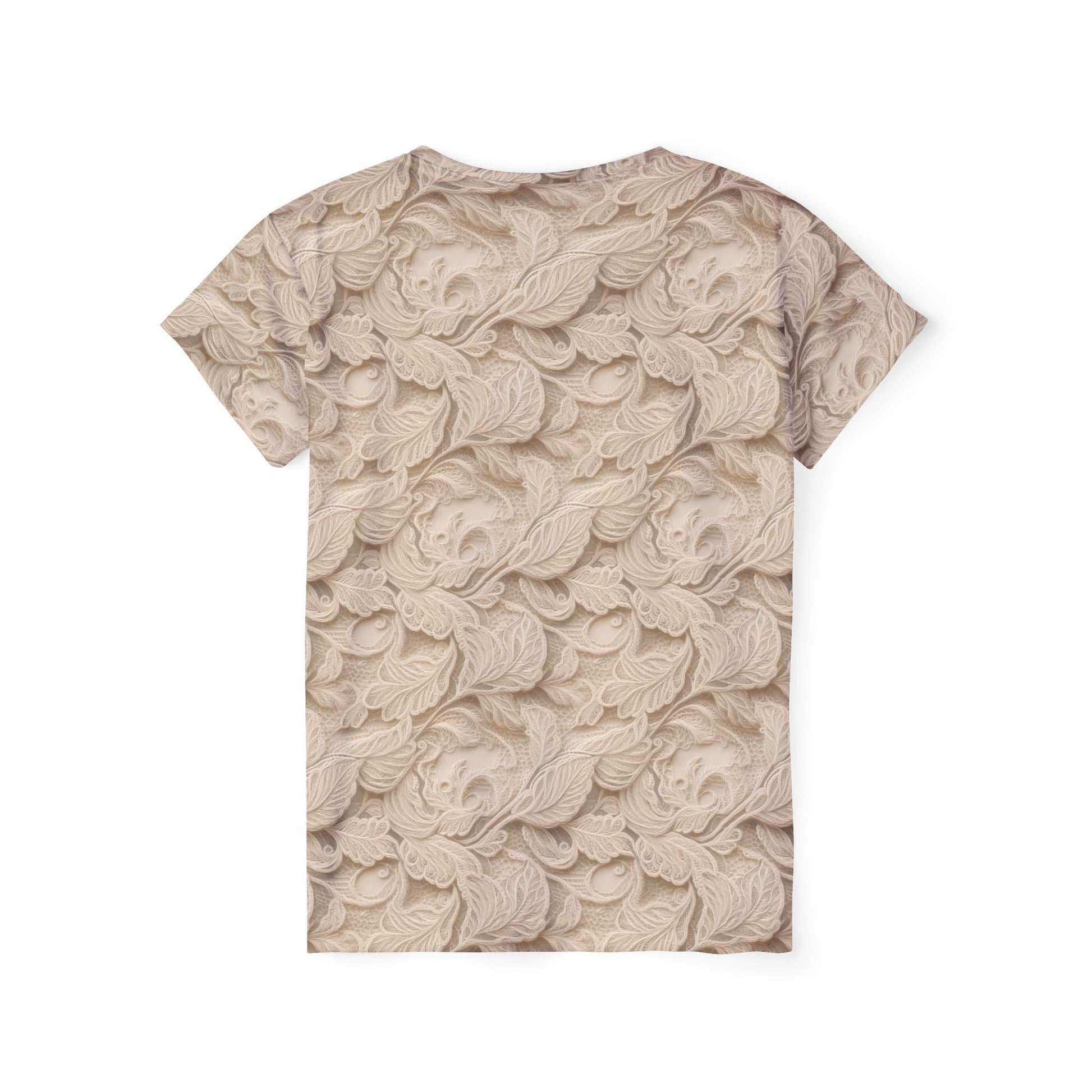 Lace Print Poly Shirt, Poly Shirt with Lace Print, Lace Shirt – Made to order using eco-friendly dye-sublimation printing. Water-based process ensures vibrant, all-over prints that never peel, crack, or fade.