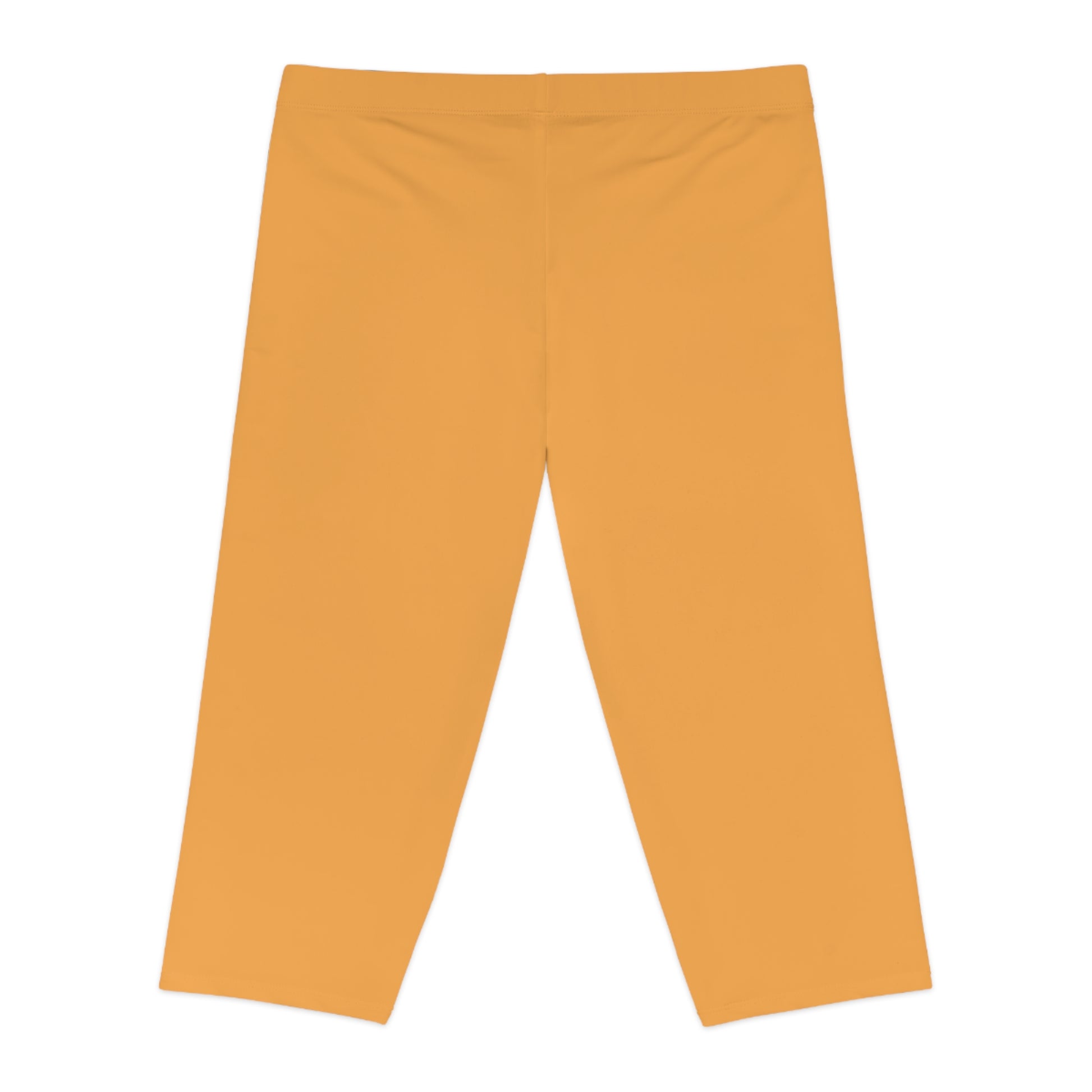 Orange Color Capri Leggings, Orange Capri Leggings - From PPU.BEST. Free shipping! Material: 88% polyester, 12% elastane – a highly stretchy fabric. The elastane provides exceptional flexibility and softness for maximum comfort. Medium-weight fabric (6.5 oz/yd² or 220 g/m²). Designed with a mid-waist and compression fit, these leggings offer a sleek and supportive feel, perfect for everyday wear in any setting.