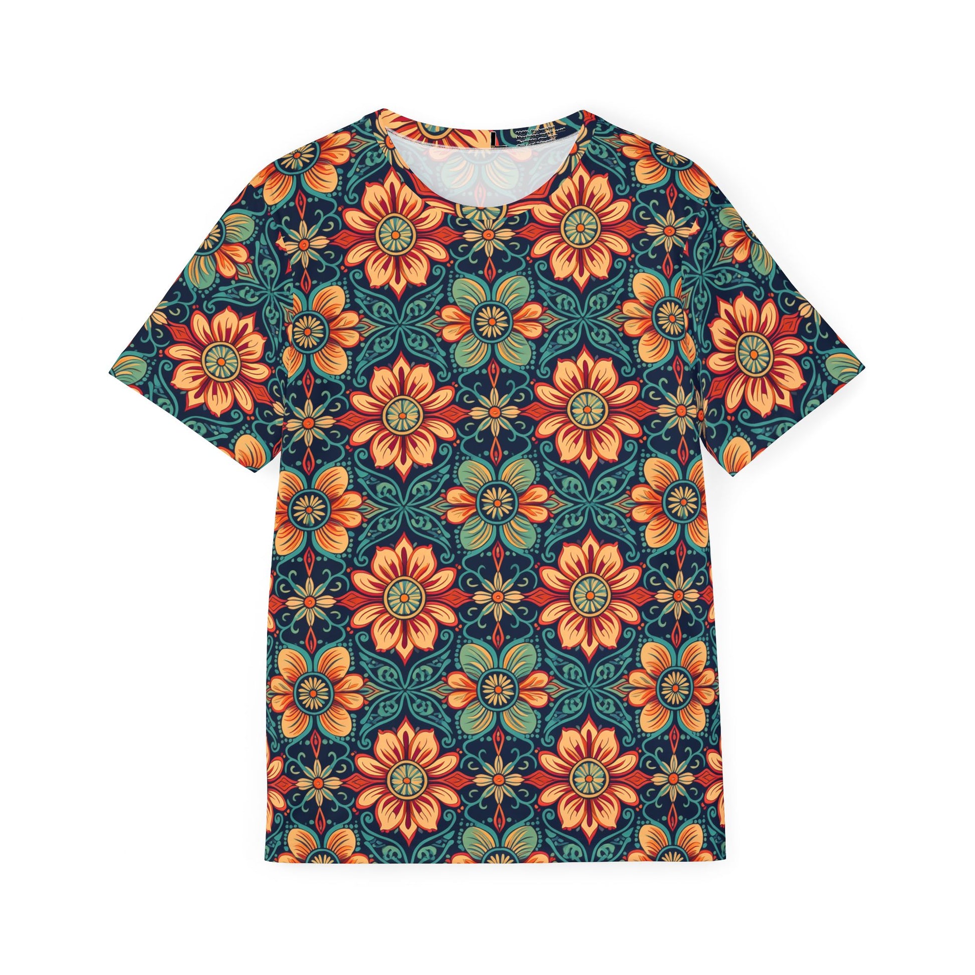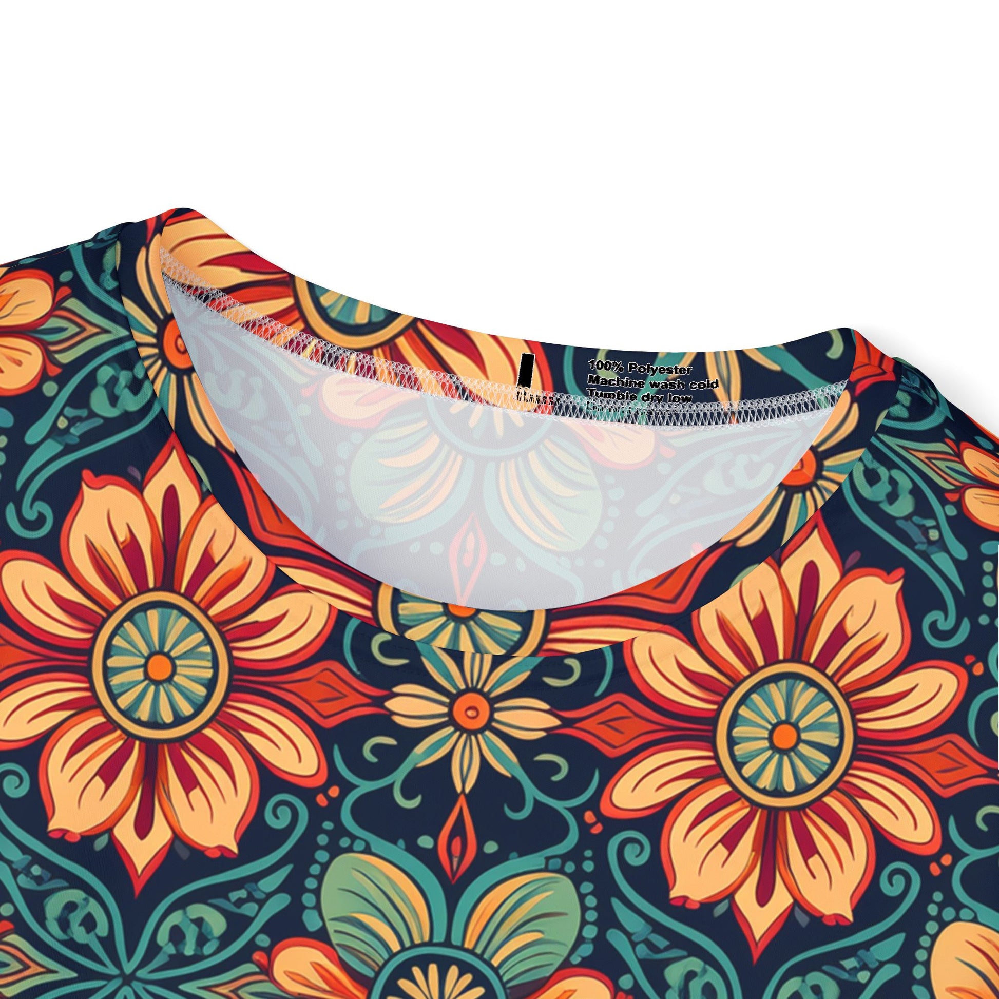 Unisex Ornament Shirt, Shirt with Ornament – Made from 100% moisture-wicking performance polyester, this extra-light fabric (4.13 oz/yd²) ensures breathability and comfort. Designed for active lifestyles, its stretchy, durable material provides both style and performance. Featuring a unique all-over print, this nature-inspired jersey offers a bold, timeless look. This Poly Tee combines fashion and function, making it the perfect choice for any adventure or workout.