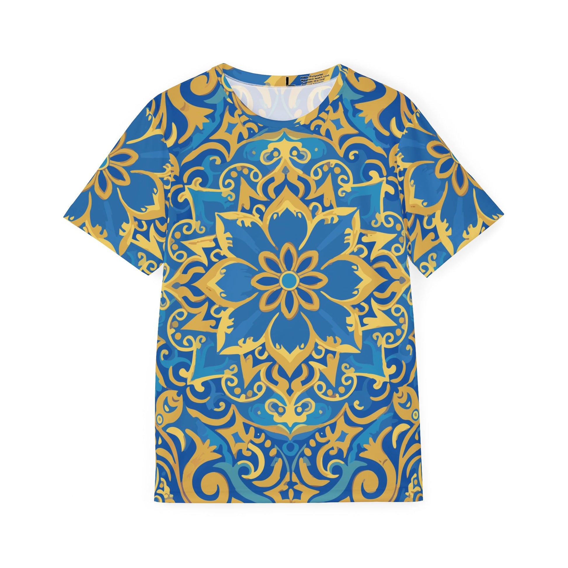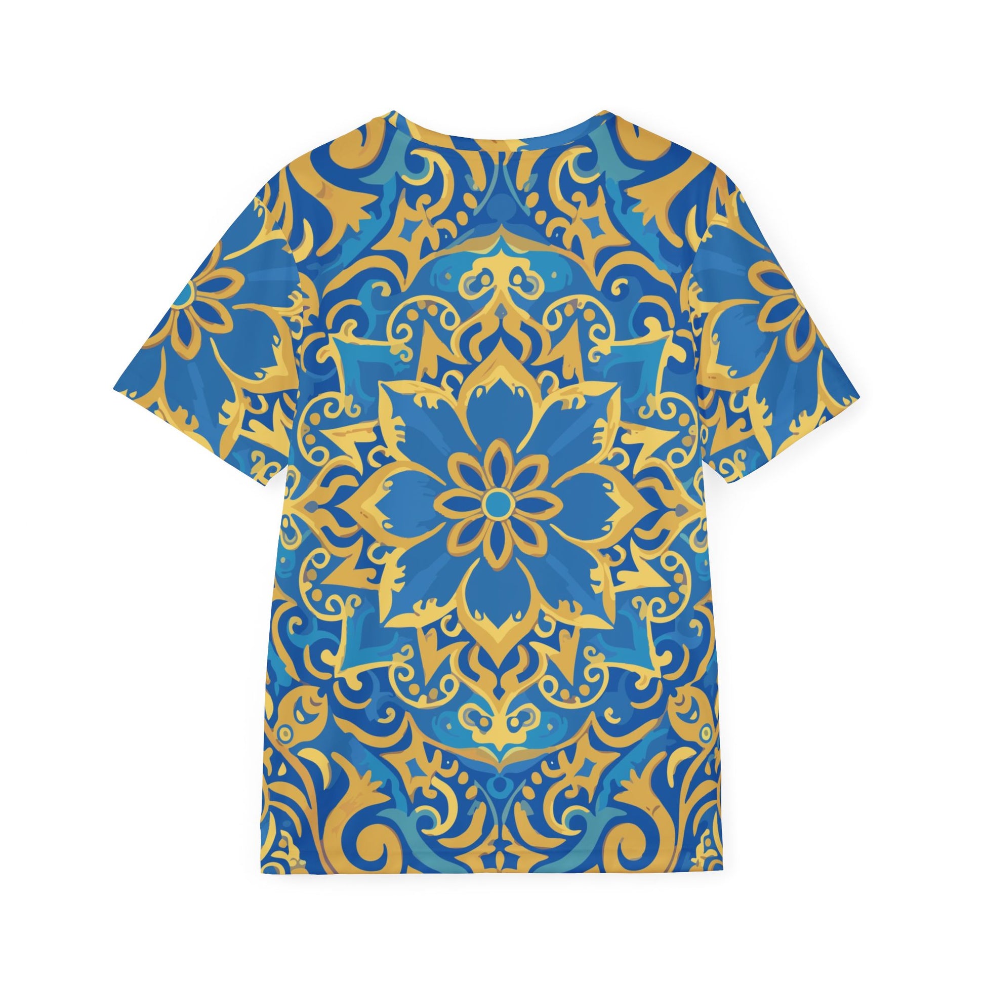 Unisex Ornament Shirt, Shirt with Ornament – Made from 100% moisture-wicking performance polyester, this extra-light fabric (4.13 oz/yd²) ensures breathability and comfort. Designed for active lifestyles, its stretchy, durable material provides both style and performance. Featuring a unique all-over print, this nature-inspired jersey offers a bold, timeless look. This Poly Tee combines fashion and function, making it the perfect choice for any adventure or workout.