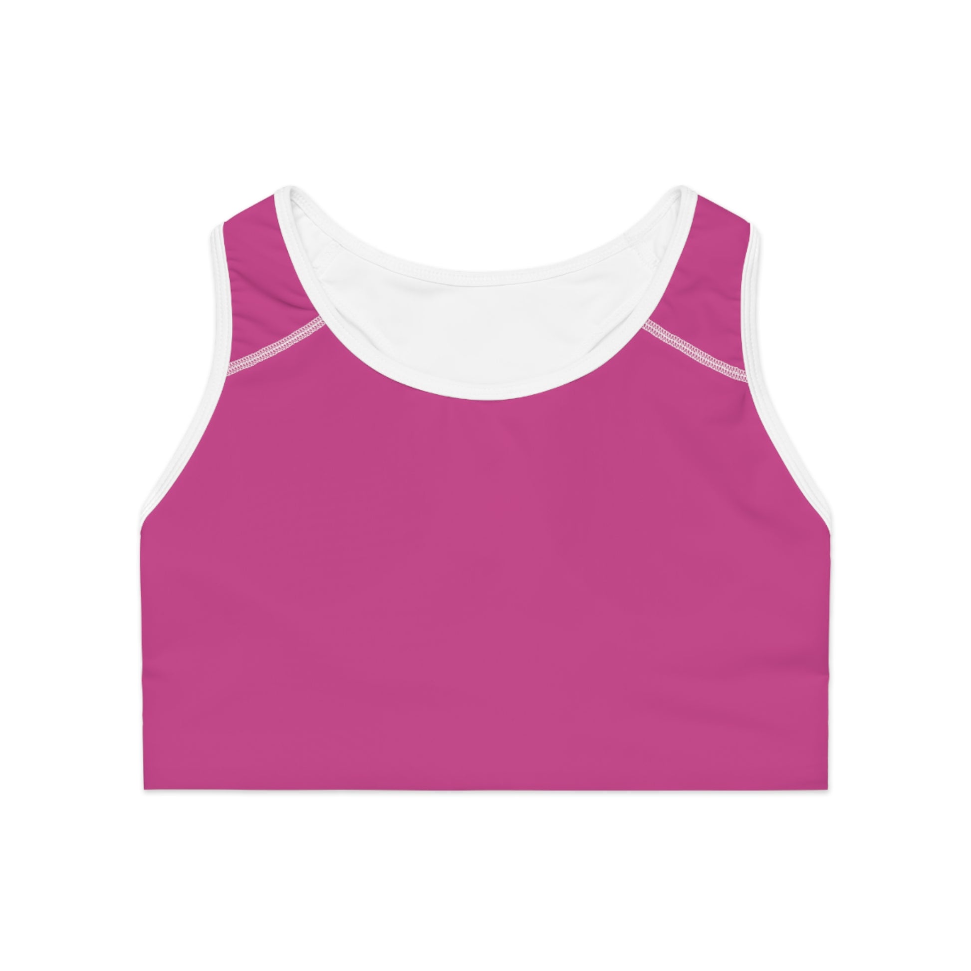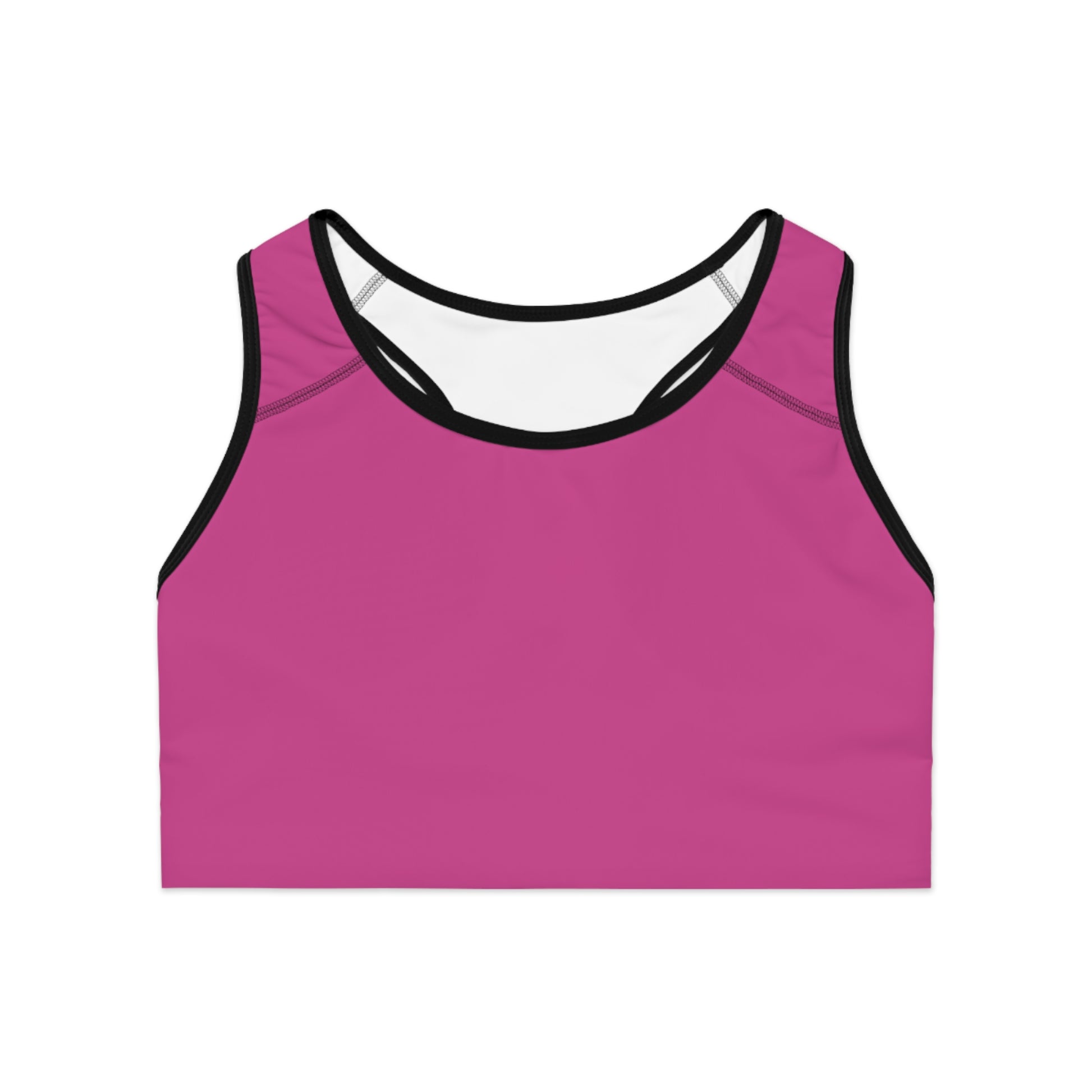 Pink Color Sports Bra, Pink Sports Bra - From PPU.BEST. Free shipping! Material: 83% polyester, 17% spandex - Moisture wicking material -Transfers moisture away from your skin during any physical activity and keeps cool. Medium fabric (6.5 oz/yd² (210 g/m²)). Compression fit. Designed to be light and comfortable. With a double-layer front, support in the shoulder straps, and a wide elastic band to ensure constant support.