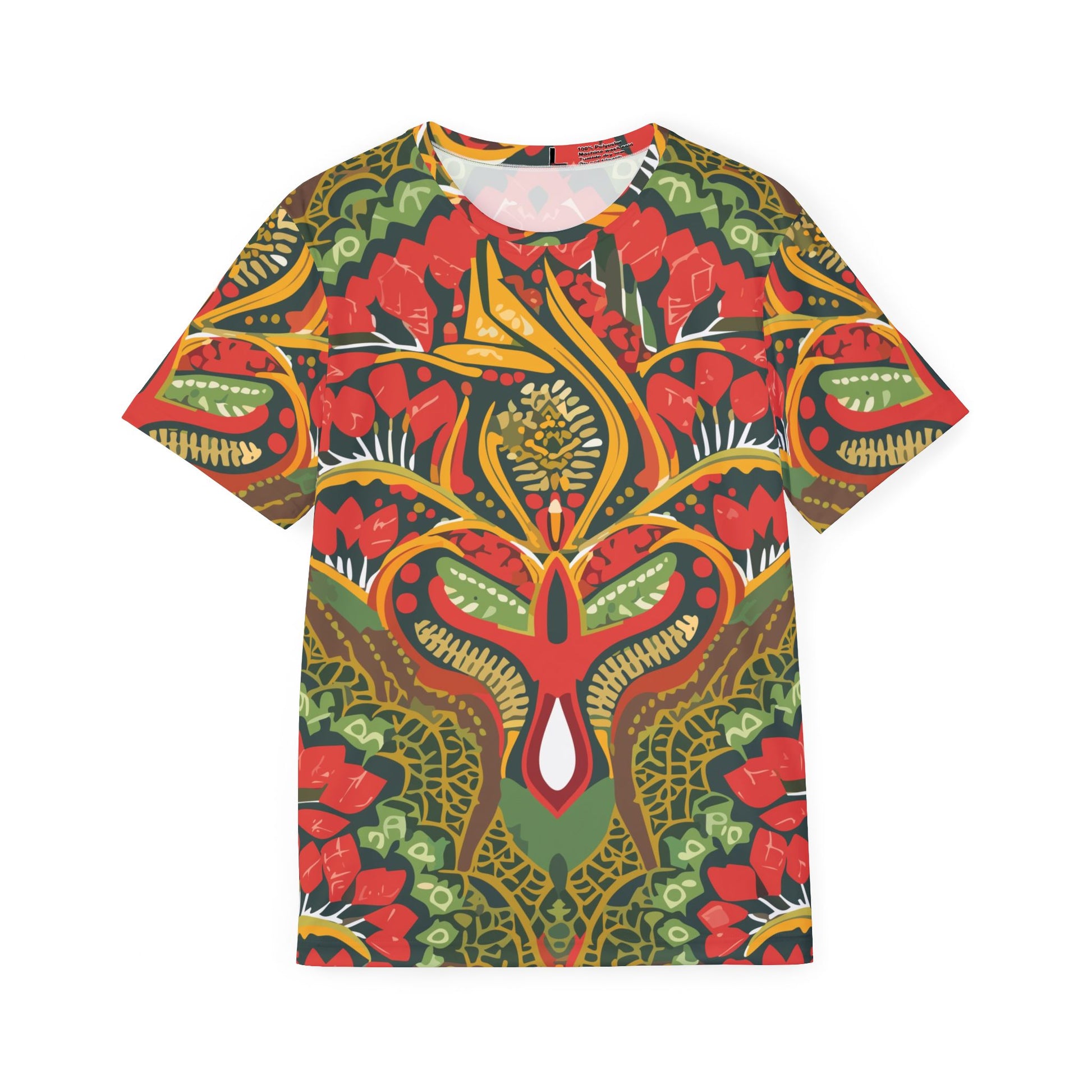 Unisex Ornament Shirt, Shirt with Ornament – Made from 100% moisture-wicking performance polyester, this extra-light fabric (4.13 oz/yd²) ensures breathability and comfort. Designed for active lifestyles, its stretchy, durable material provides both style and performance. Featuring a unique all-over print, this nature-inspired jersey offers a bold, timeless look. This Poly Tee combines fashion and function, making it the perfect choice for any adventure or workout.