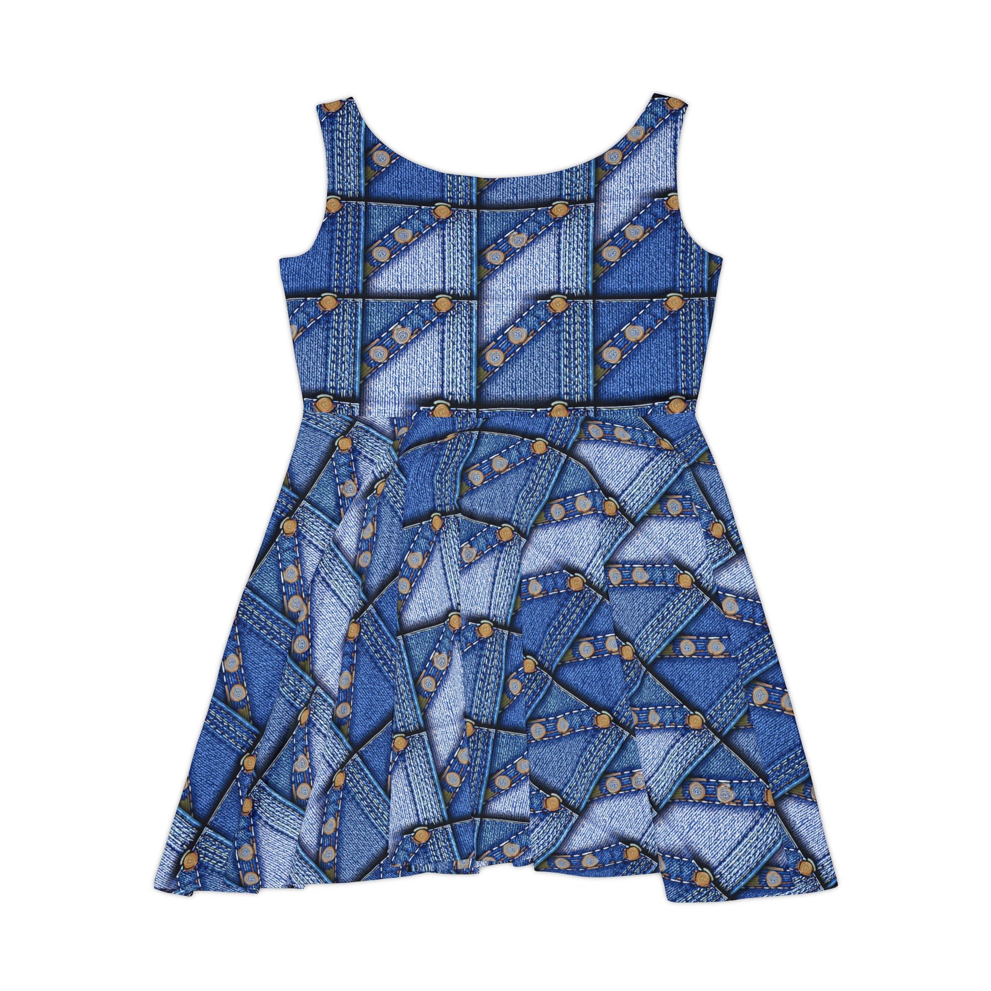 Women Denim Print Skater Dress, Denim Print Poly-Span Dress - 30