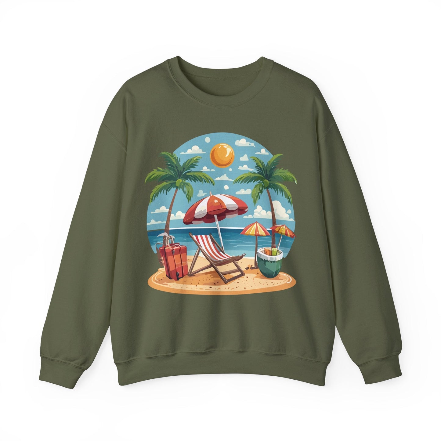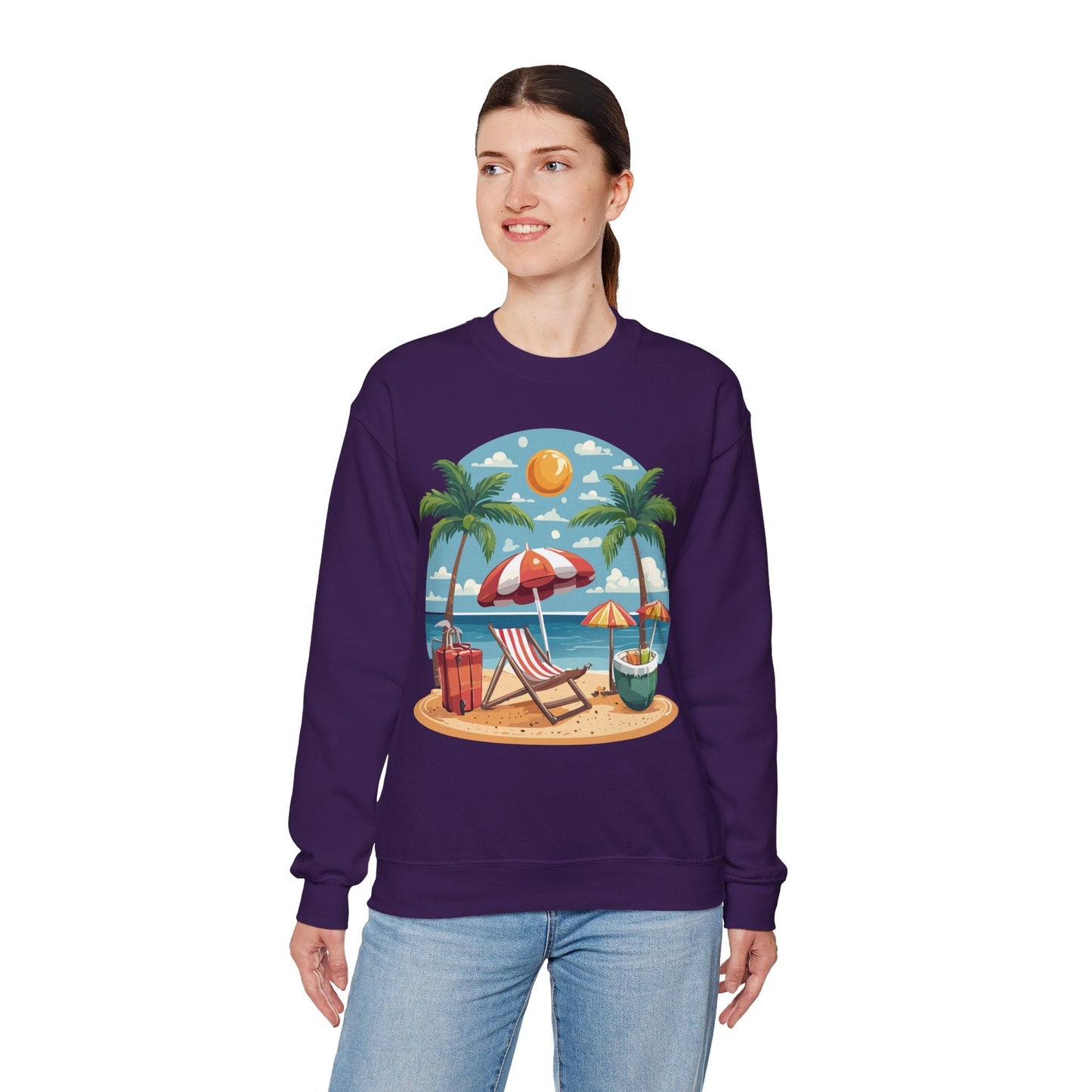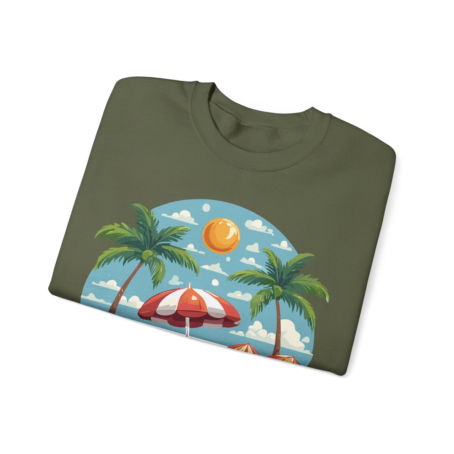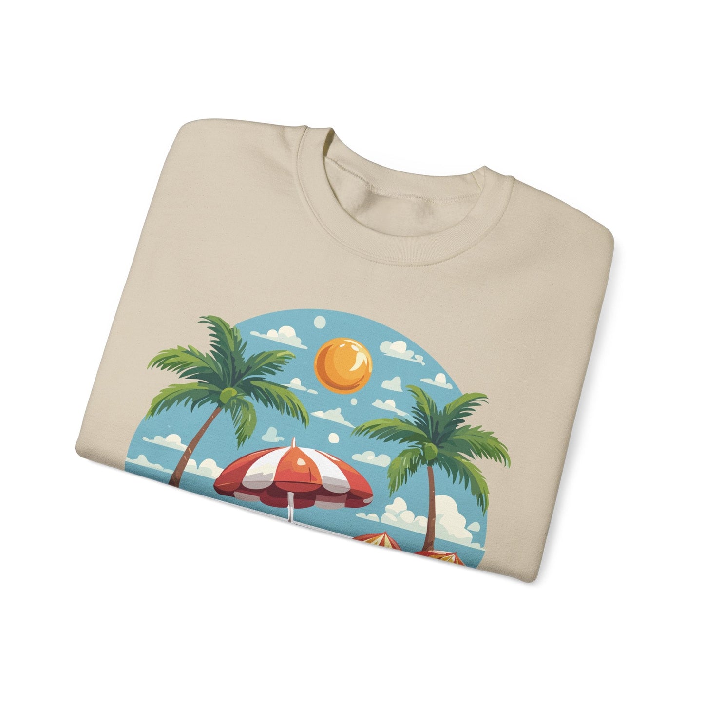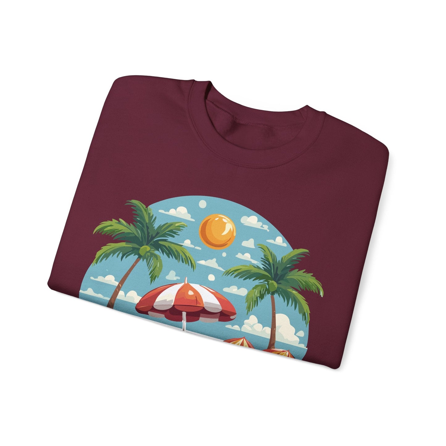 BEACH Sweatshirt - Produced using Brother GTX machines with full-color DTG prints at 1200 DPI. Logo-friendly Innobella water-based pigment inks are OEKO-TEX, Logo-Pass certified, and CPSIA-compliant.