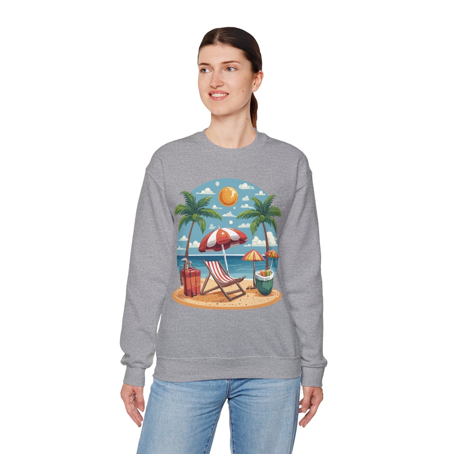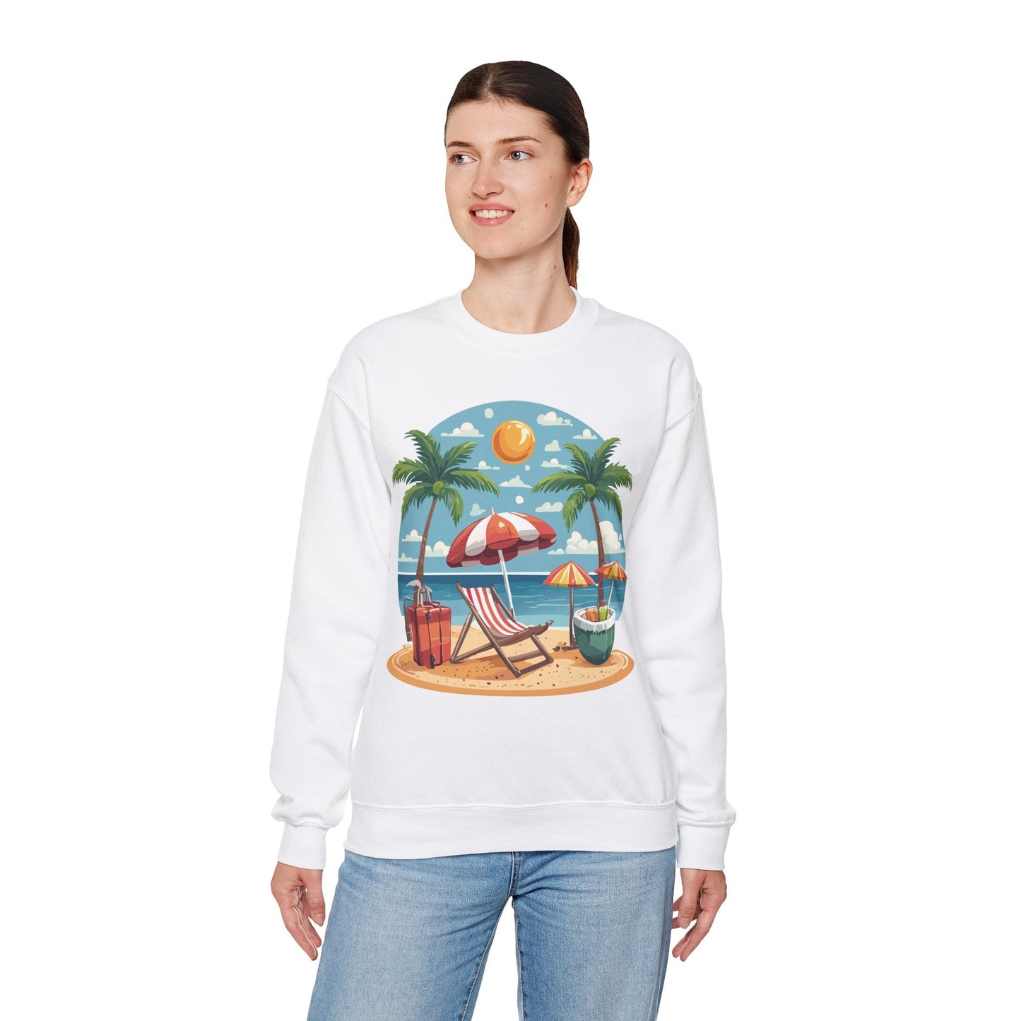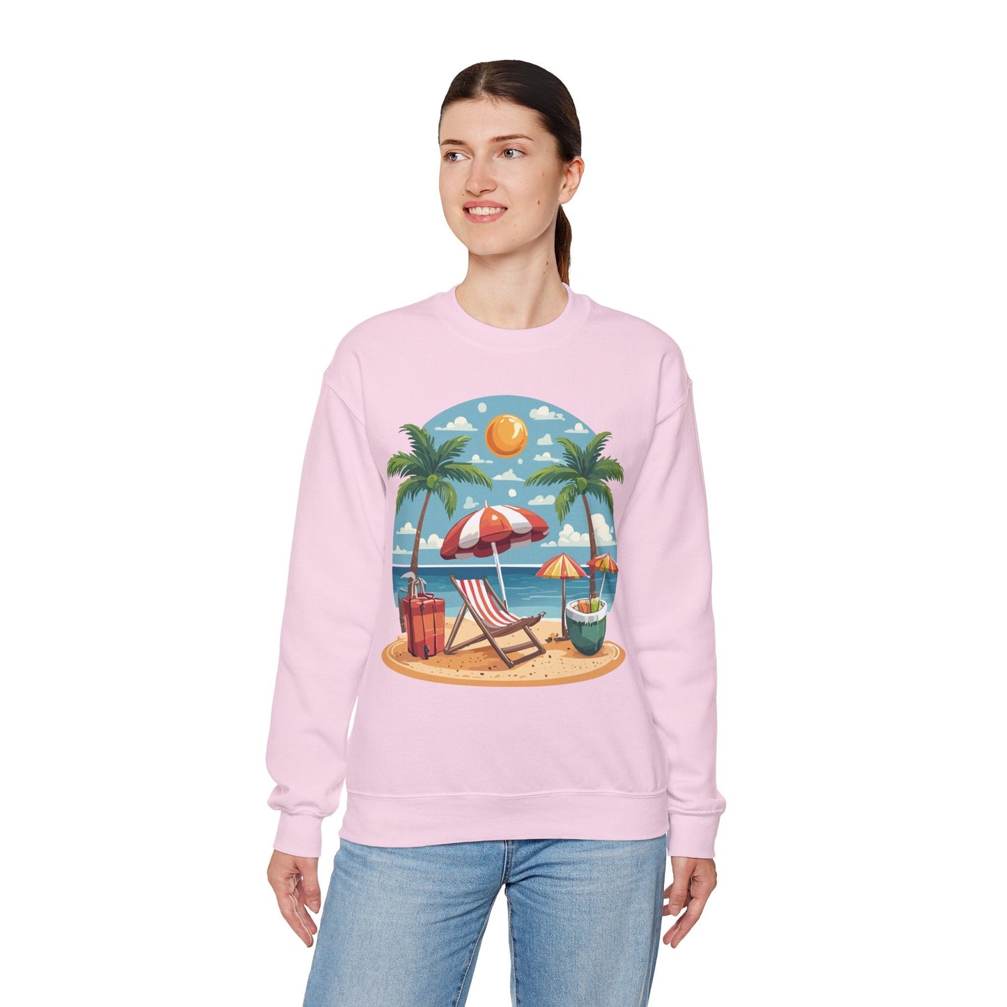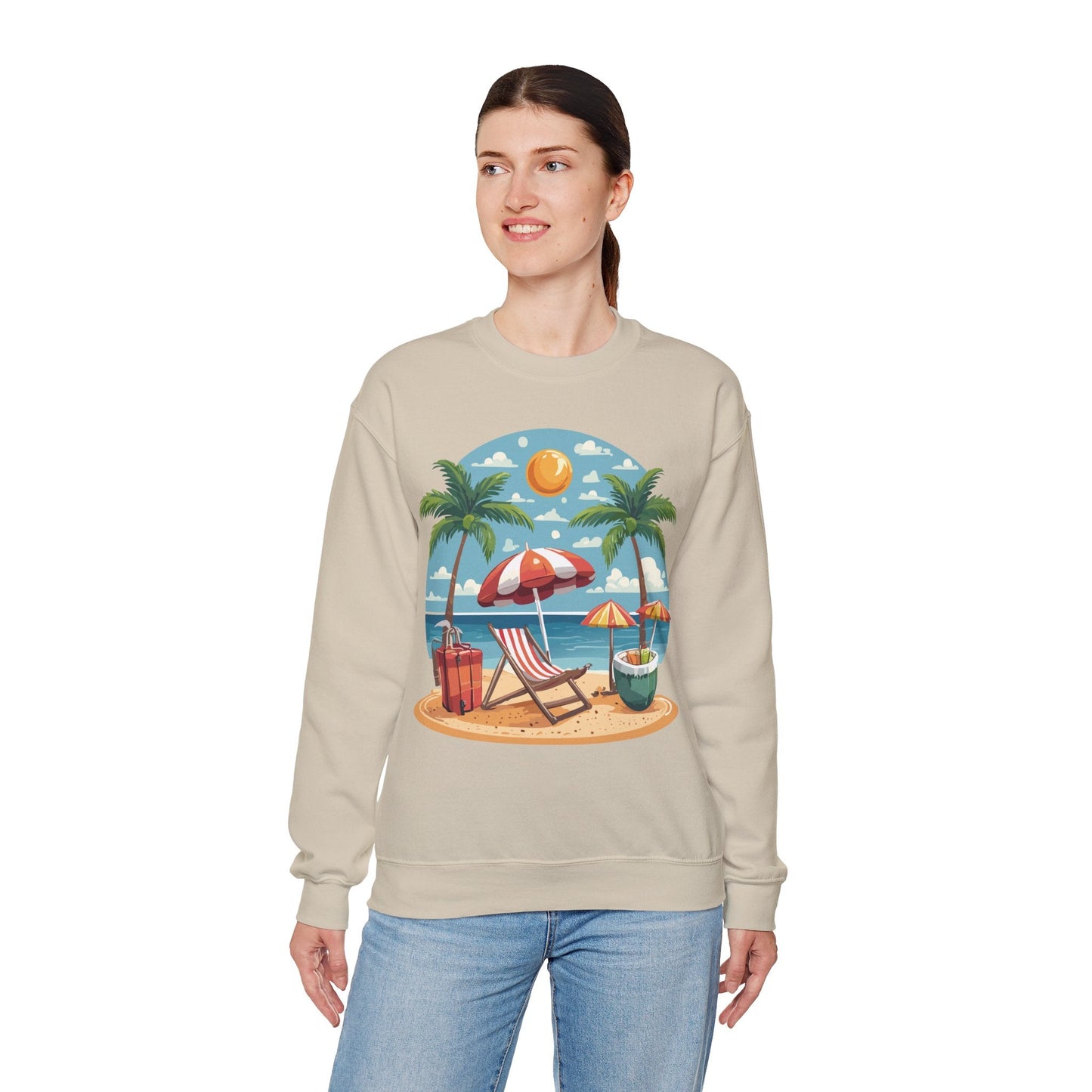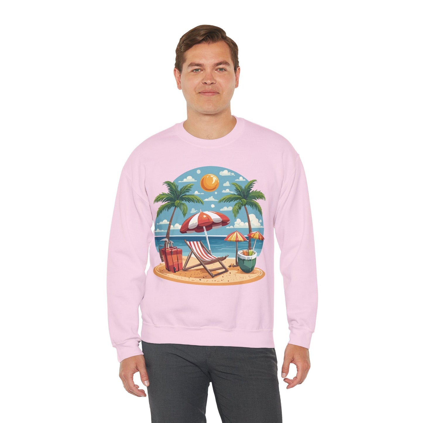 BEACH Sweatshirt - Produced using Brother GTX machines with full-color DTG prints at 1200 DPI. Logo-friendly Innobella water-based pigment inks are OEKO-TEX, Logo-Pass certified, and CPSIA-compliant.