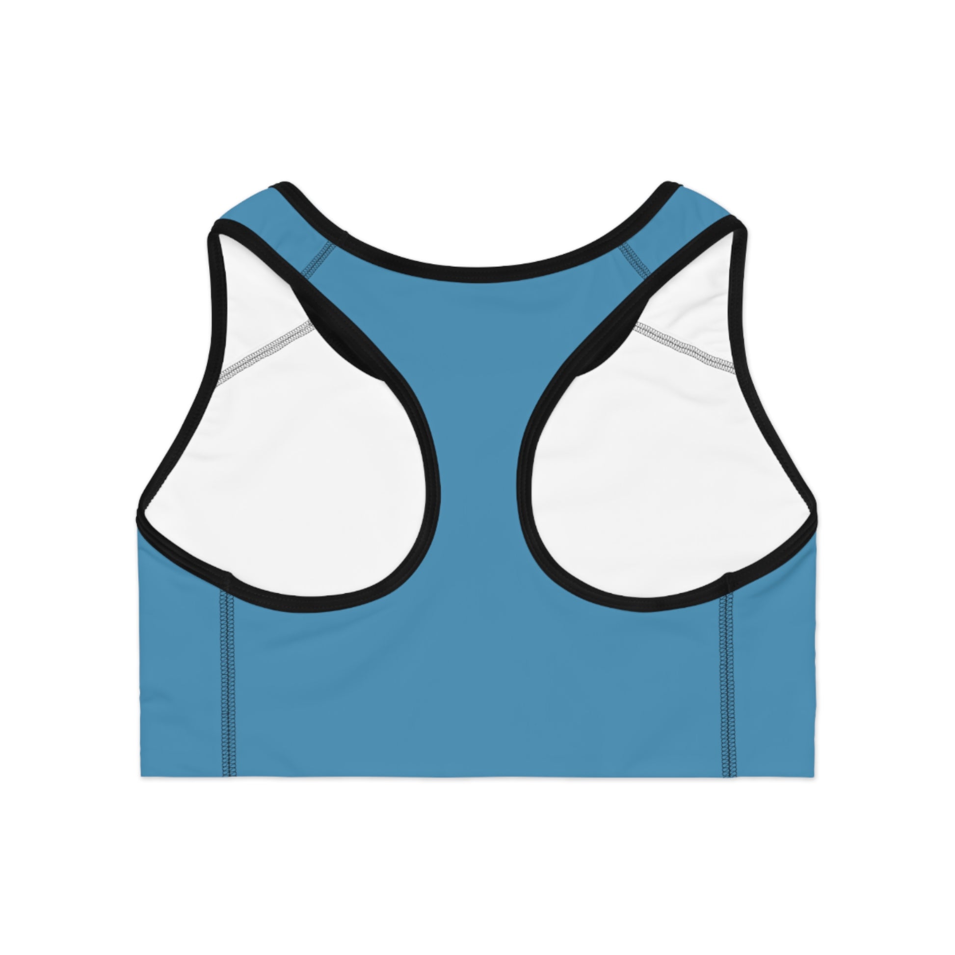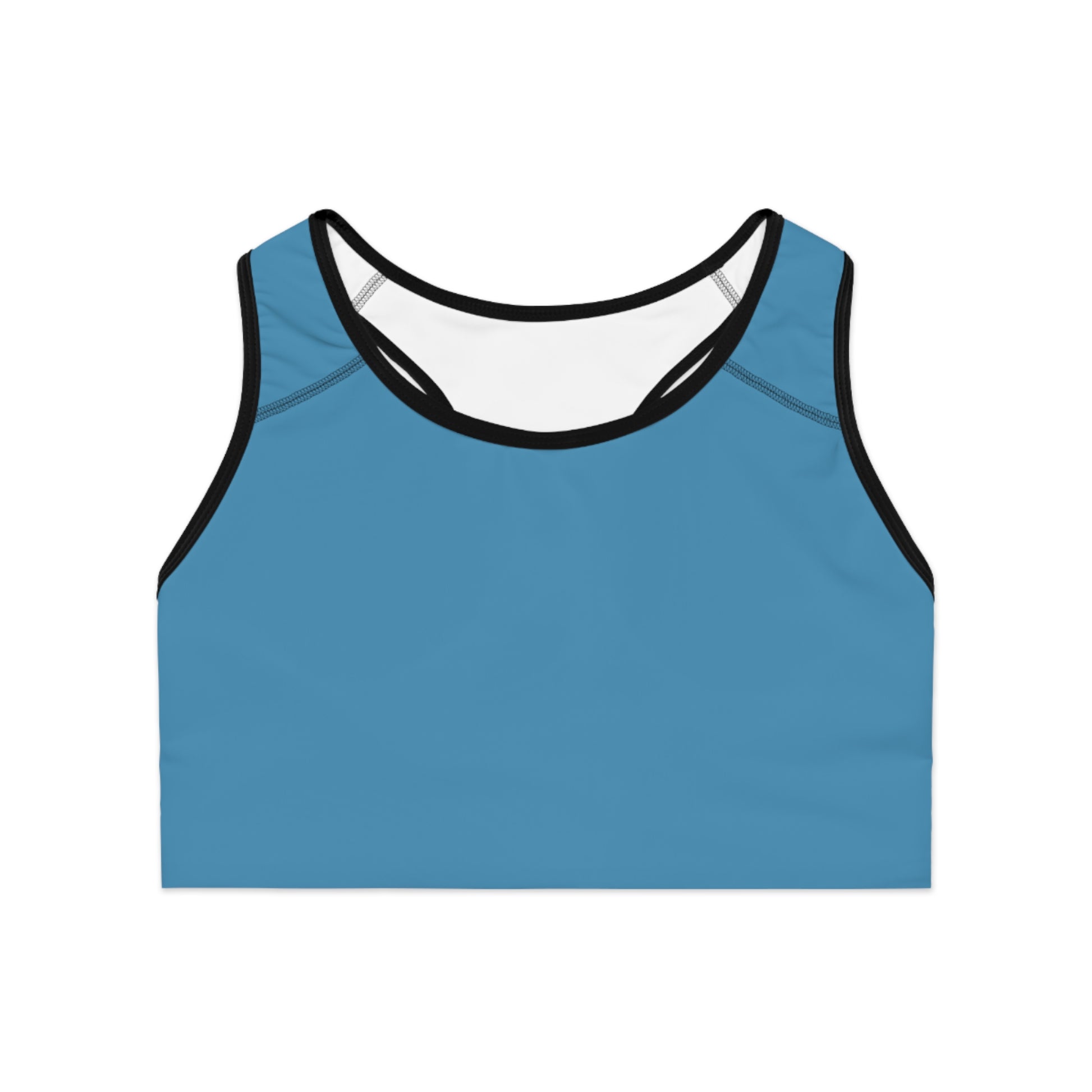 Blue Color Sports Bra, Blue Sports Bra - From PPU.BEST. Free shipping! Material: 83% polyester, 17% spandex - Moisture wicking material -Transfers moisture away from your skin during any physical activity and keeps cool. Medium fabric (6.5 oz/yd² (210 g/m²)). Compression fit. Designed to be light and comfortable. With a double-layer front, support in the shoulder straps, and a wide elastic band to ensure constant support.