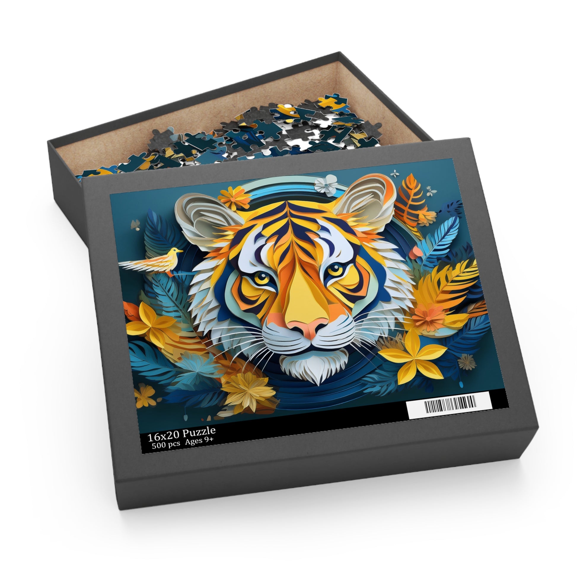 Bright Tiger Face Puzzle 500-Piece | Floral Tiger Puzzle 500-Piece, Ages 9+