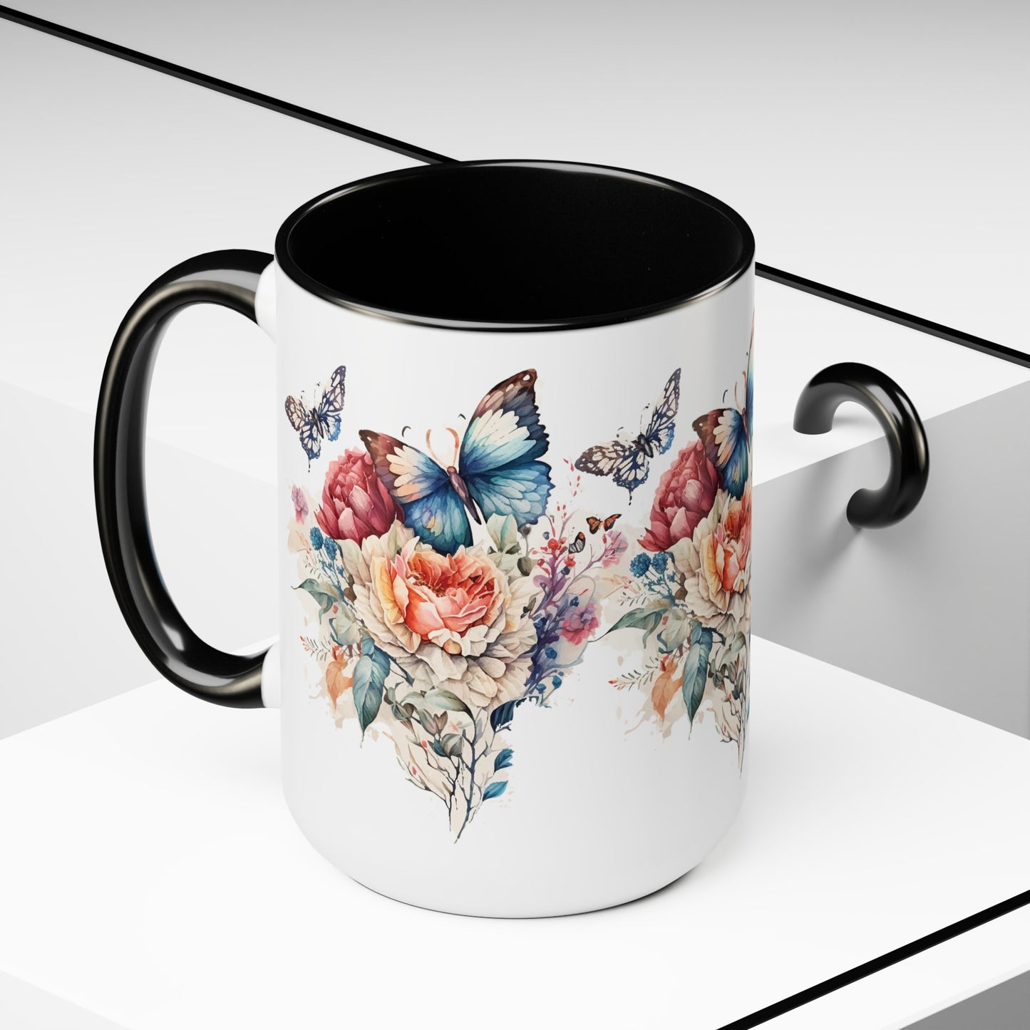 Butterfly Mug, Butterfly Cup - Size Information: Two-Tone Coffee Mugs, One size: 15oz (0.44 l)