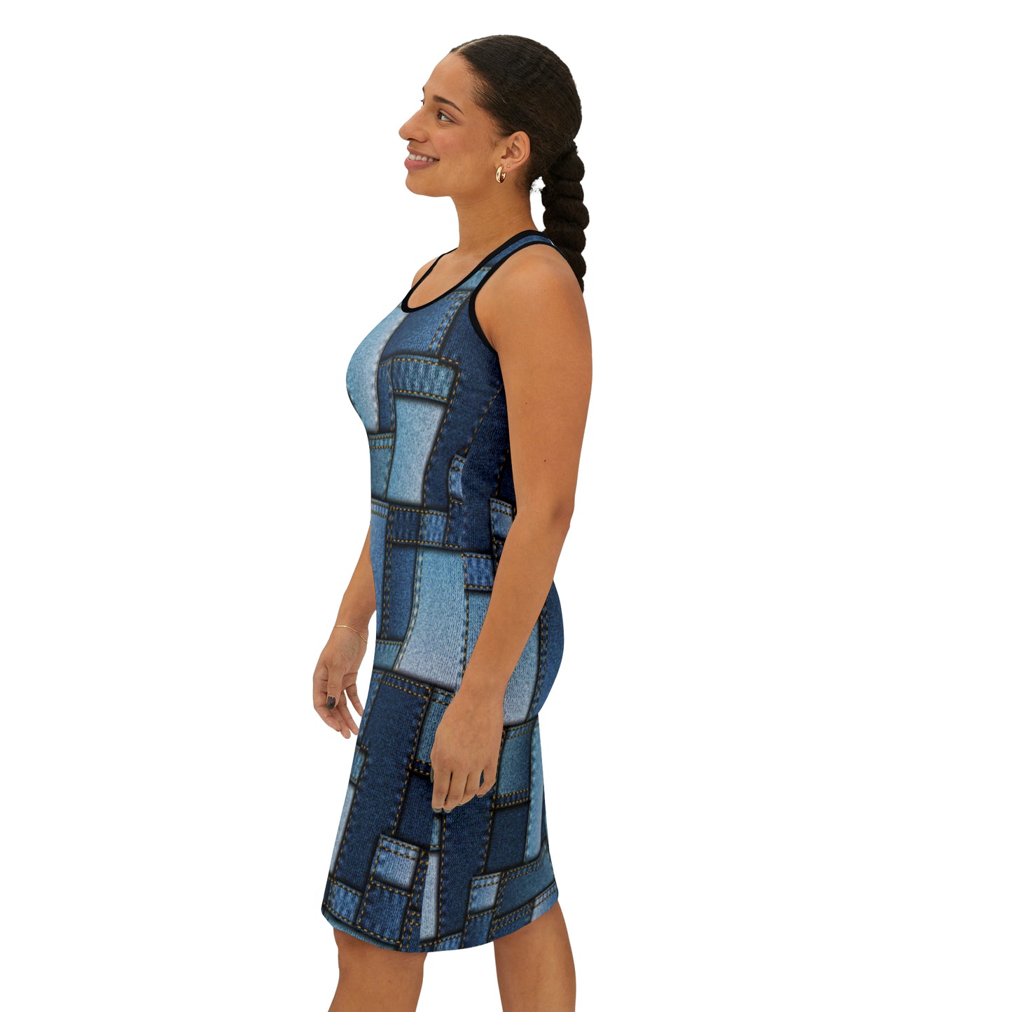 Why You’ll Love Denim Print Dress - Cinched back with a high-cut, scoop-shaped neckline for a sleek and stylish look. Crafted from luxuriously soft fabric, it offers exceptional comfort while maintaining its shape and drying quickly. Built for durability, this design is perfect for any occasion.