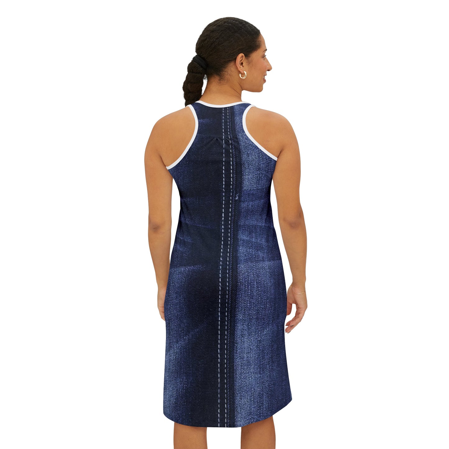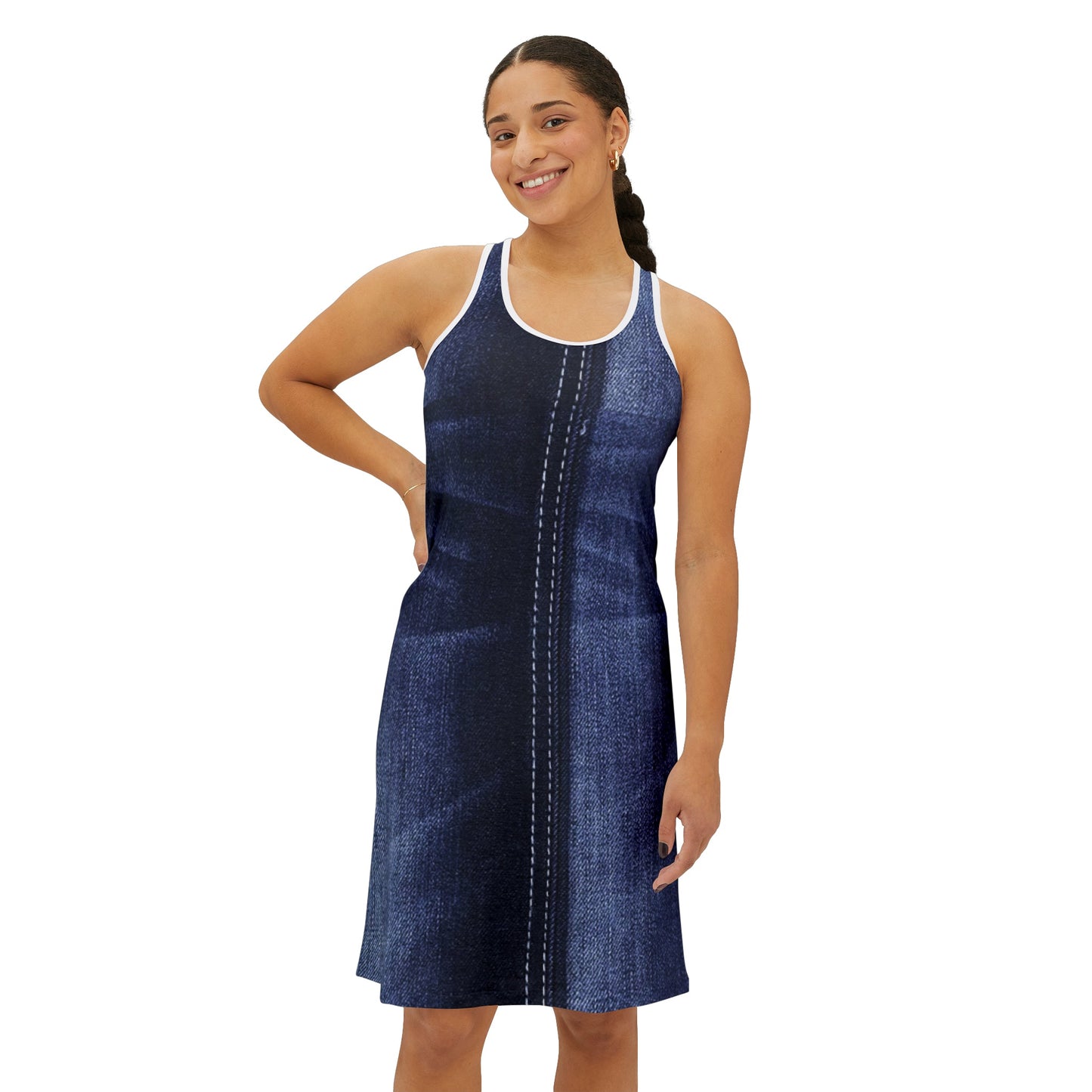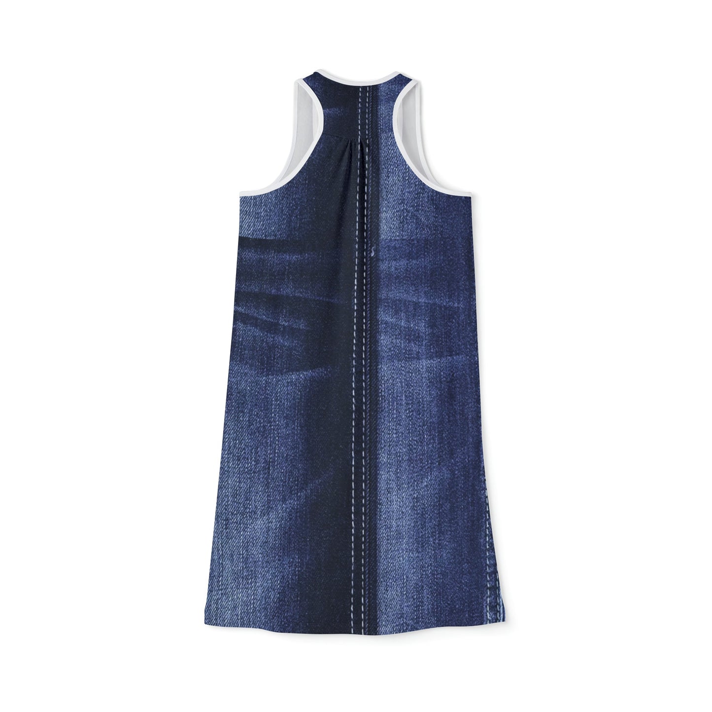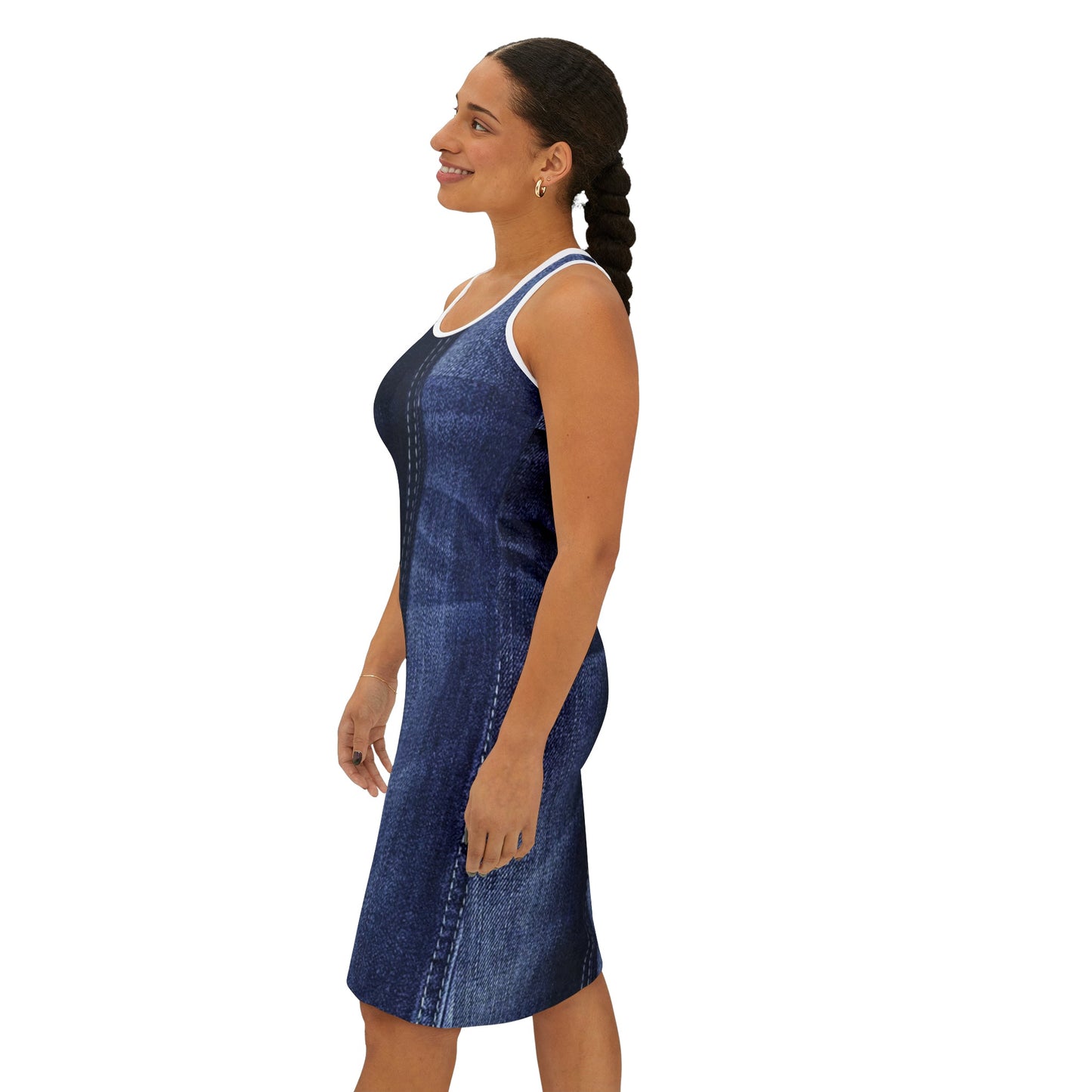 Why You’ll Love Denim Print Dress - Cinched back with a high-cut, scoop-shaped neckline for a sleek and stylish look. Crafted from luxuriously soft fabric, it offers exceptional comfort while maintaining its shape and drying quickly. Built for durability, this design is perfect for any occasion.