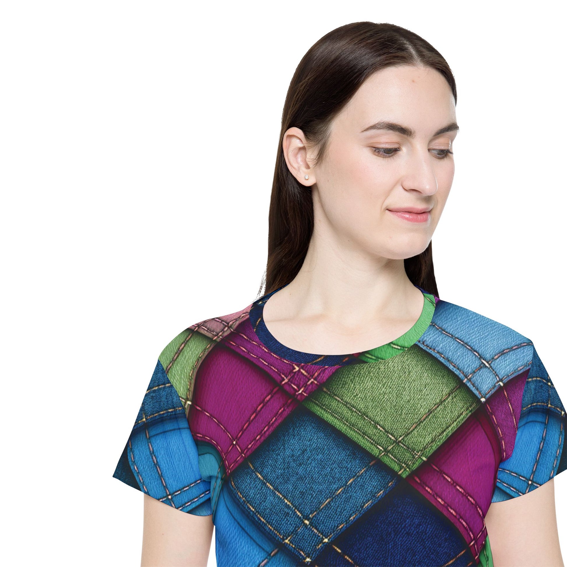 Denim T Shirt, Denim Tee - Made from 100% moisture-wicking performance polyester, this extra-light fabric (4.13 oz/yd²) ensures breathability and comfort. Add effortless edge to your everyday style with our Denim T-Shirt all-over print tee that looks like denim but feels like a dream. Whether you're dressing it up or keeping it casual, this eye-catching shirt is a true statement piece.
