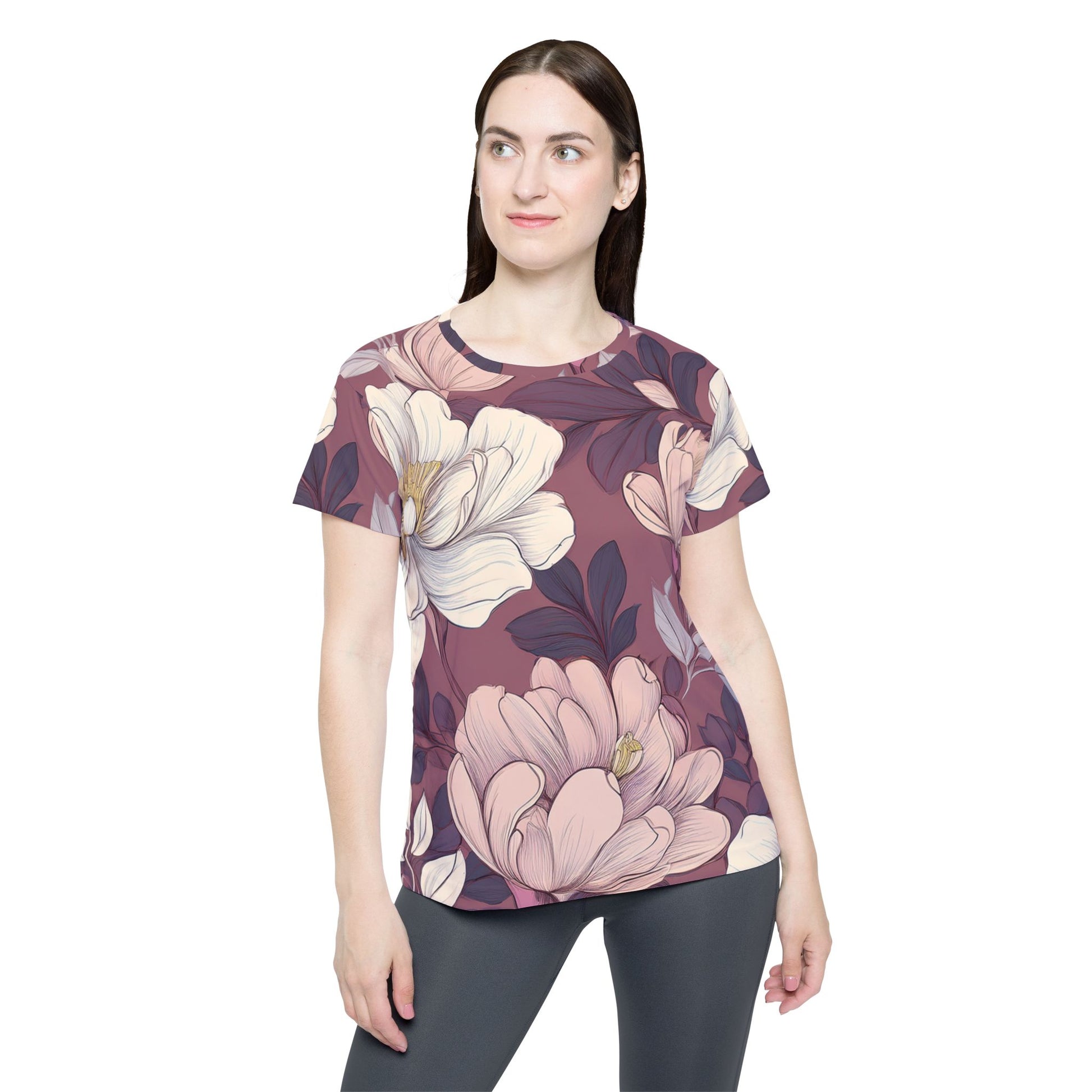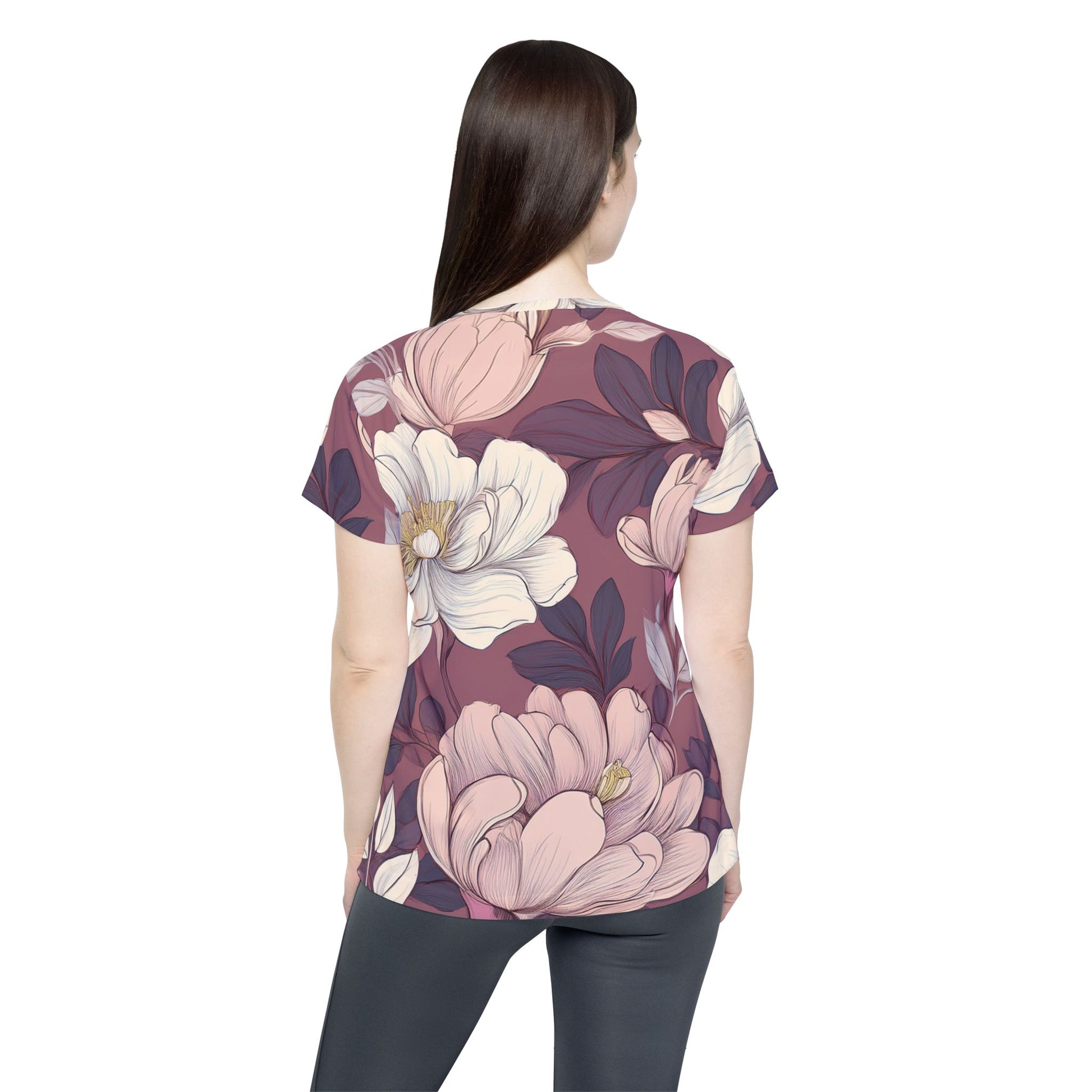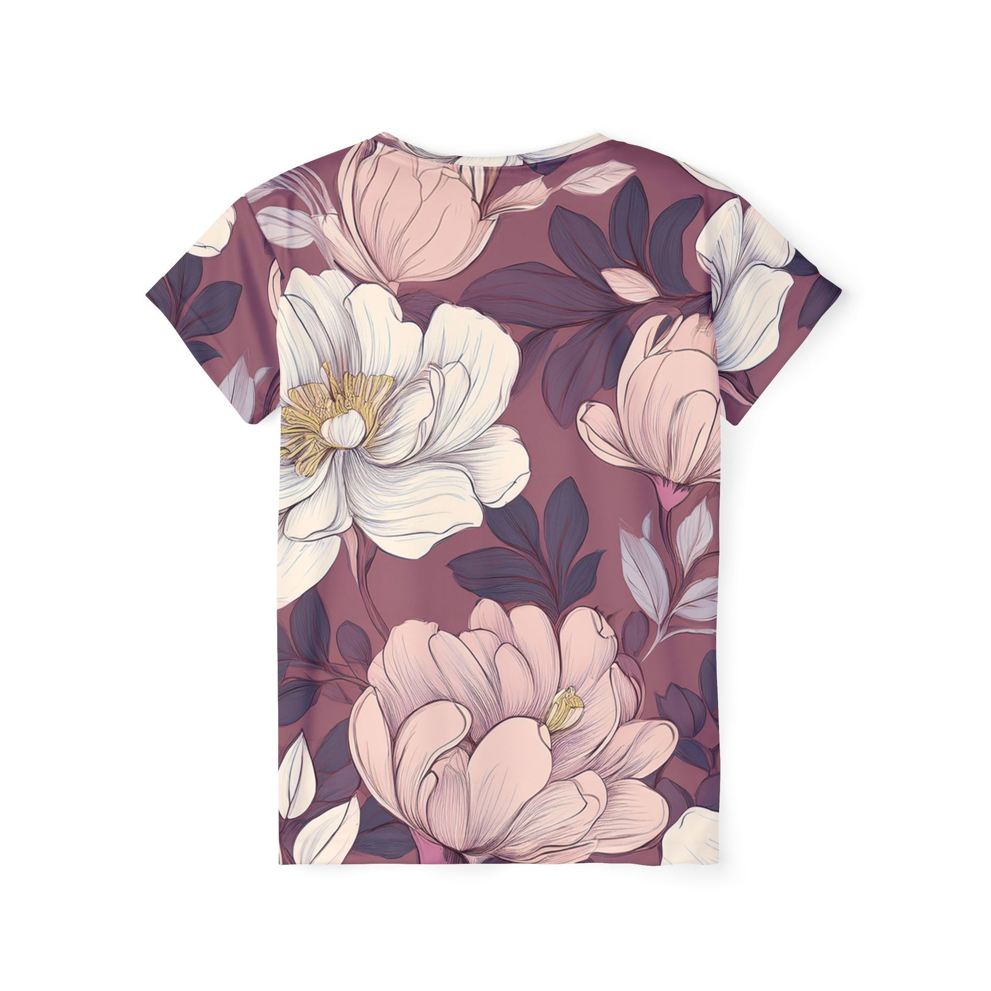 Floral Print Shirt – Made from 100% moisture-wicking performance polyester, this extra-light fabric (4.13 oz/yd²) ensures breathability and comfort. Designed for active lifestyles, its stretchy, durable material provides both style and performance. Featuring a unique all-over print, this nature-inspired jersey offers a bold, timeless look. This Poly Tee combines fashion and function, making it the perfect choice for any adventure or workout.