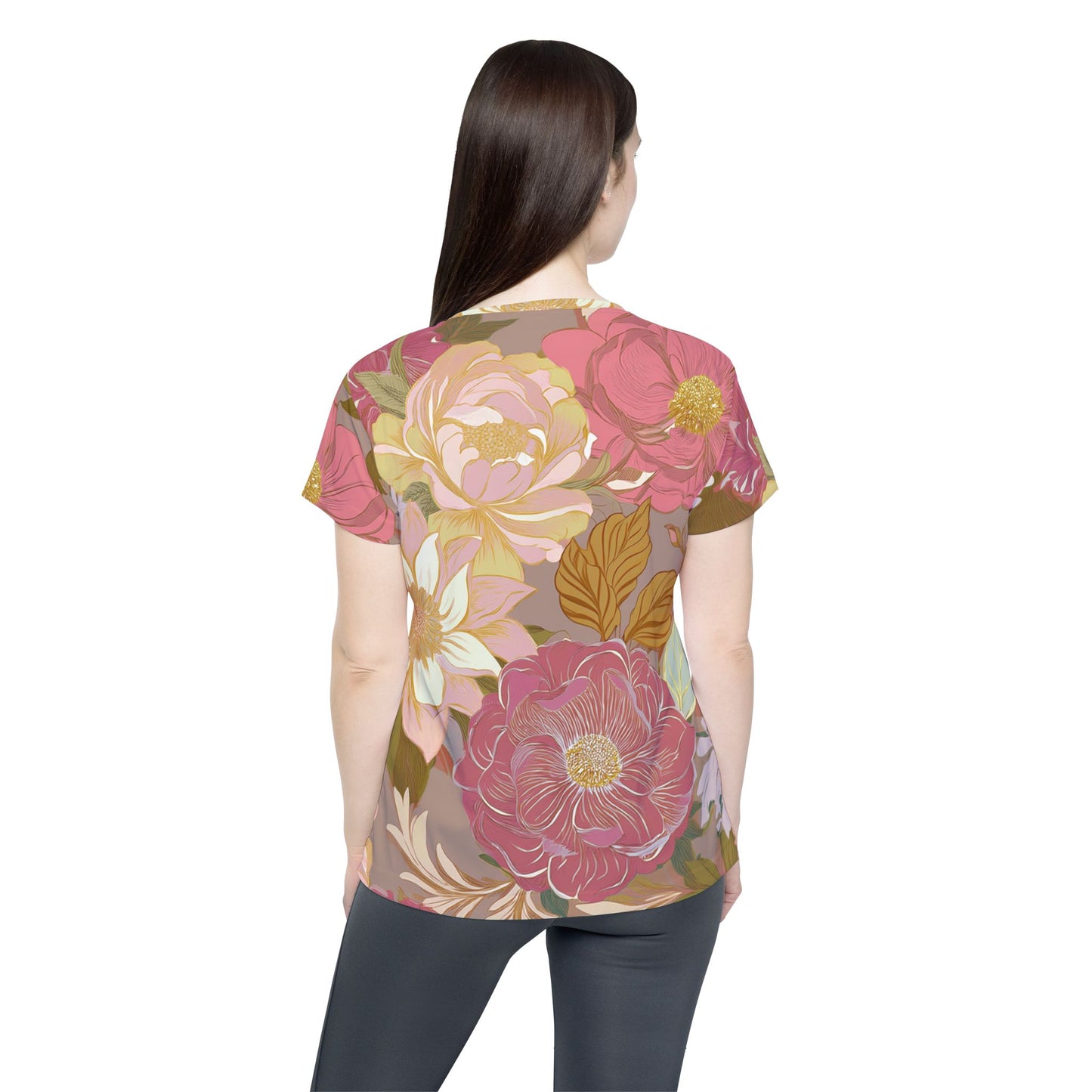 Floral Print Shirt – Made from 100% moisture-wicking performance polyester, this extra-light fabric (4.13 oz/yd²) ensures breathability and comfort. Designed for active lifestyles, its stretchy, durable material provides both style and performance. Featuring a unique all-over print, this nature-inspired jersey offers a bold, timeless look. This Poly Tee combines fashion and function, making it the perfect choice for any adventure or workout.