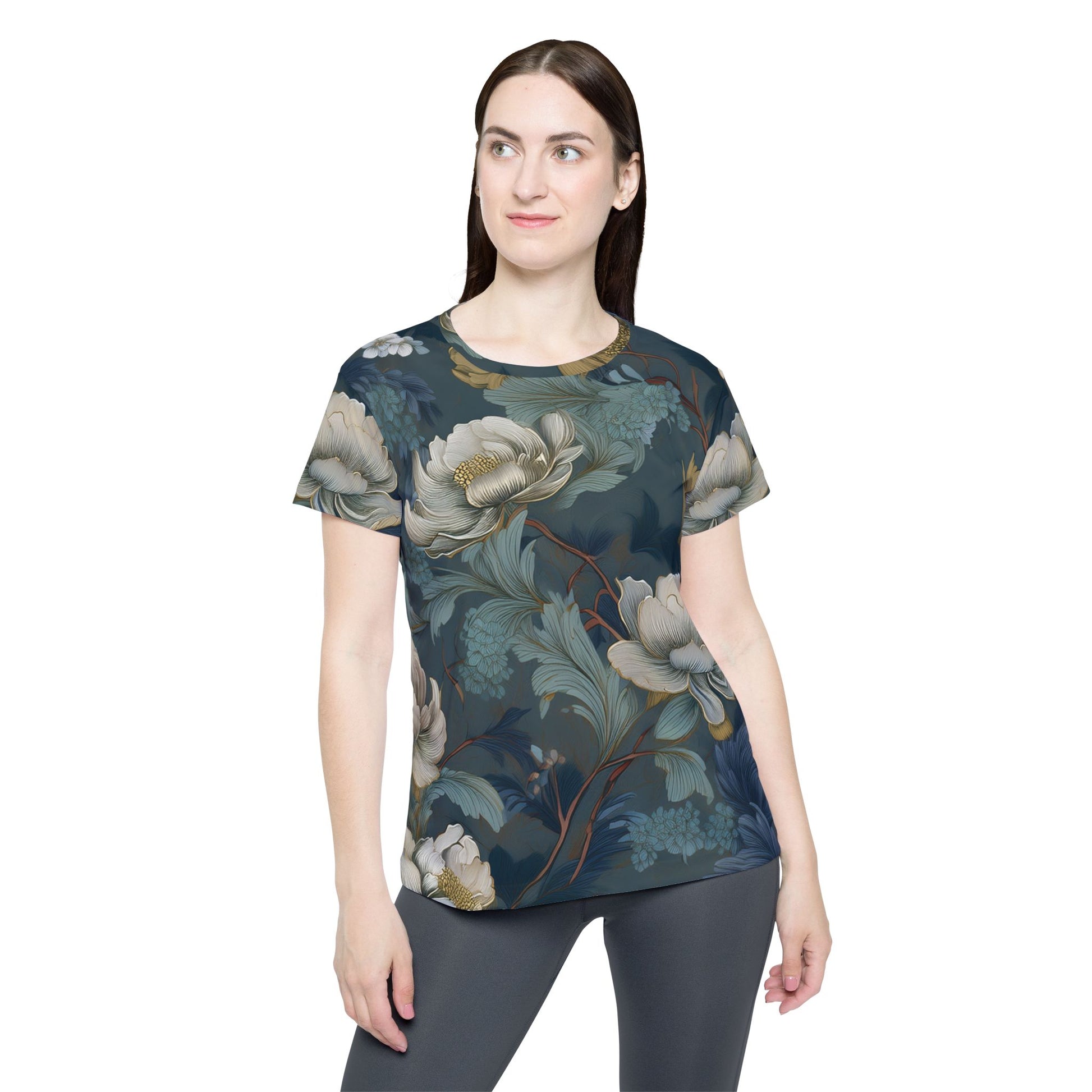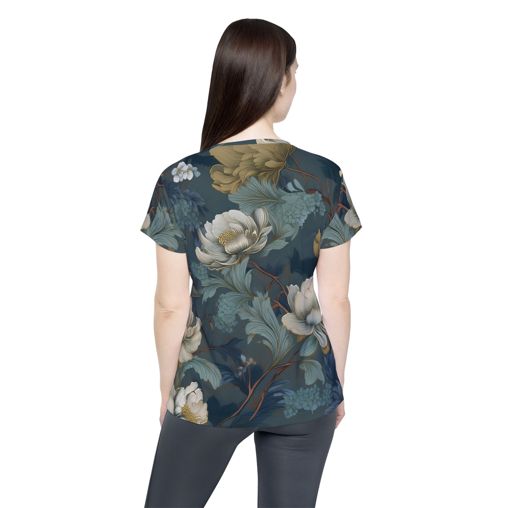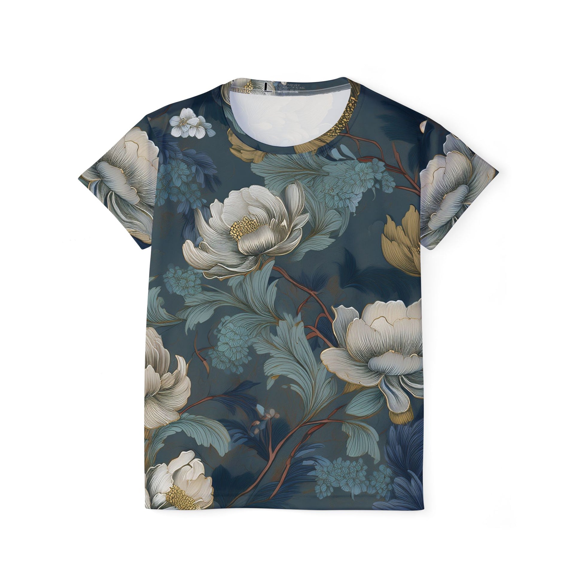Floral Print Shirt – Made from 100% moisture-wicking performance polyester, this extra-light fabric (4.13 oz/yd²) ensures breathability and comfort. Designed for active lifestyles, its stretchy, durable material provides both style and performance. Featuring a unique all-over print, this nature-inspired jersey offers a bold, timeless look. This Poly Tee combines fashion and function, making it the perfect choice for any adventure or workout.