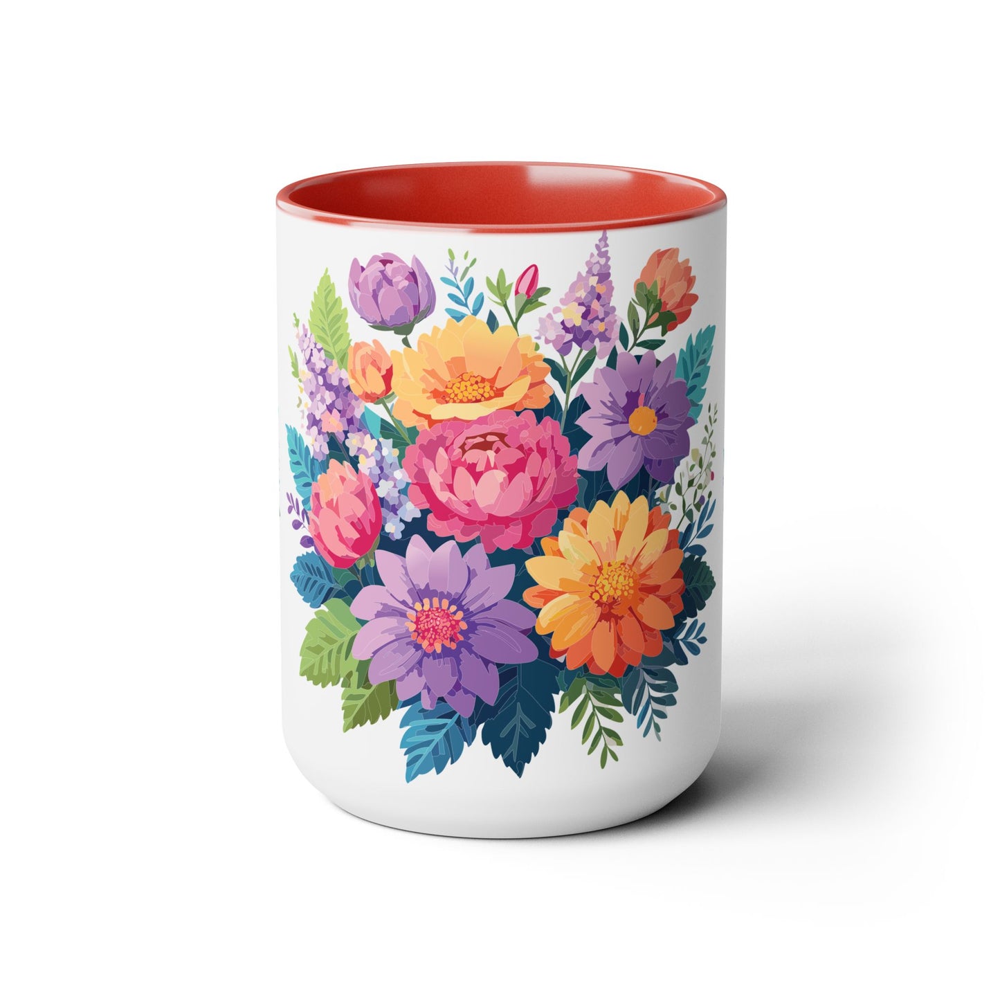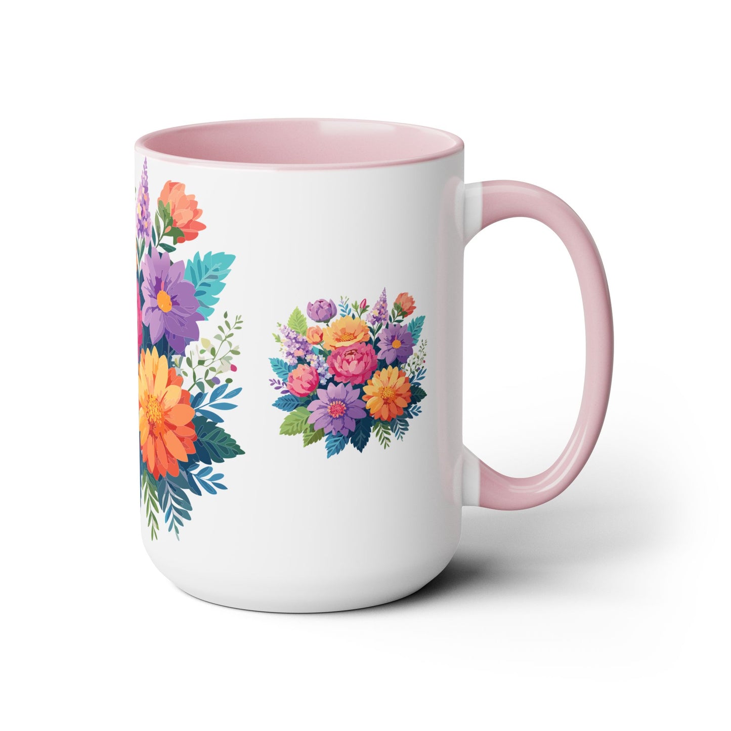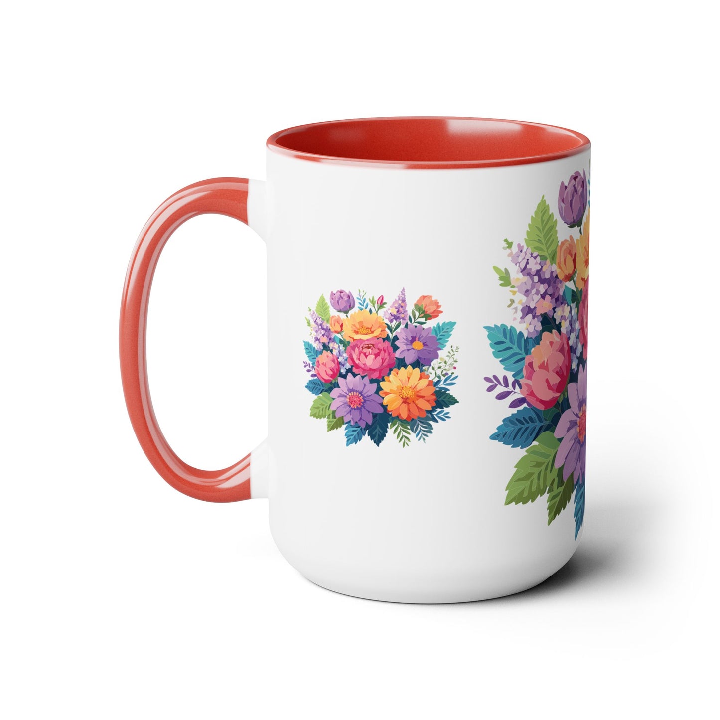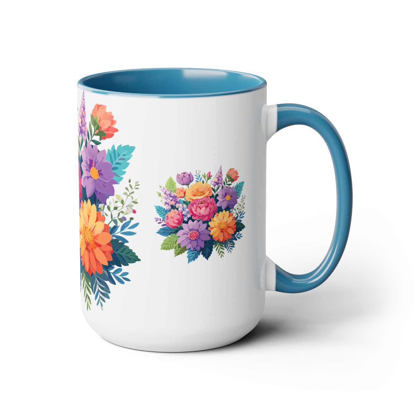 Floral Mug, Floral Cup – This 15oz two-tone coffee mug is crafted from white ceramic with a sleek glossy finish and striking color contrast. Designed for both style and comfort, it features an ergonomic C-shaped handle for a secure grip. Lead and BPA-free, it ensures safe sipping every time. Combining elegance and practicality, this mug is the perfect companion for elevating your daily coffee or tea experience.