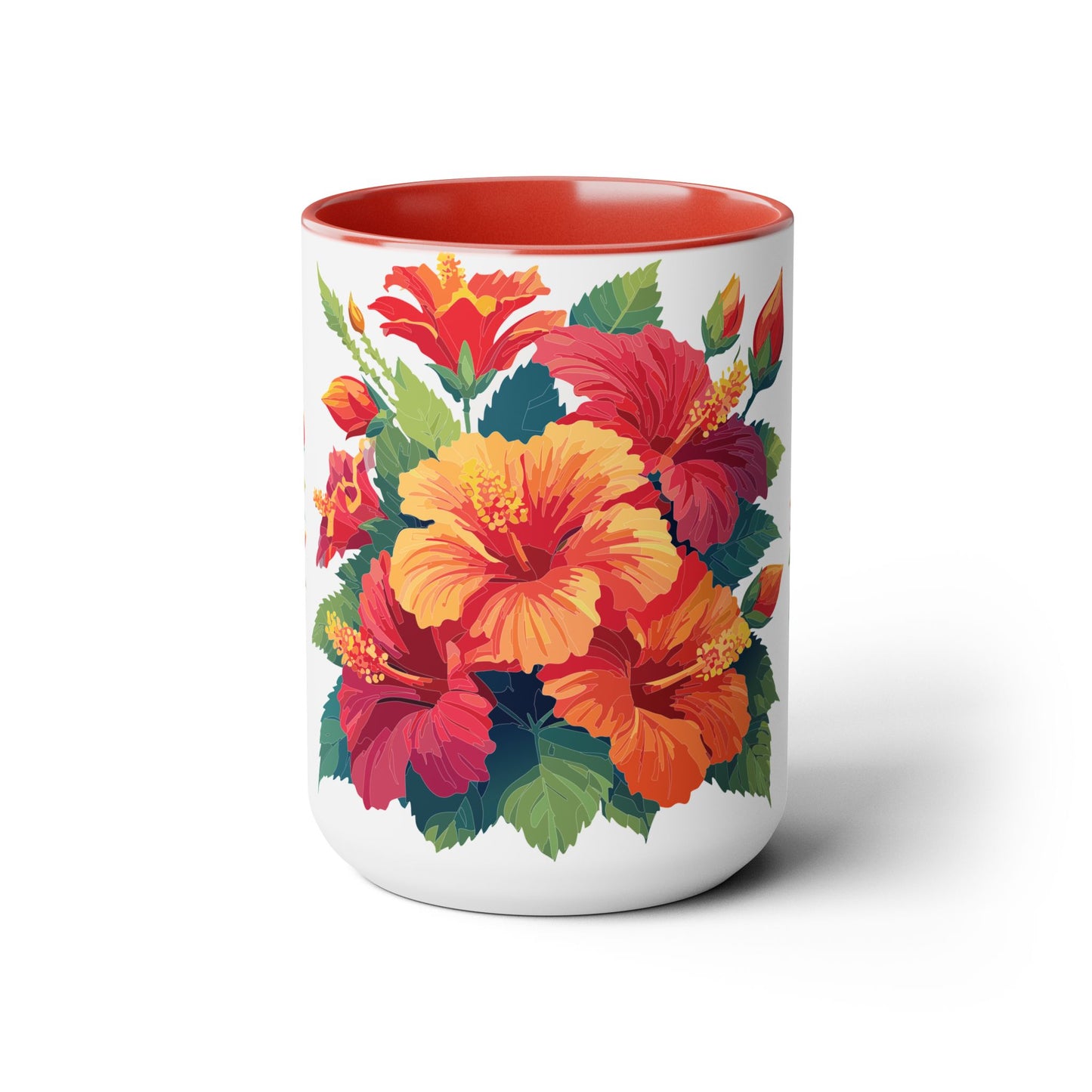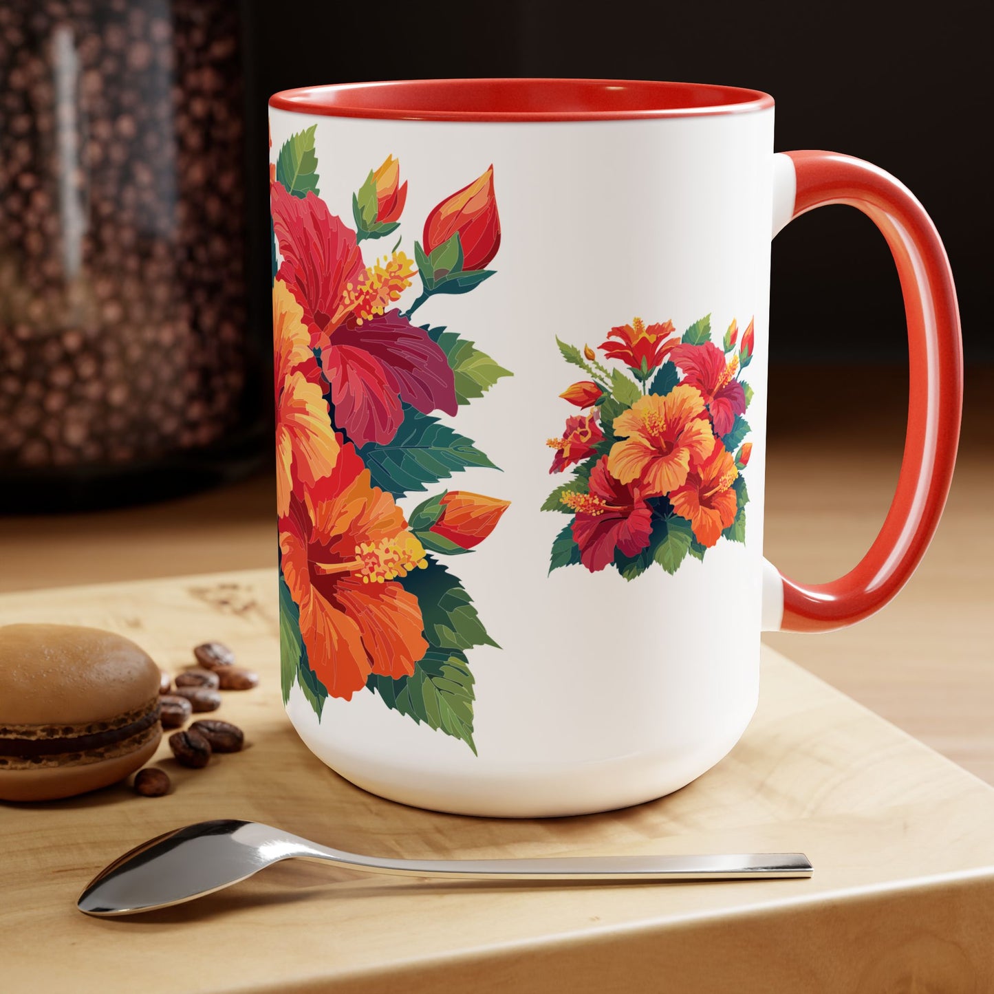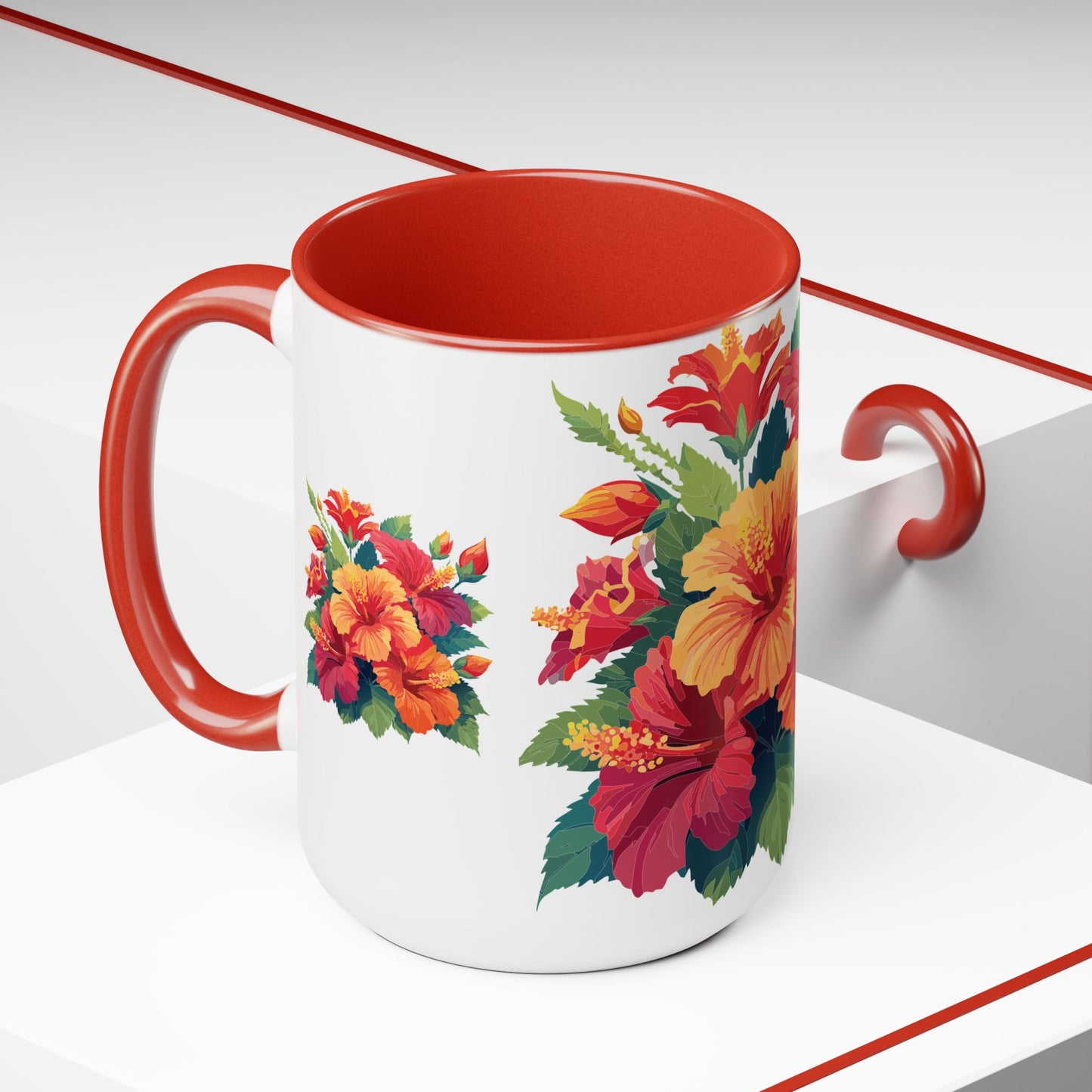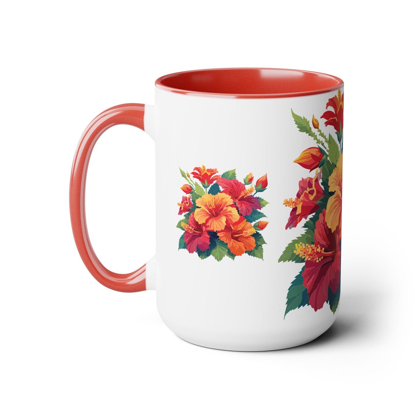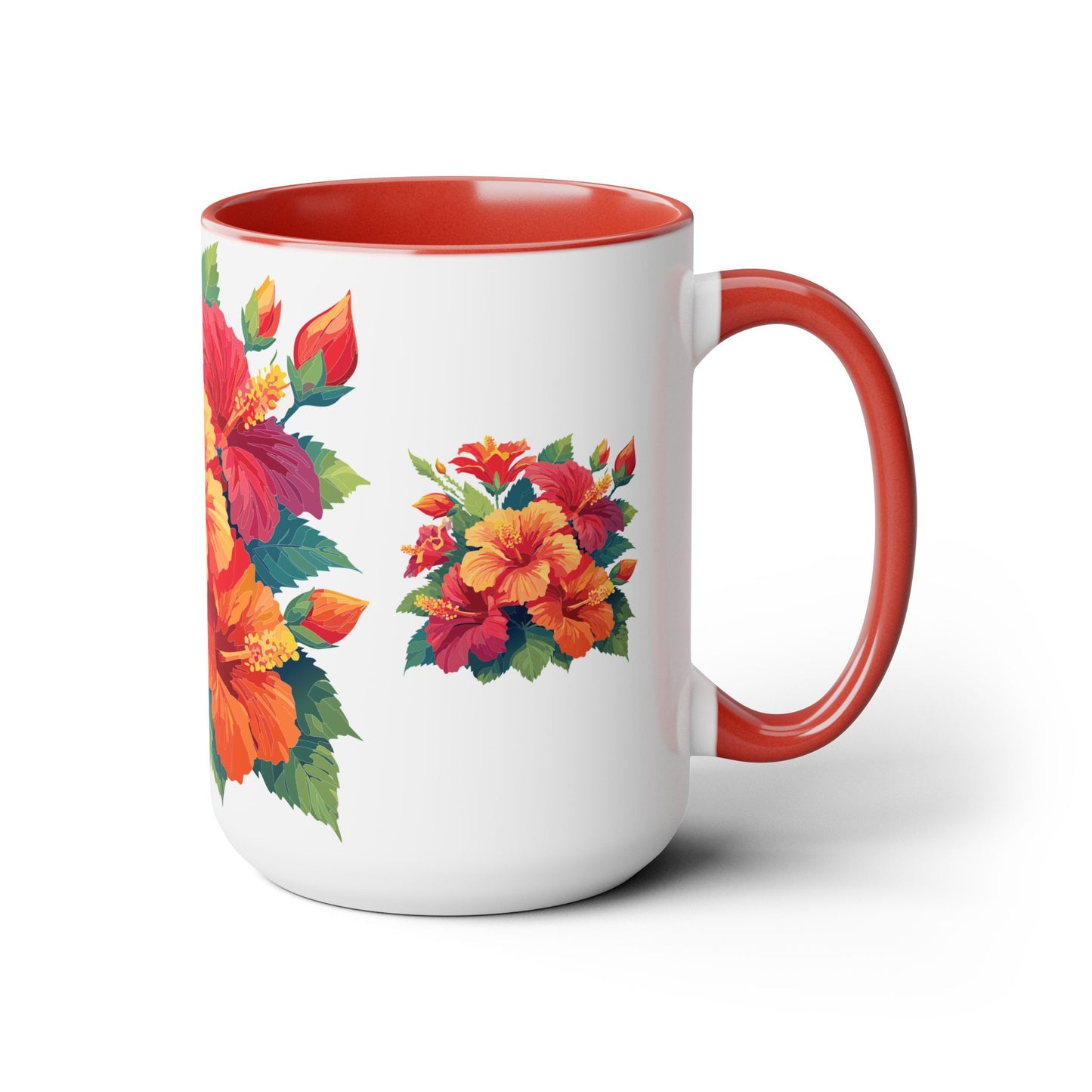Floral Mug, Floral Cup - Size Information: Two-Tone Coffee Mugs, One size: 15oz (0.44 l)