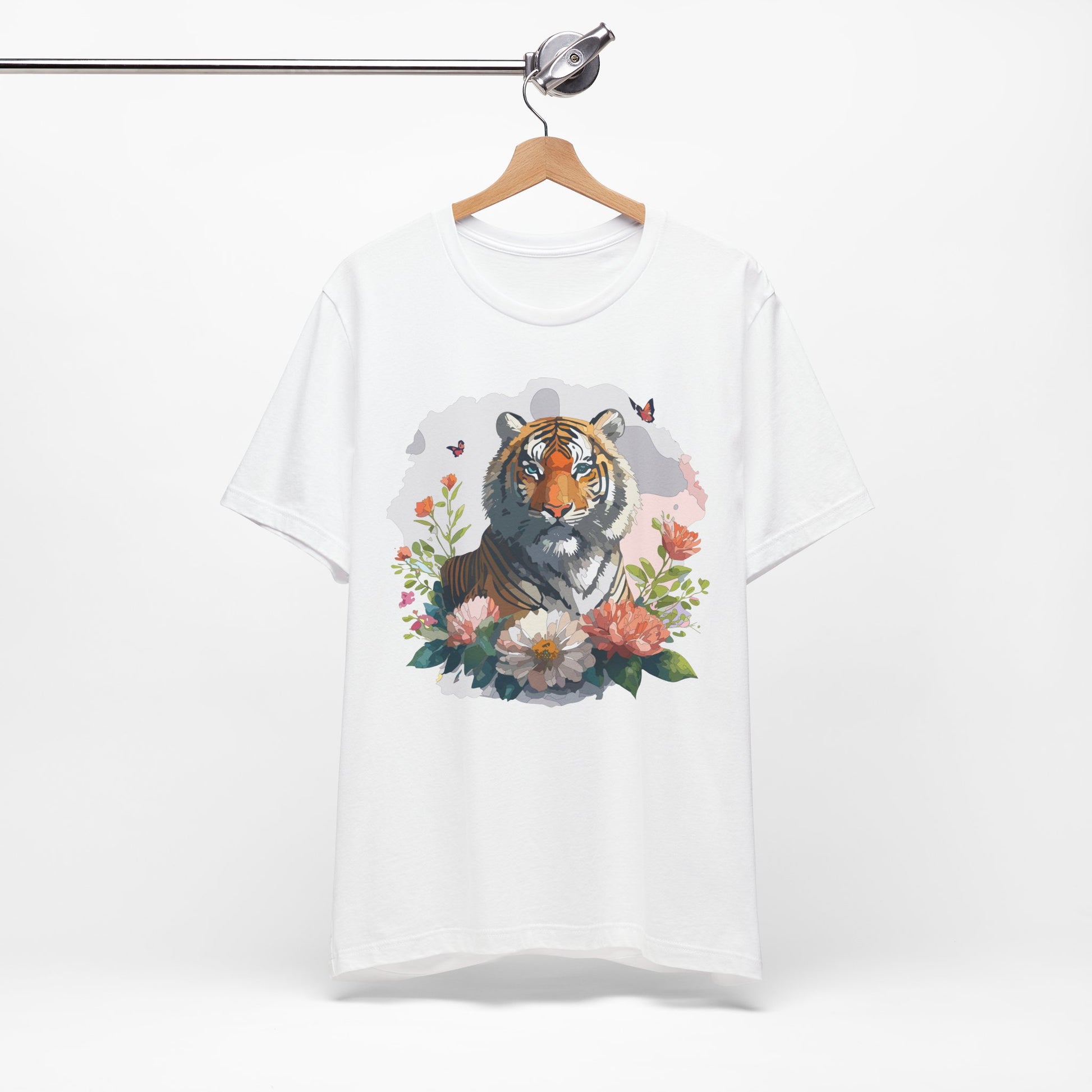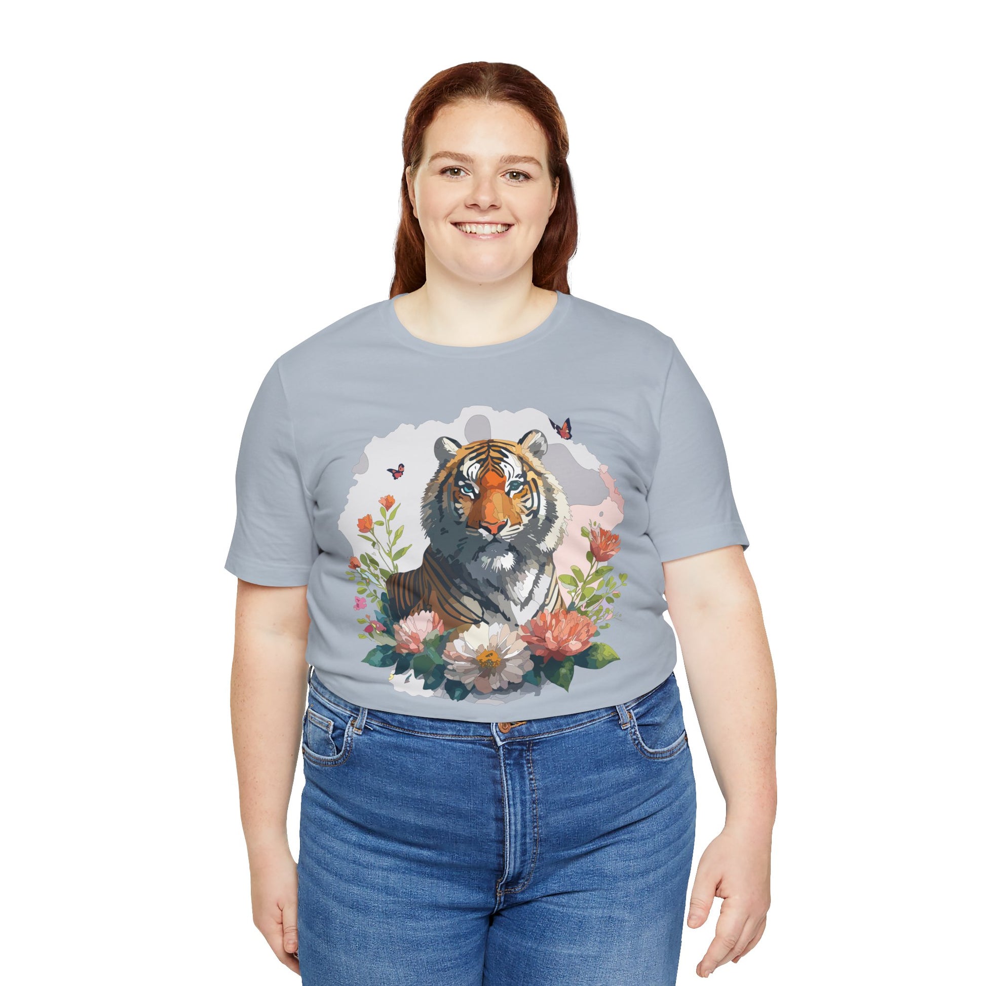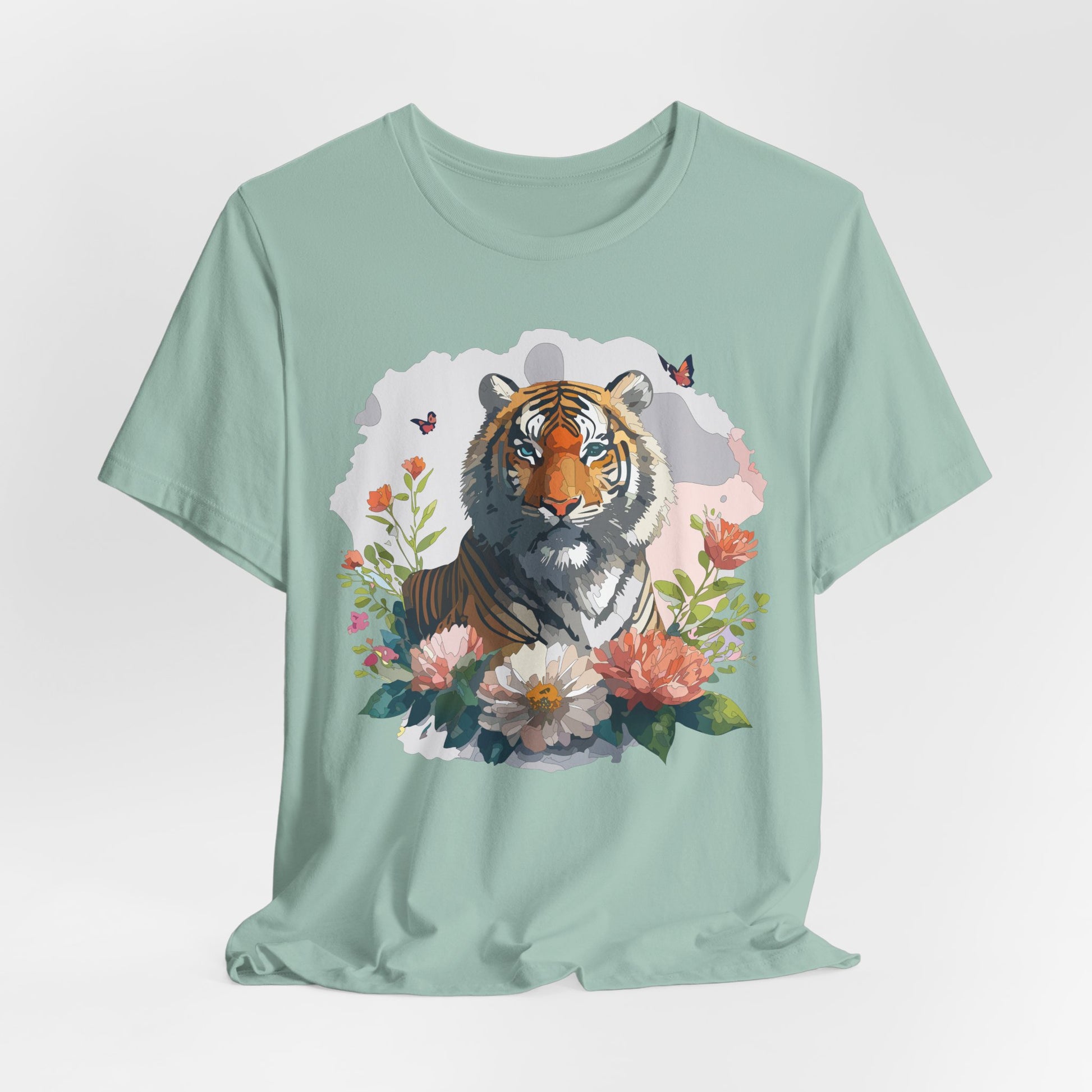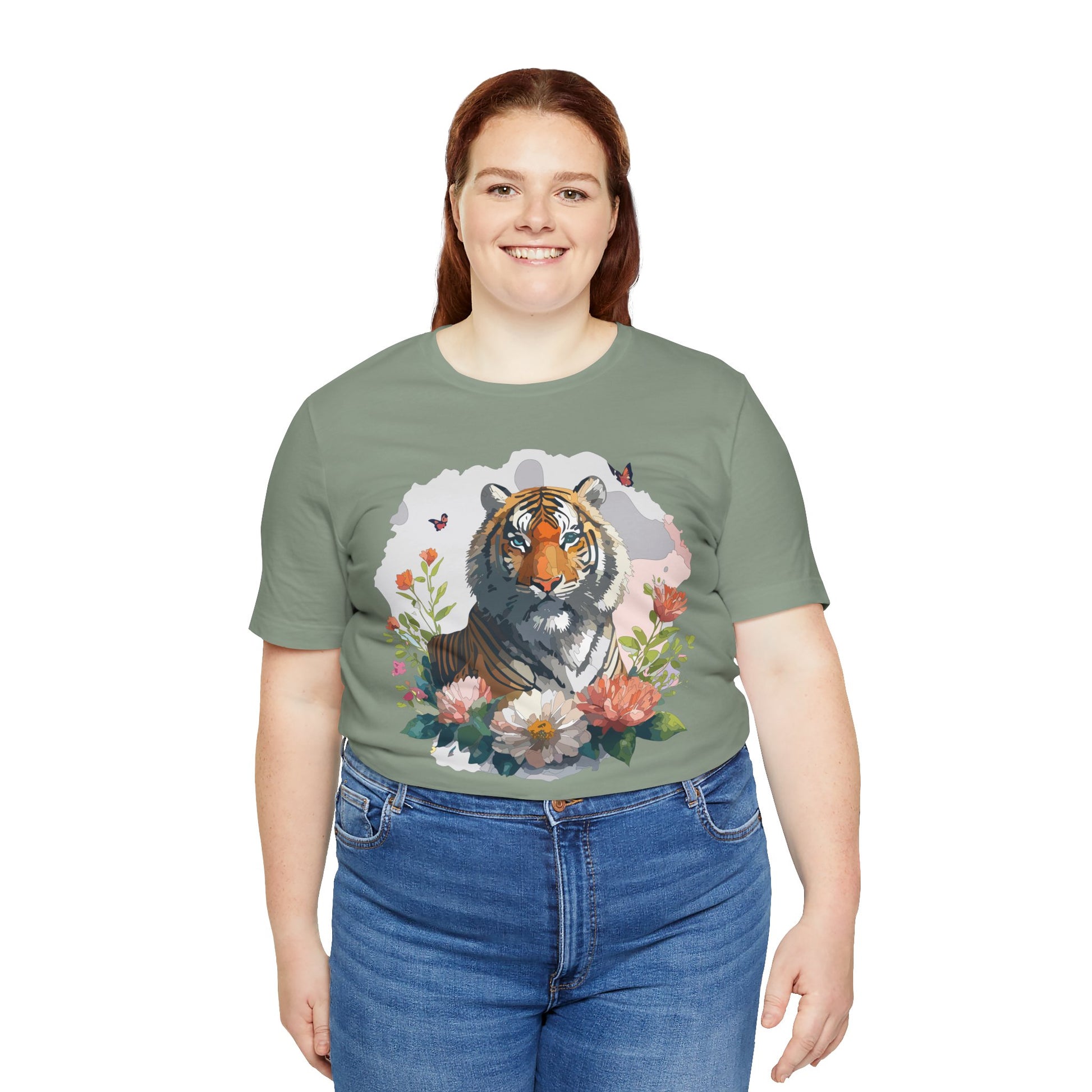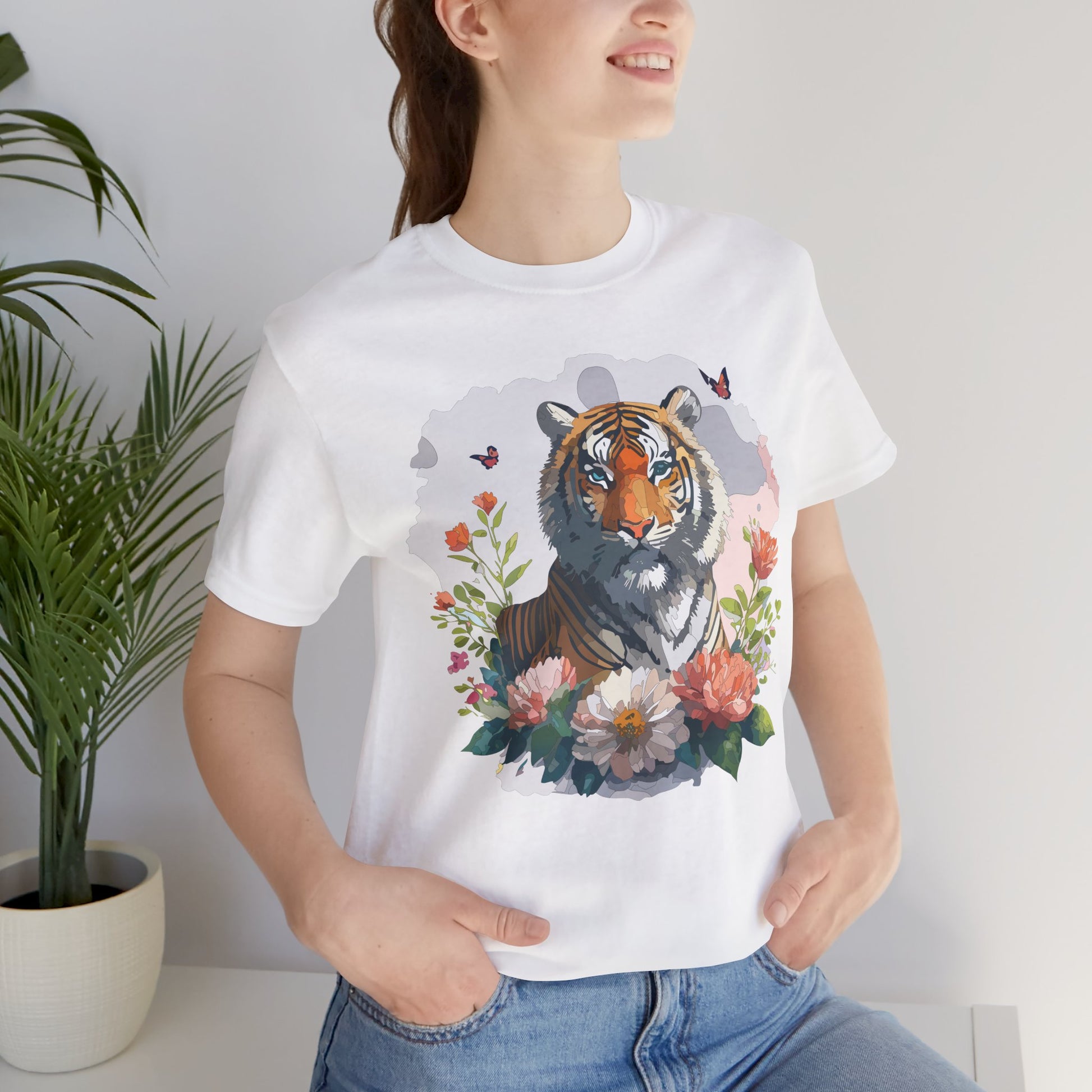 Floral Tiger Graphic Tee, Animal Shirt, Tiger Shirt, Flower Top, T-Shirt with Animal, Art Design