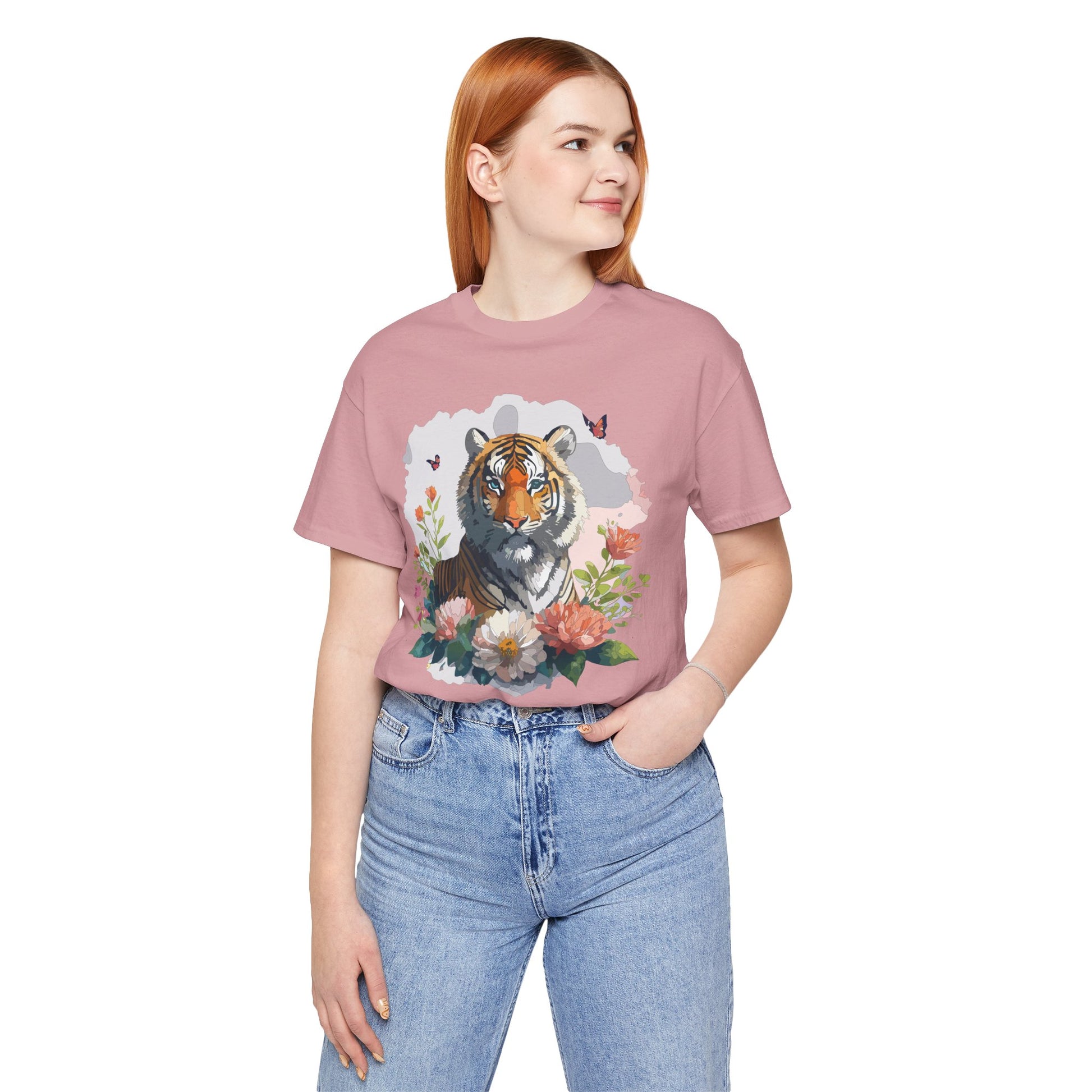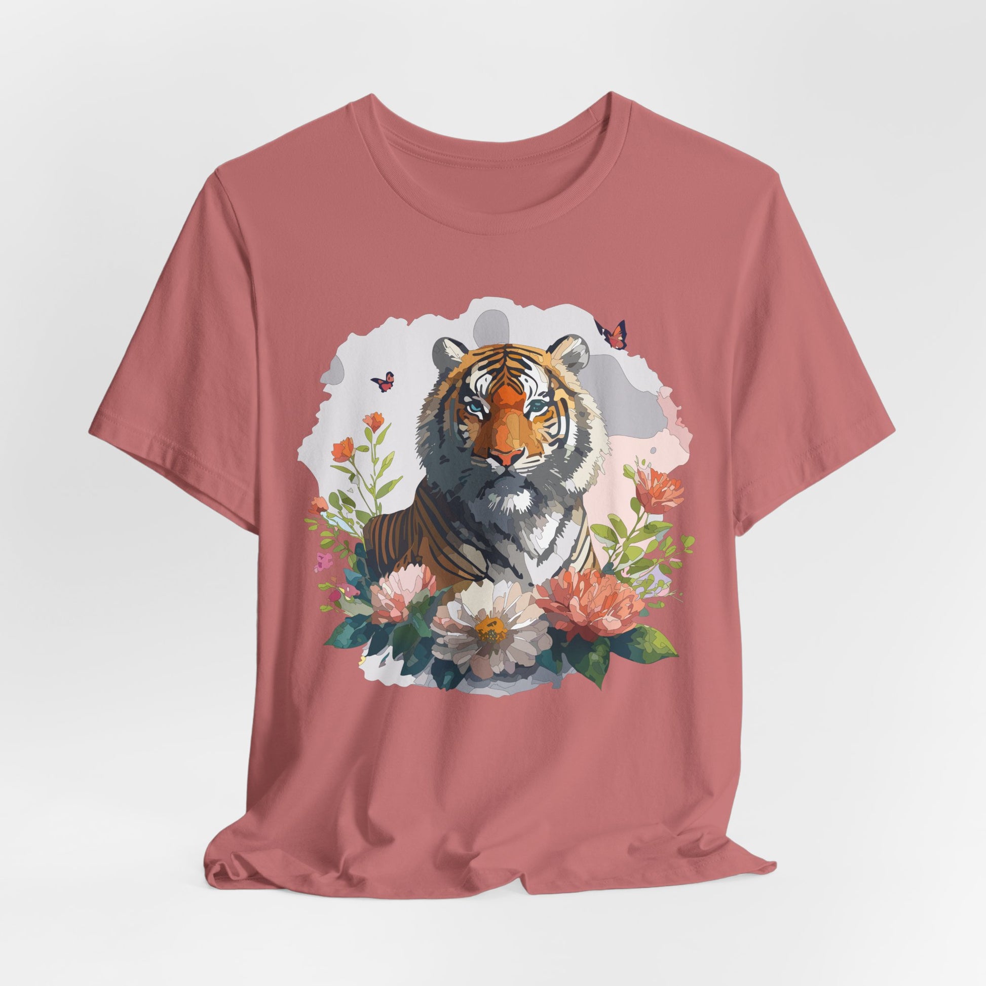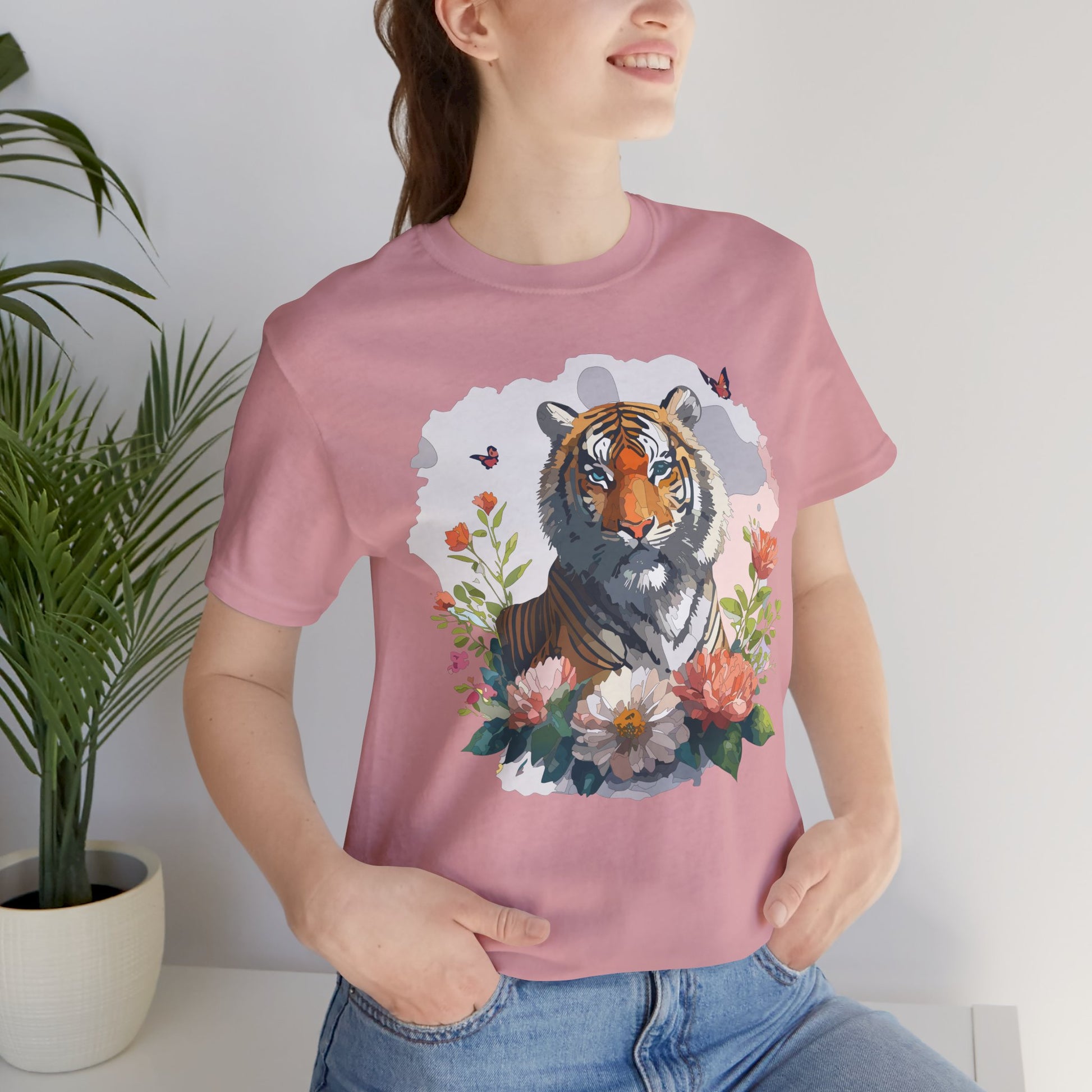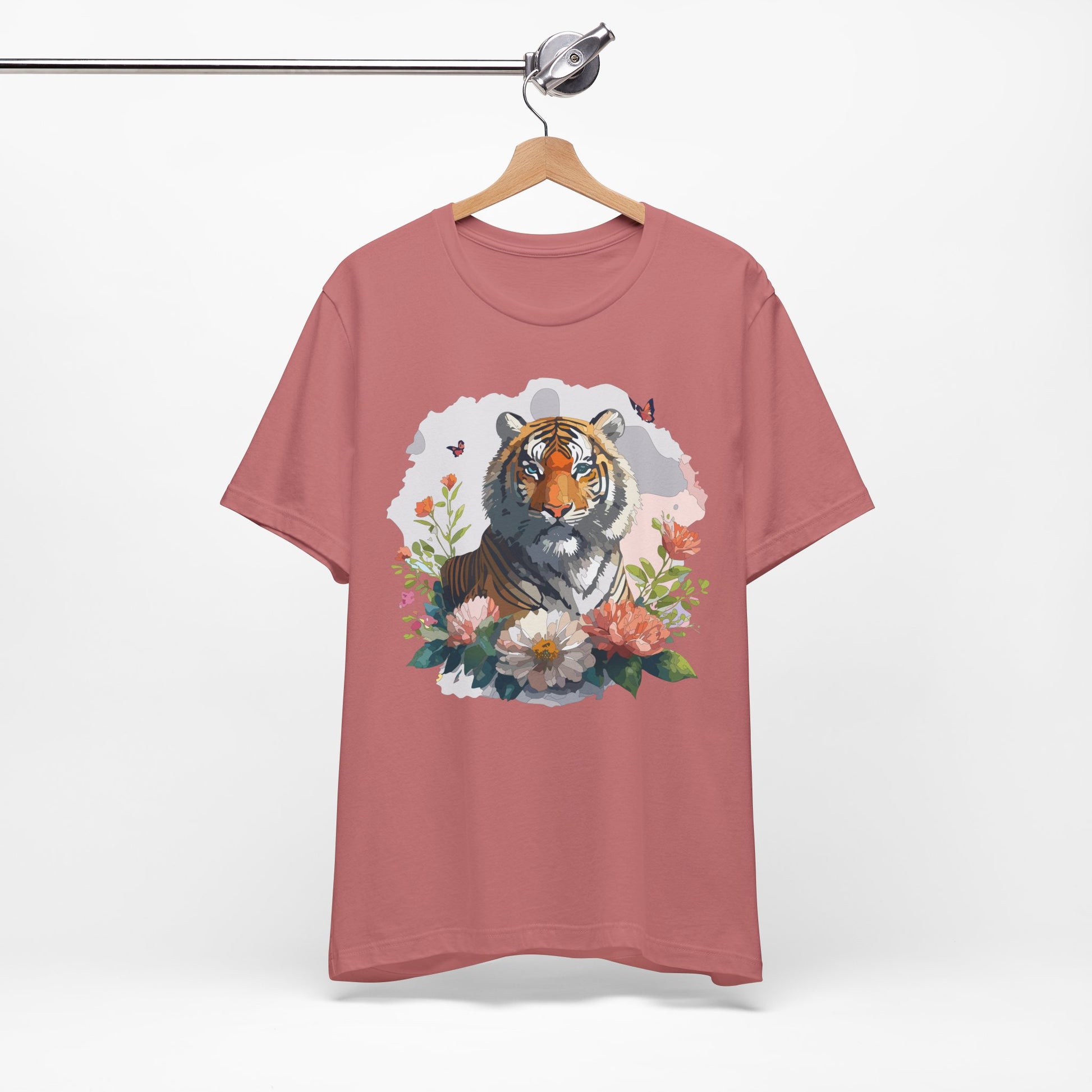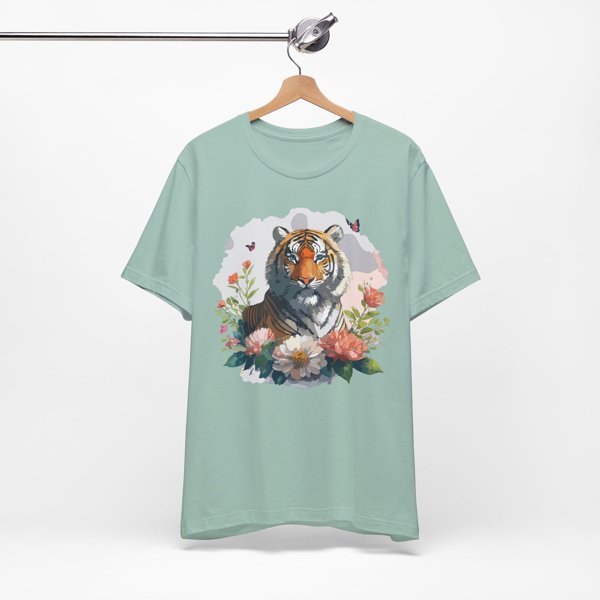 Floral Tiger Graphic Tee, Animal Shirt, Tiger Shirt, Flower Top, T-Shirt with Animal, Art Design