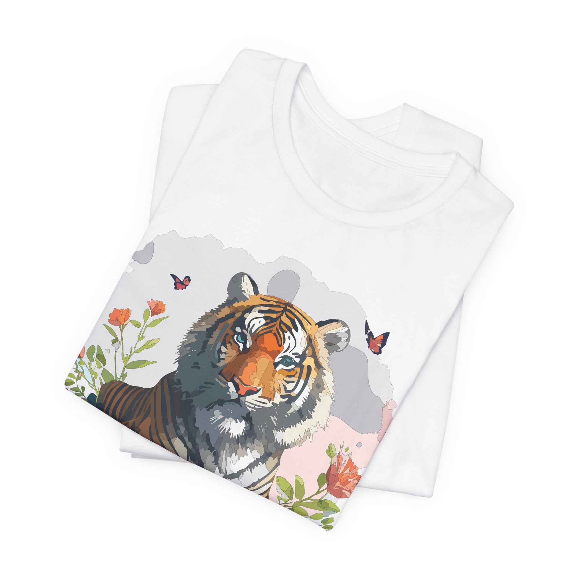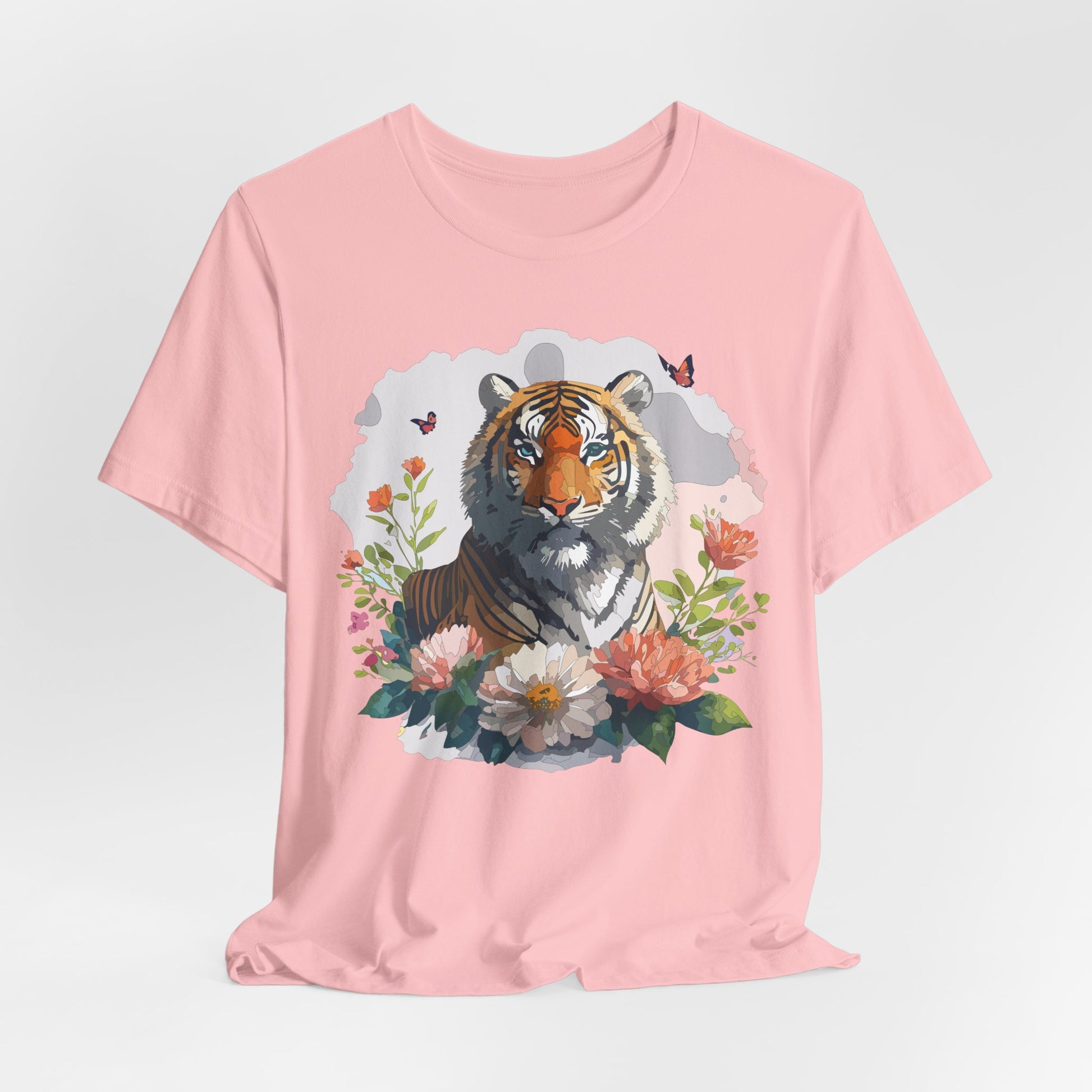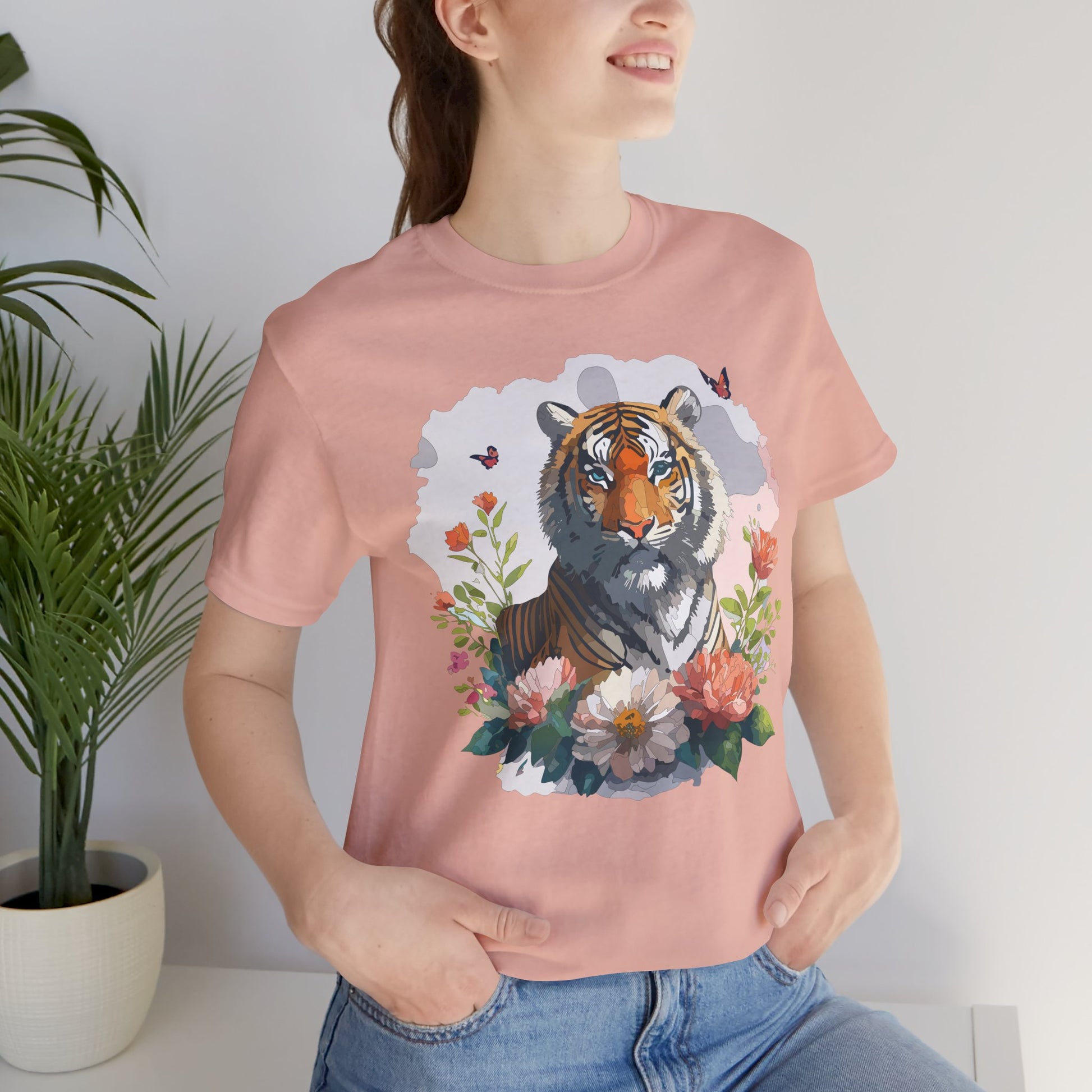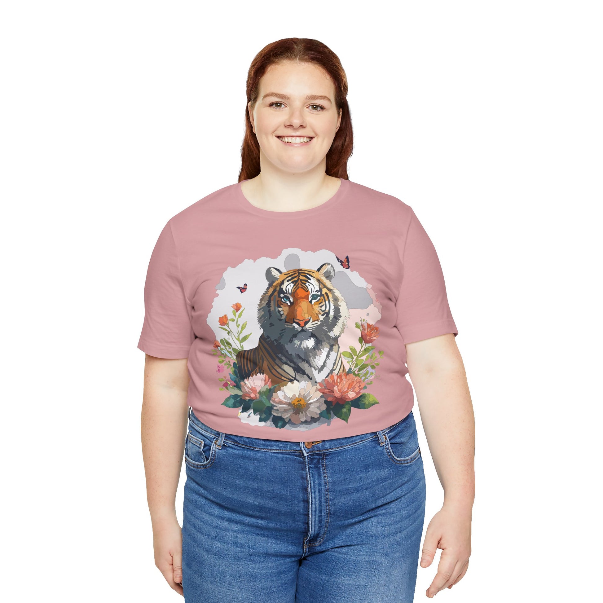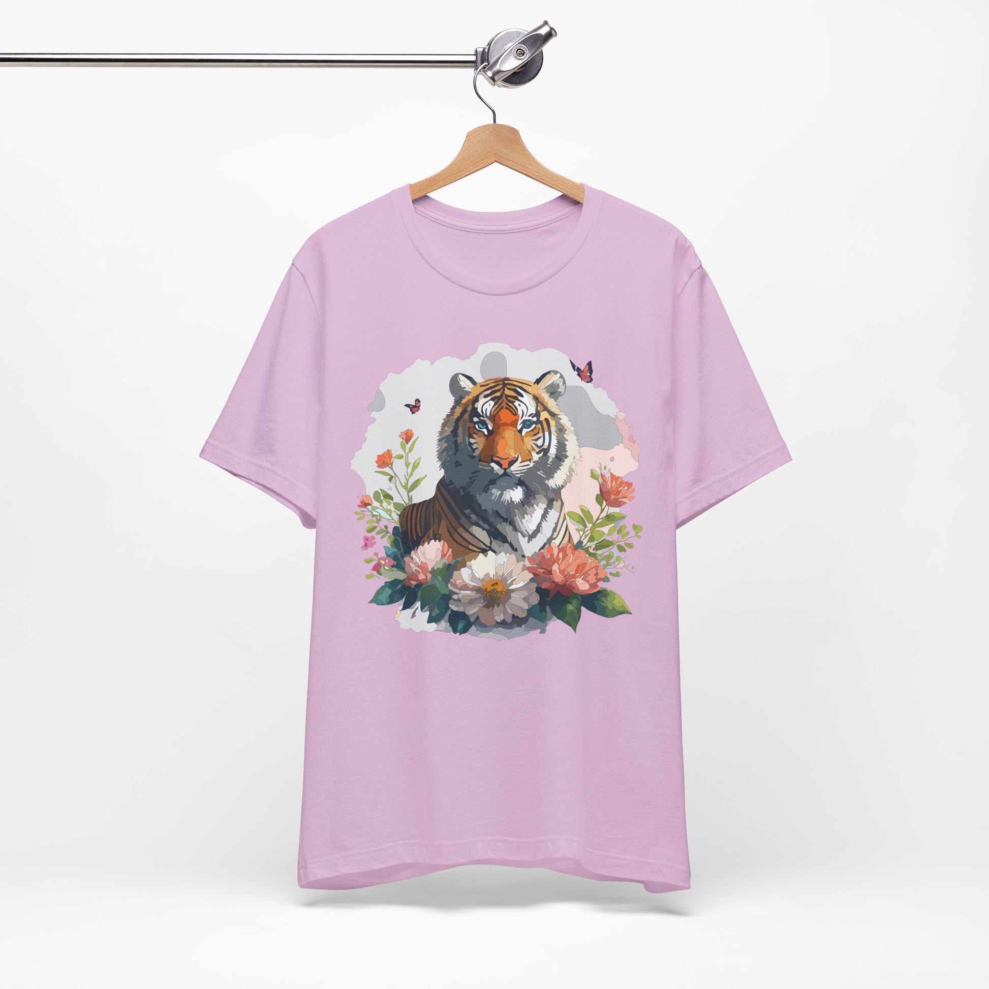 Floral Tiger Graphic Tee, Animal Shirt, Tiger Shirt, Flower Top, T-Shirt with Animal, Art Design