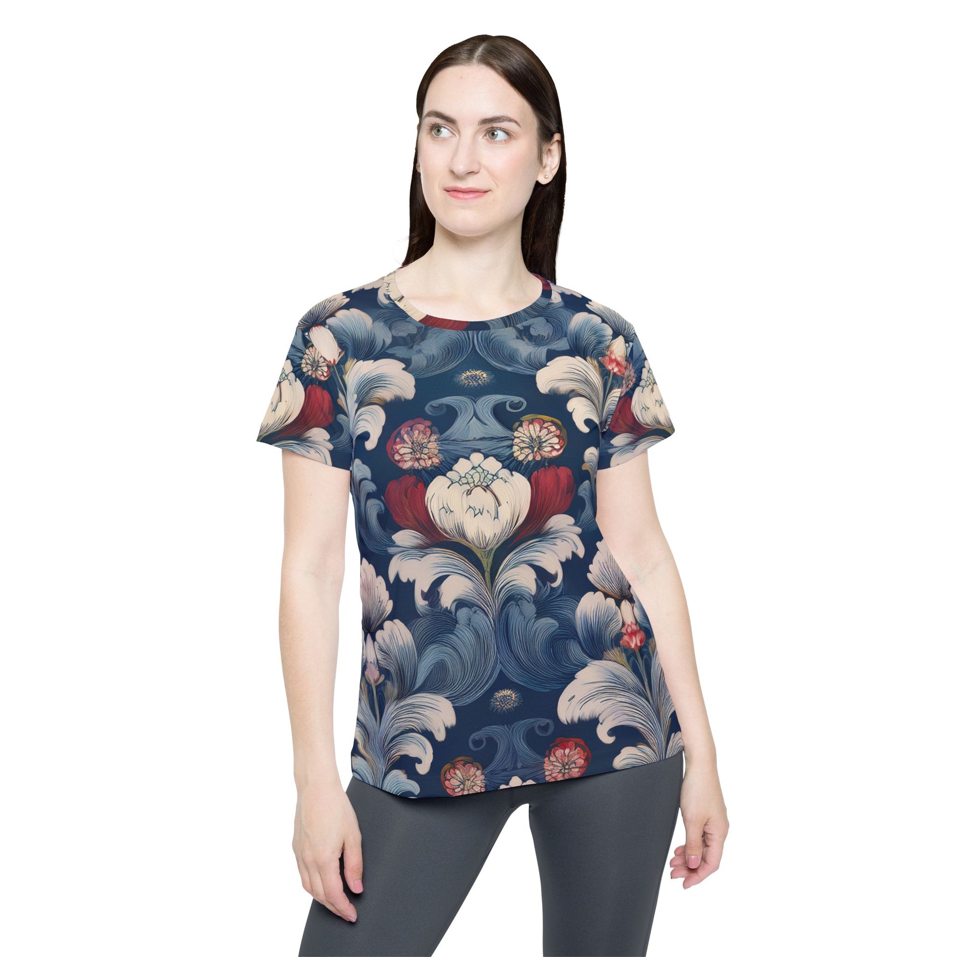 Floral Print Shirt – Made from 100% moisture-wicking performance polyester, this extra-light fabric (4.13 oz/yd²) ensures breathability and comfort. Designed for active lifestyles, its stretchy, durable material provides both style and performance. Featuring a unique all-over print, this nature-inspired jersey offers a bold, timeless look. This Poly Tee combines fashion and function, making it the perfect choice for any adventure or workout.