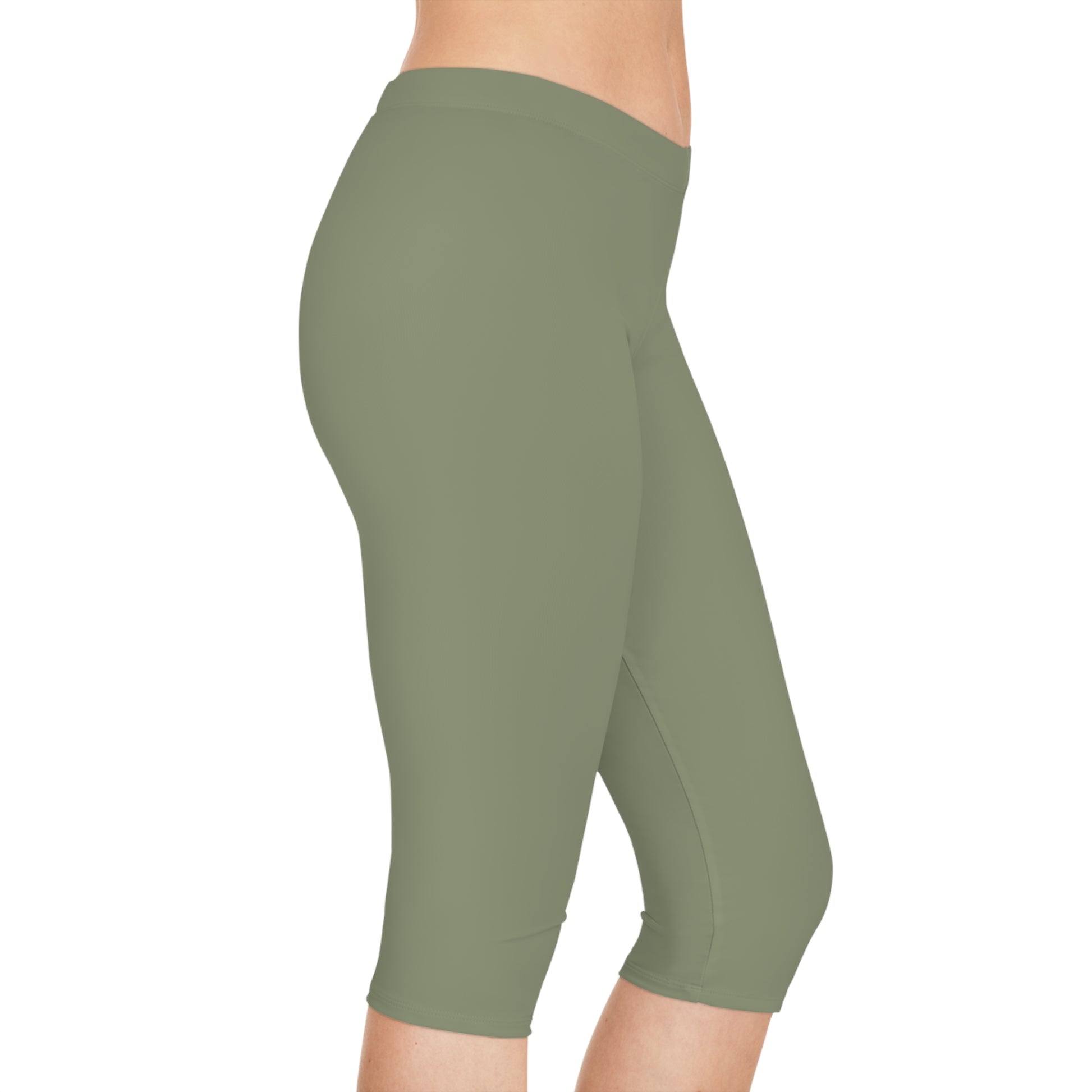 Green Color Capri Leggings, Green Capri Leggings - From PPU.BEST. Free shipping! Material: 88% polyester, 12% elastane – a highly stretchy fabric. The elastane provides exceptional flexibility and softness for maximum comfort. Medium-weight fabric (6.5 oz/yd² or 220 g/m²). Designed with a mid-waist and compression fit, these leggings offer a sleek and supportive feel, perfect for everyday wear in any setting.