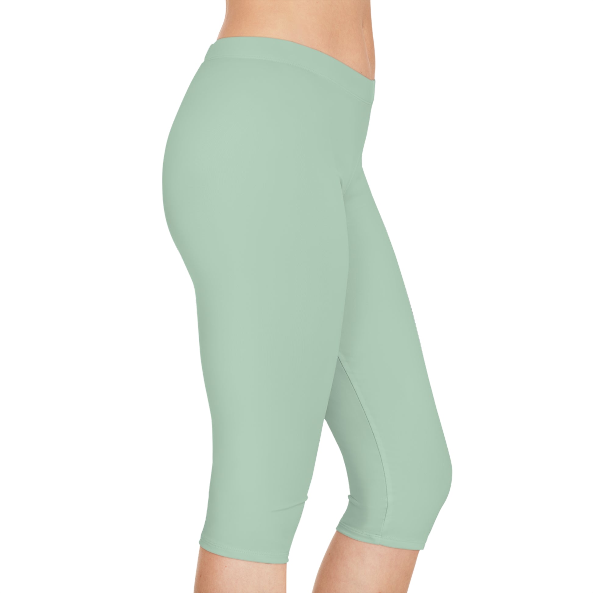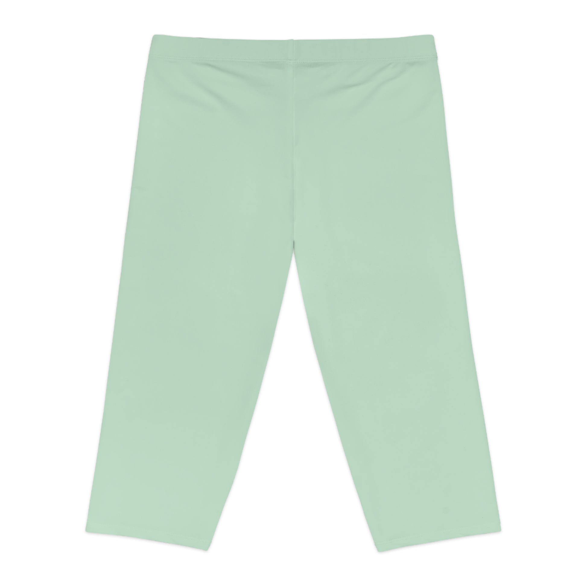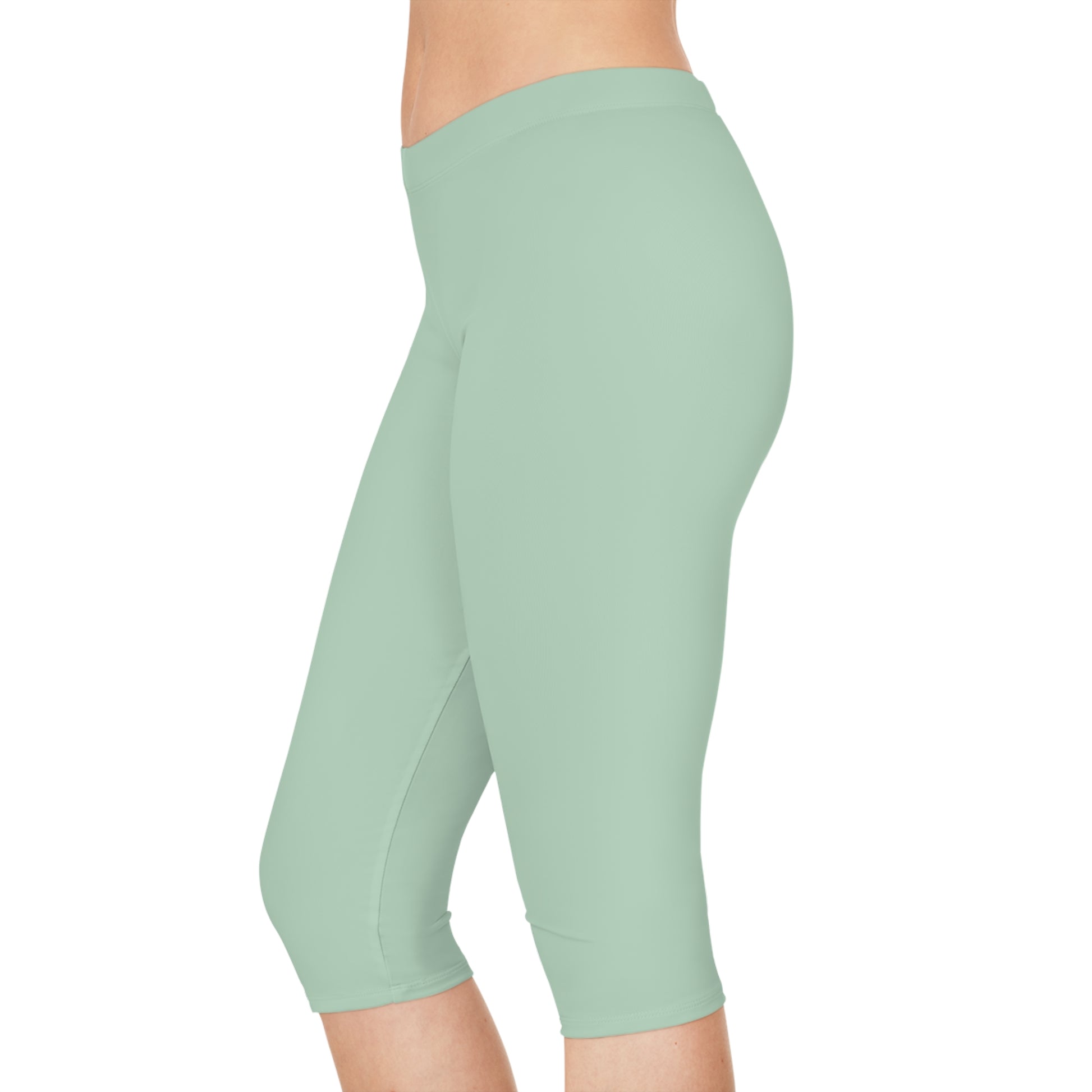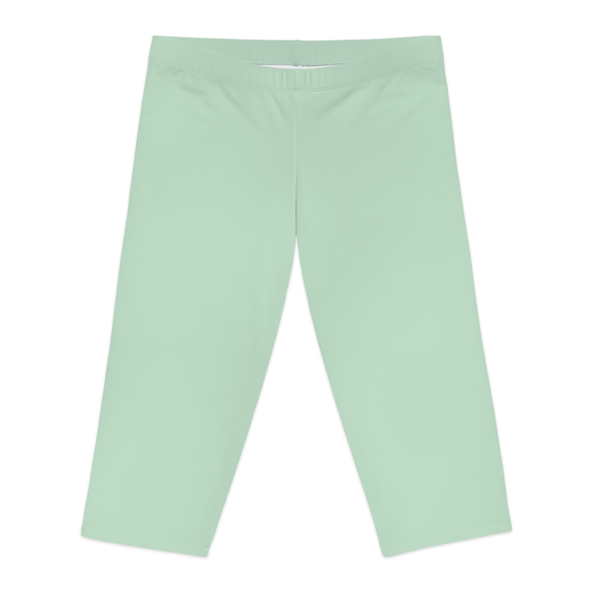 Green Color Capri Leggings, Green Capri Leggings - From PPU.BEST. Free shipping! Material: 88% polyester, 12% elastane – a highly stretchy fabric. The elastane provides exceptional flexibility and softness for maximum comfort. Medium-weight fabric (6.5 oz/yd² or 220 g/m²). Designed with a mid-waist and compression fit, these leggings offer a sleek and supportive feel, perfect for everyday wear in any setting.