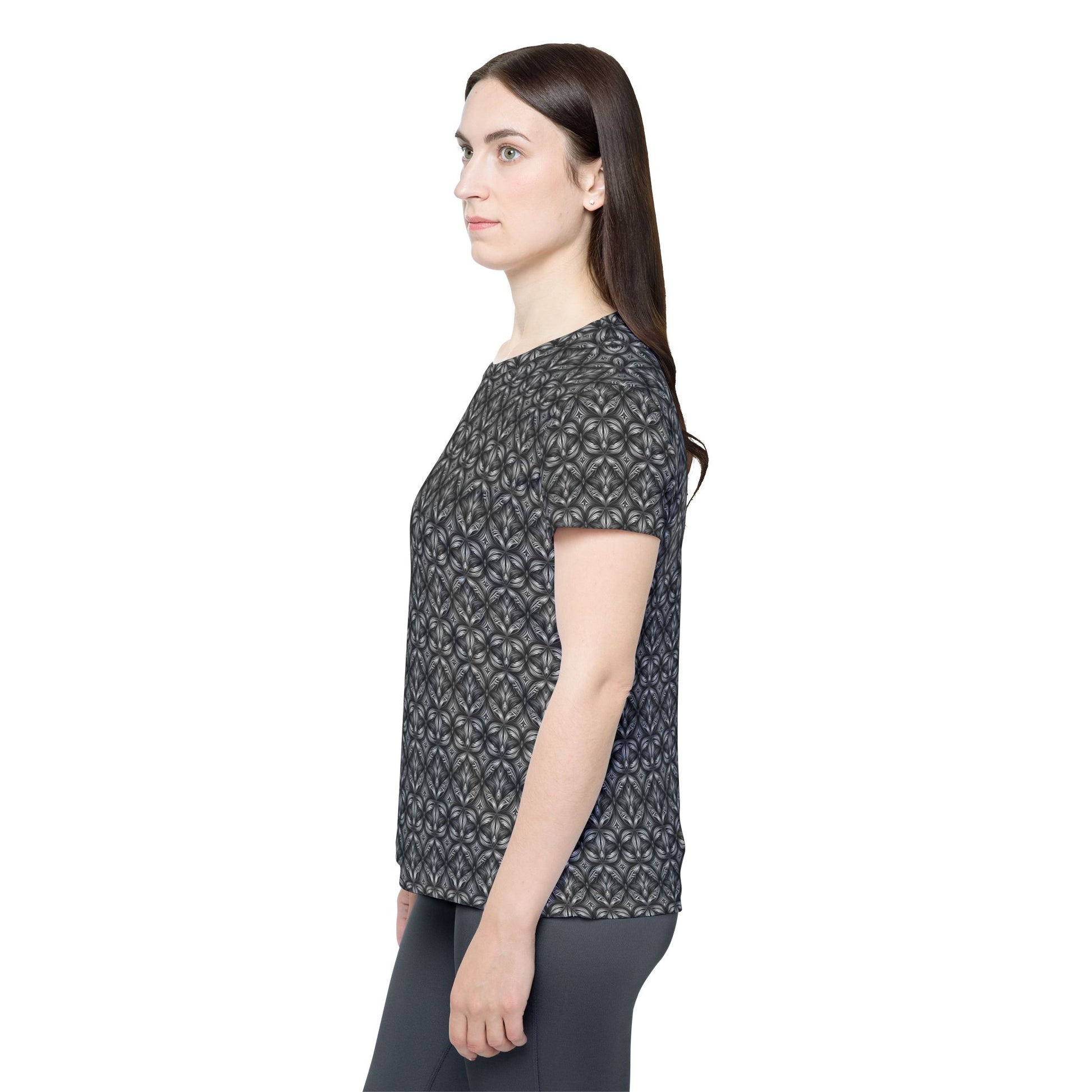 Ornament Shirt – Made from 100% moisture-wicking performance polyester, this extra-light fabric (4.13 oz/yd²) ensures breathability and comfort. Designed for active lifestyles, its stretchy, durable material provides both style and performance. Featuring a unique all-over print, this nature-inspired jersey offers a bold, timeless look. This Poly Tee combines fashion and function, making it the perfect choice for any adventure or workout.