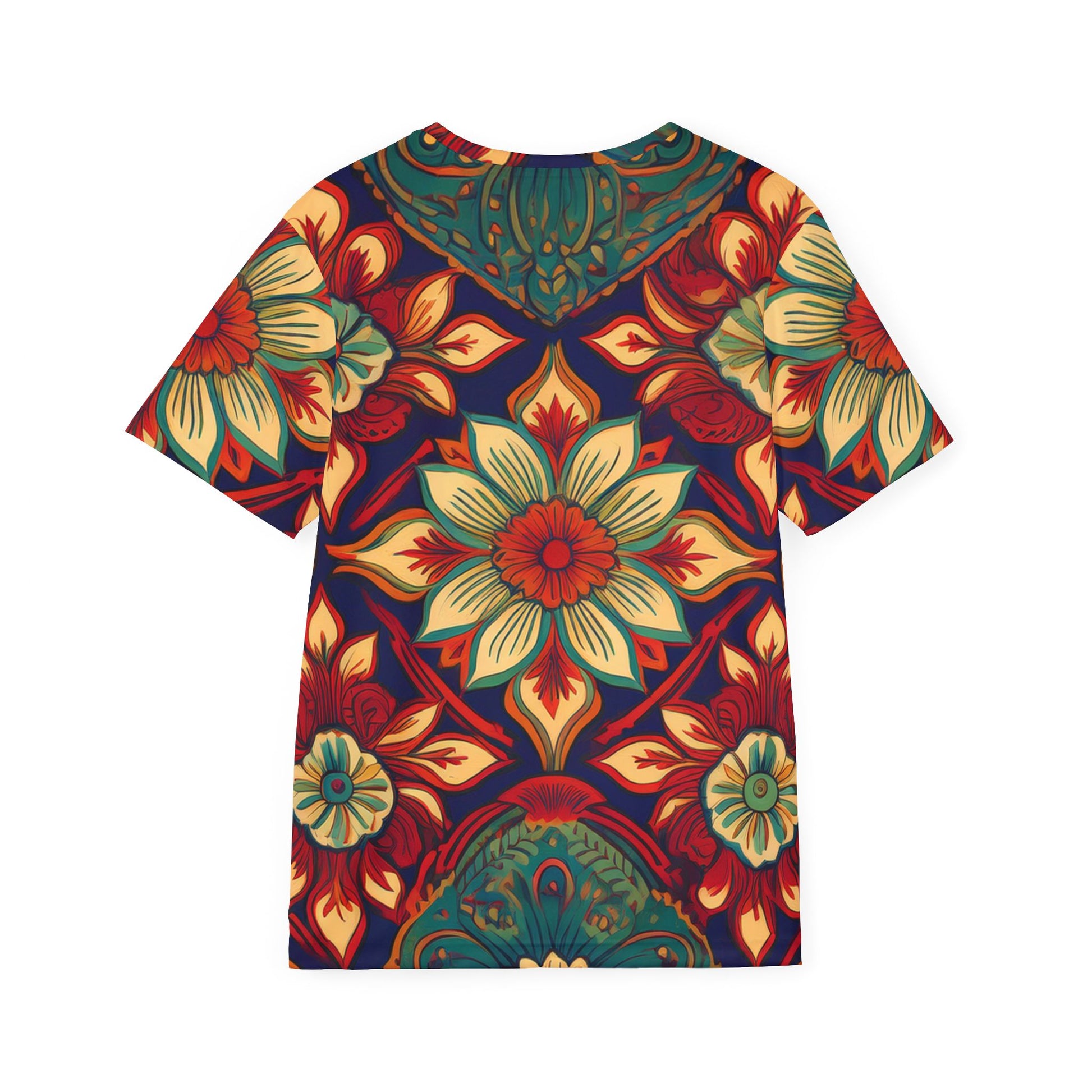 Unisex Ornament Shirt, Shirt with Ornament – Made from 100% moisture-wicking performance polyester, this extra-light fabric (4.13 oz/yd²) ensures breathability and comfort. Designed for active lifestyles, its stretchy, durable material provides both style and performance. Featuring a unique all-over print, this nature-inspired jersey offers a bold, timeless look. This Poly Tee combines fashion and function, making it the perfect choice for any adventure or workout.