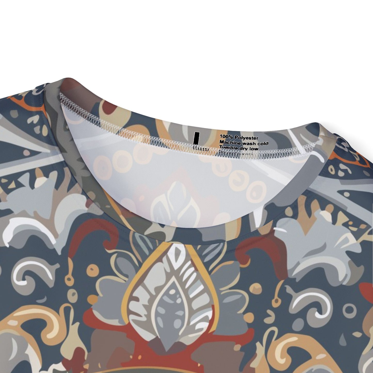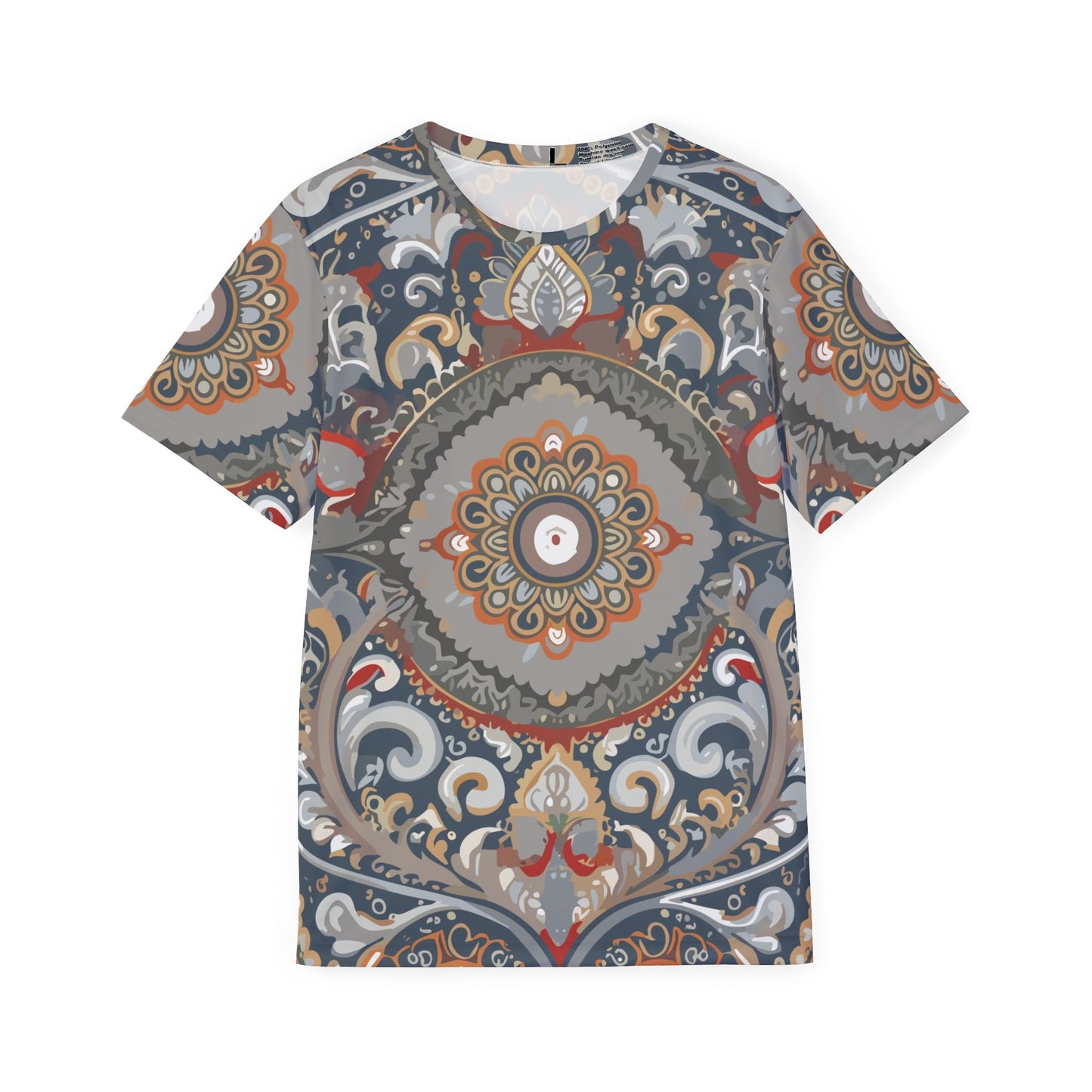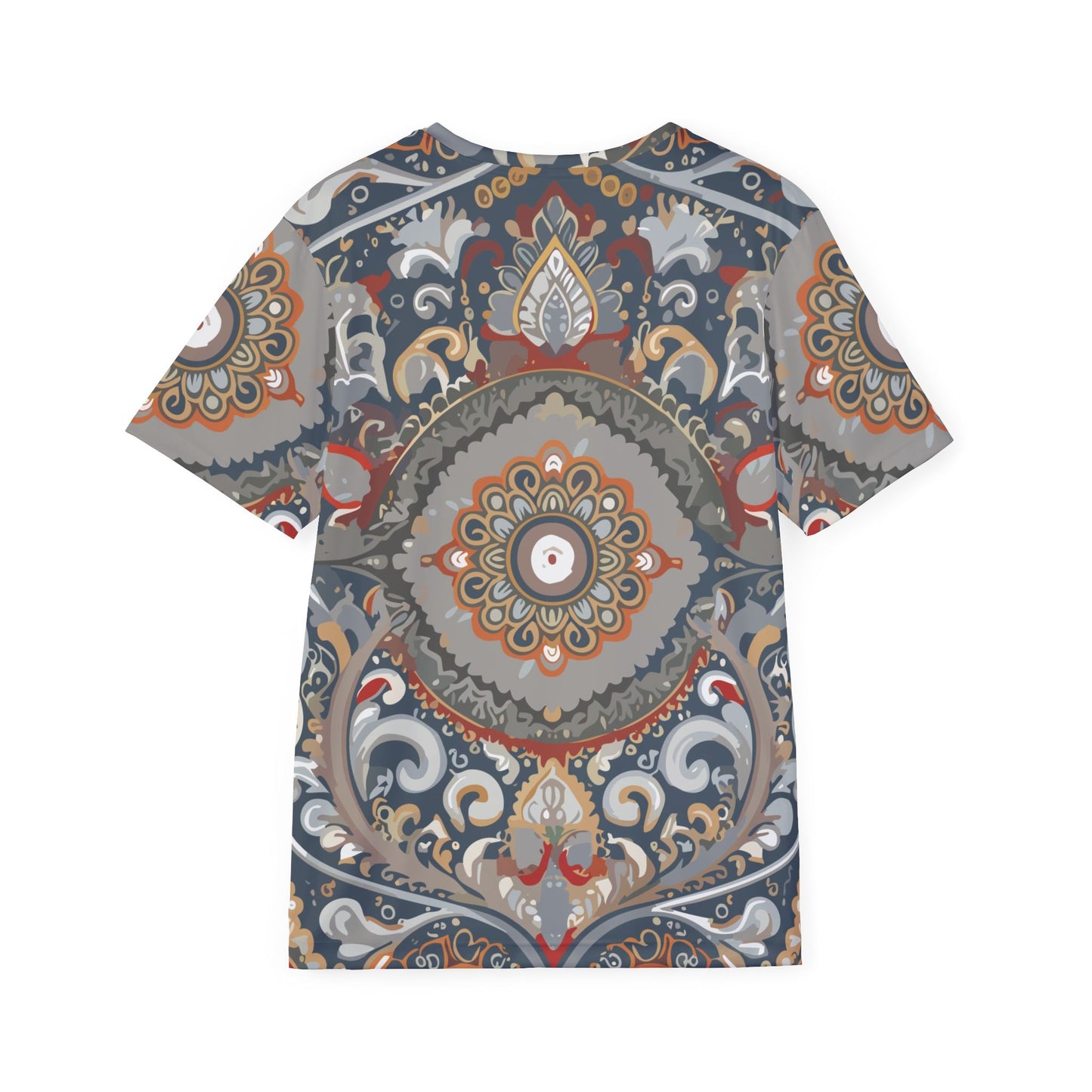 Unisex Ornament Shirt, Shirt with Ornament – Made from 100% moisture-wicking performance polyester, this extra-light fabric (4.13 oz/yd²) ensures breathability and comfort. Designed for active lifestyles, its stretchy, durable material provides both style and performance. Featuring a unique all-over print, this nature-inspired jersey offers a bold, timeless look. This Poly Tee combines fashion and function, making it the perfect choice for any adventure or workout.