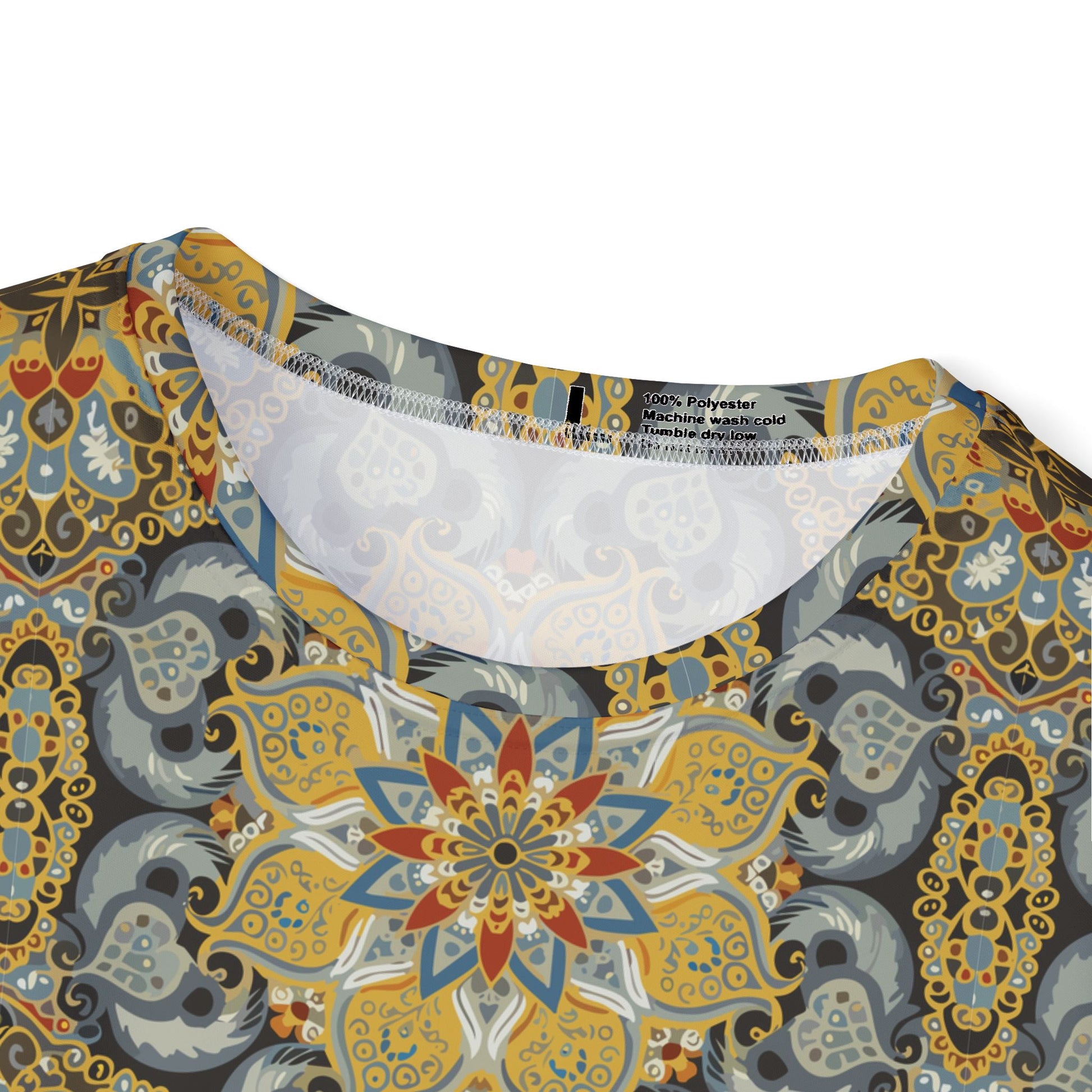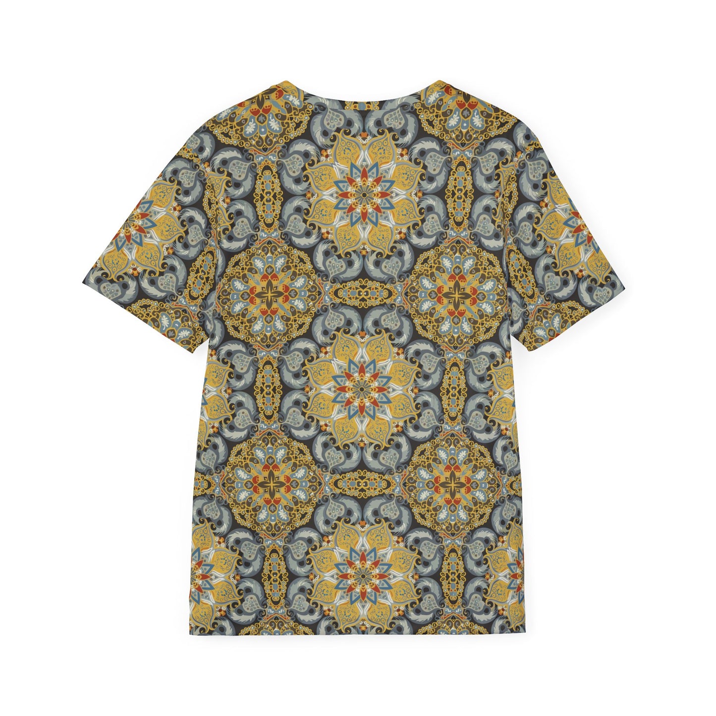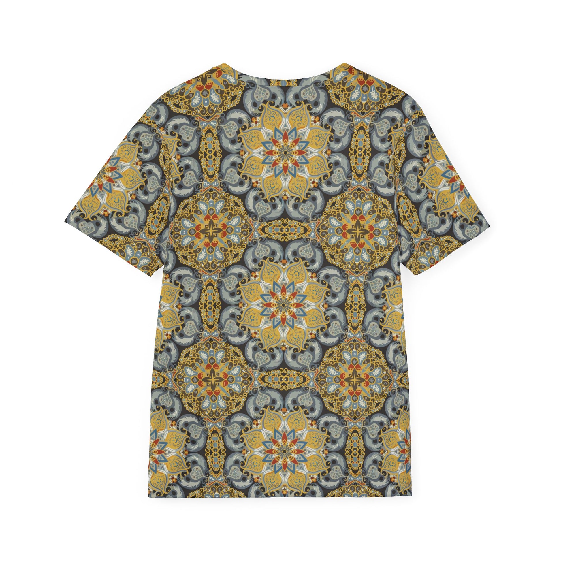 Unisex Ornament Shirt, Shirt with Ornament – Made from 100% moisture-wicking performance polyester, this extra-light fabric (4.13 oz/yd²) ensures breathability and comfort. Designed for active lifestyles, its stretchy, durable material provides both style and performance. Featuring a unique all-over print, this nature-inspired jersey offers a bold, timeless look. This Poly Tee combines fashion and function, making it the perfect choice for any adventure or workout.