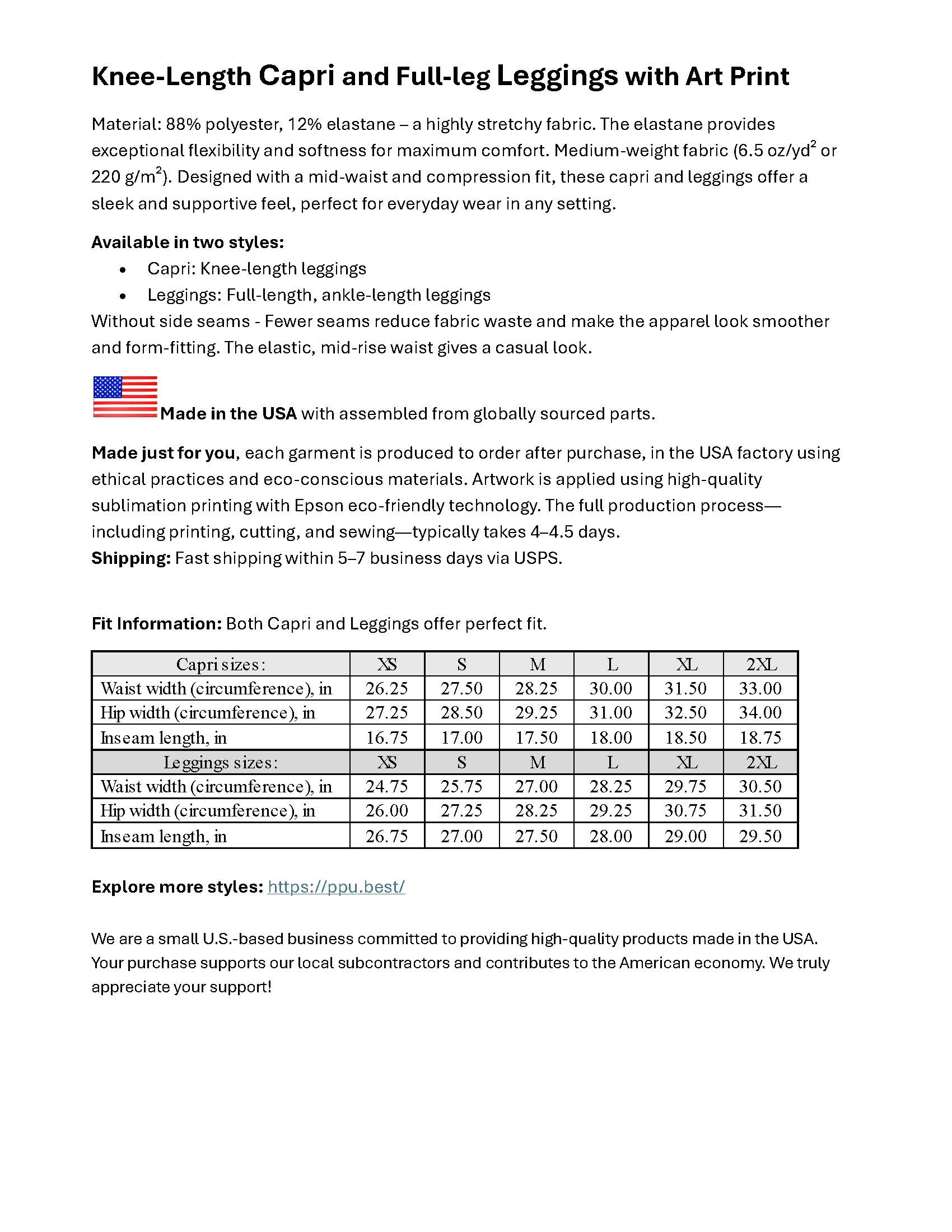 Each garment is produced to order using ethical practices and eco-conscious materials. Designs are applied with high-quality sublimation printing using Epson eco-friendly technology. The complete production process (printing, cutting, and sewing) typically takes 4–4.5 business days.