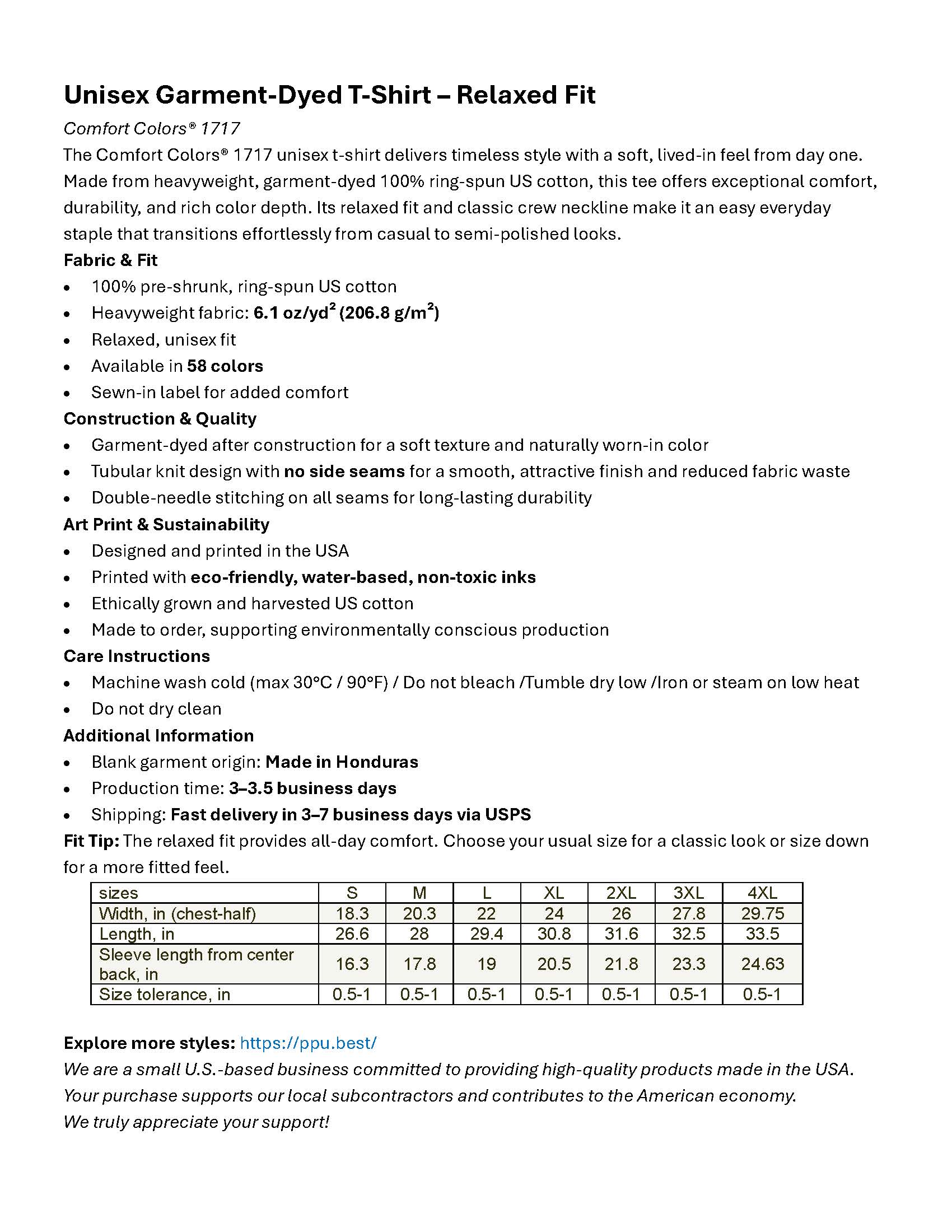 · 100% pre-shrunk, ring-spun US cotton