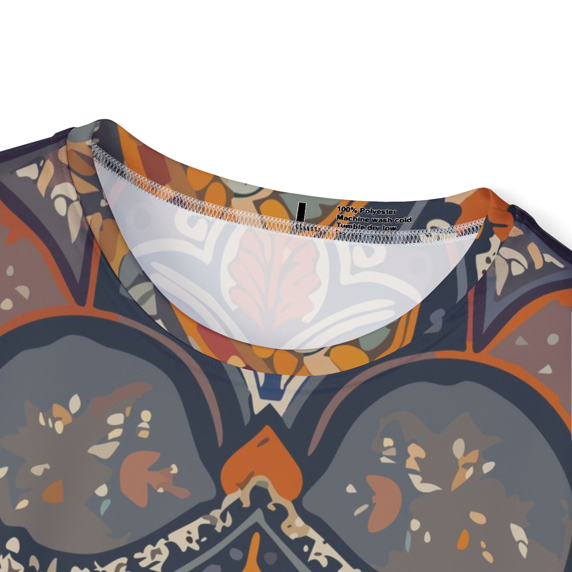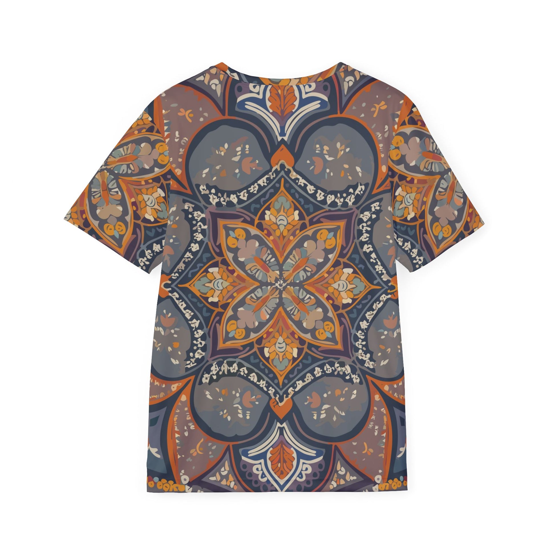 Unisex Ornament Shirt, Shirt with Ornament – Made from 100% moisture-wicking performance polyester, this extra-light fabric (4.13 oz/yd²) ensures breathability and comfort. Designed for active lifestyles, its stretchy, durable material provides both style and performance. Featuring a unique all-over print, this nature-inspired jersey offers a bold, timeless look. This Poly Tee combines fashion and function, making it the perfect choice for any adventure or workout.