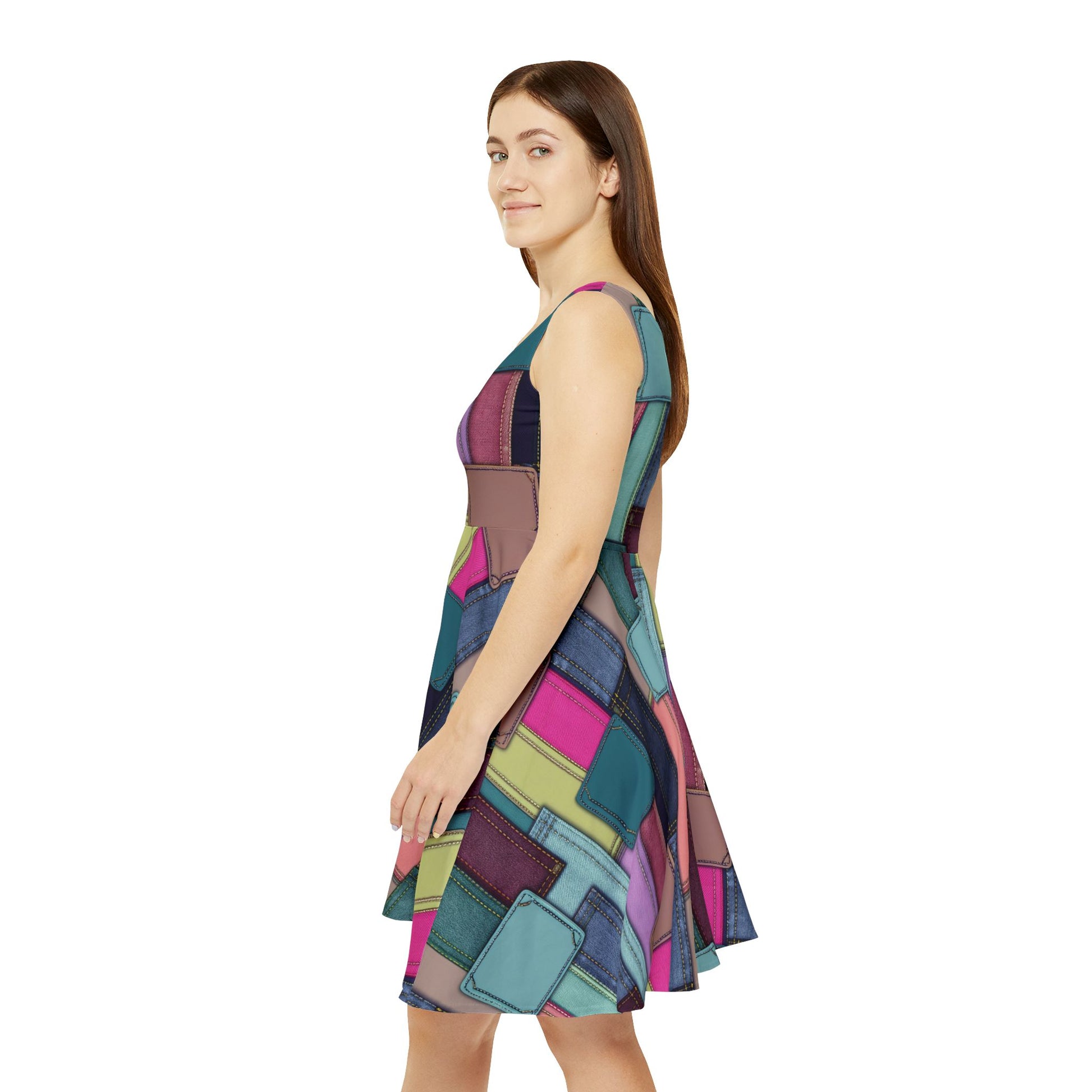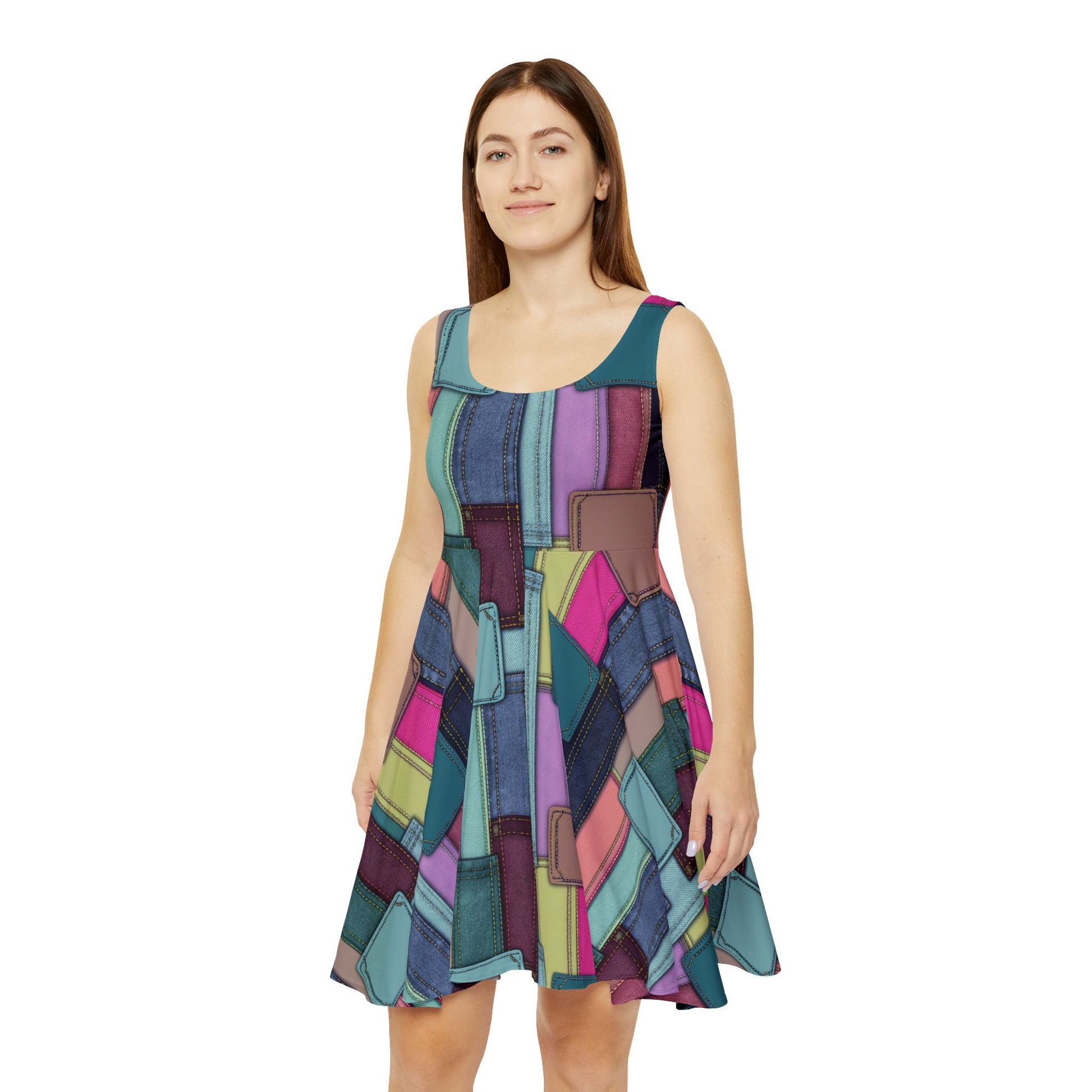 Women Denim Print Skater Dress, Denim Print Poly-Span Dress - 14