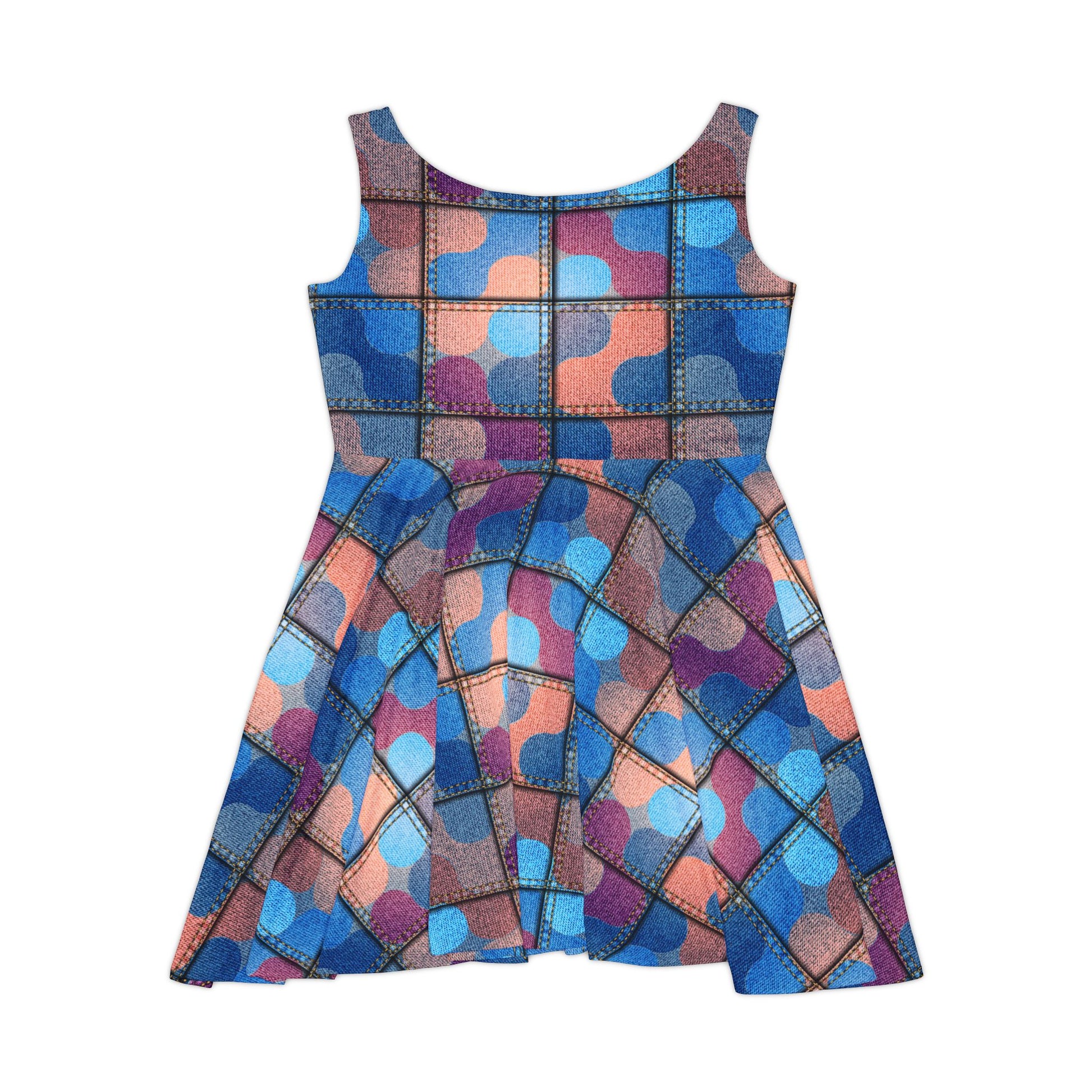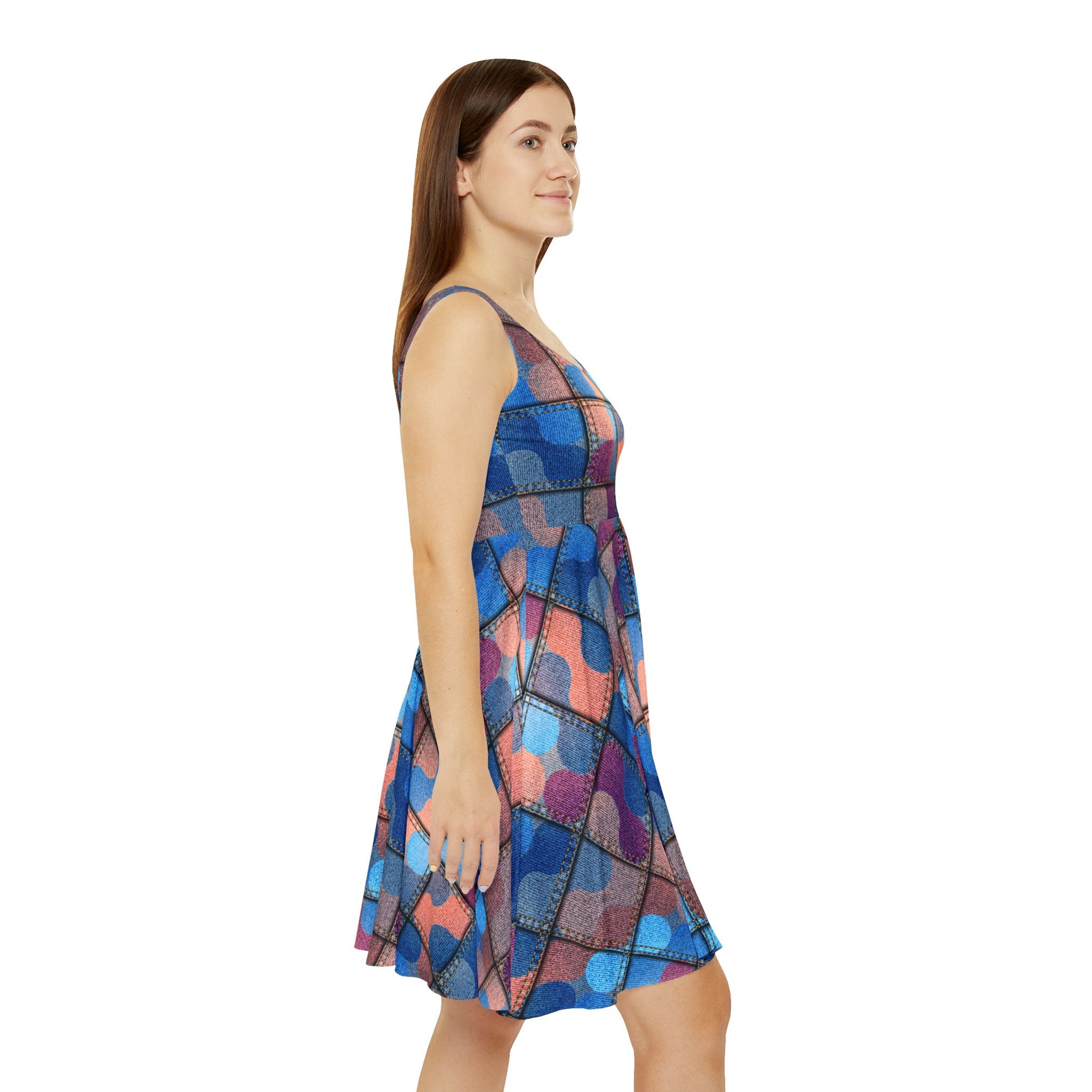 Women Denim Print Skater Dress, Denim Print Poly-Span Dress - 16