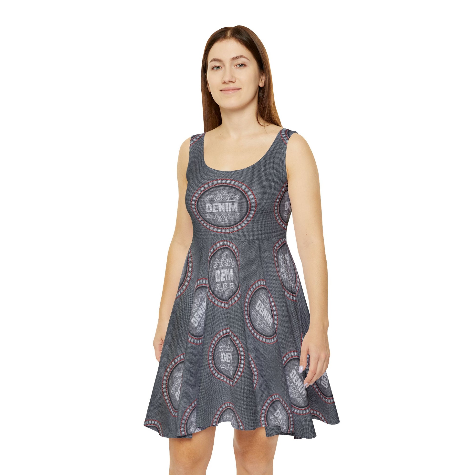 Women Denim Print Skater Dress, Denim Print Poly-Span Dress - 19