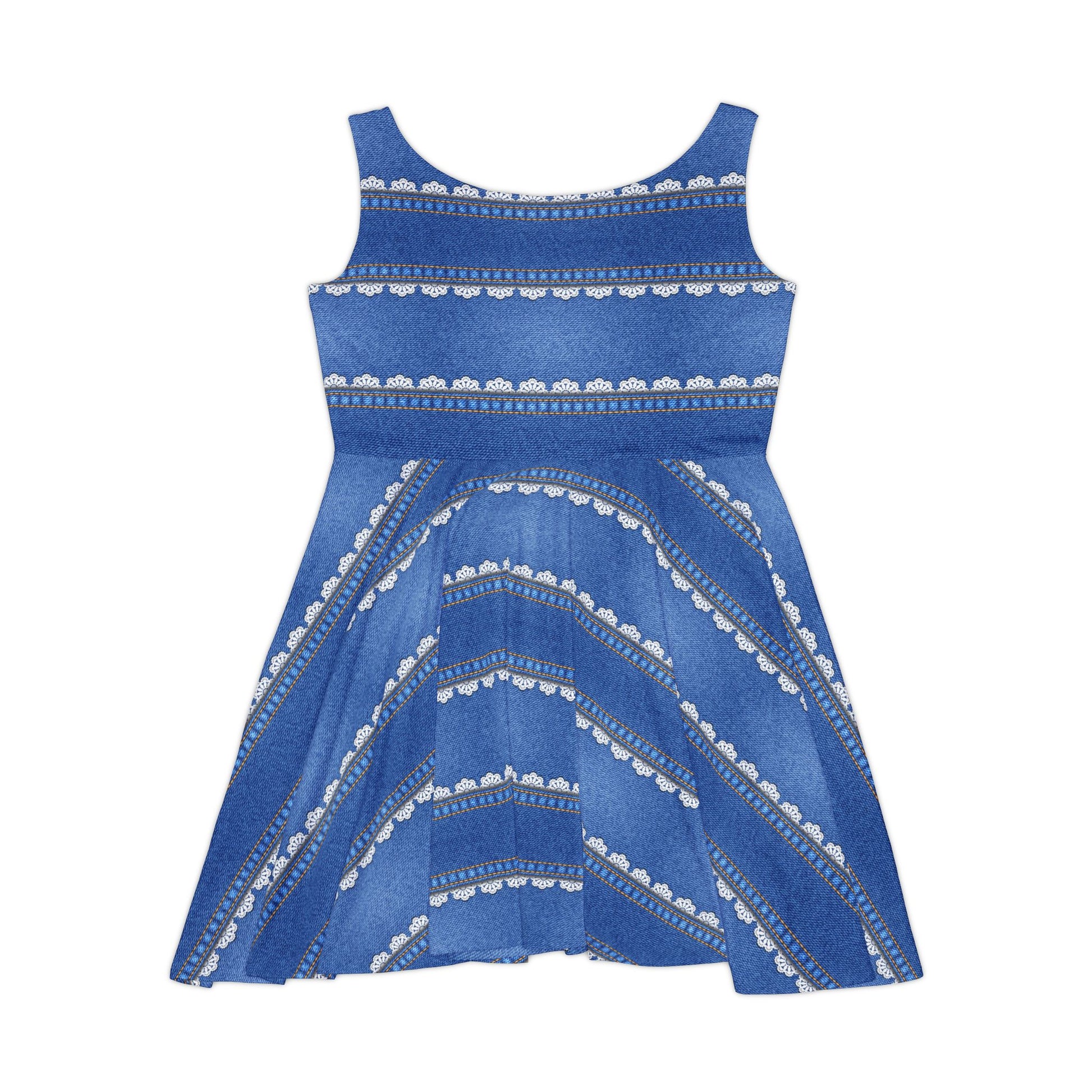 Women Denim Print Skater Dress, Denim Print Poly-Span Dress - 20