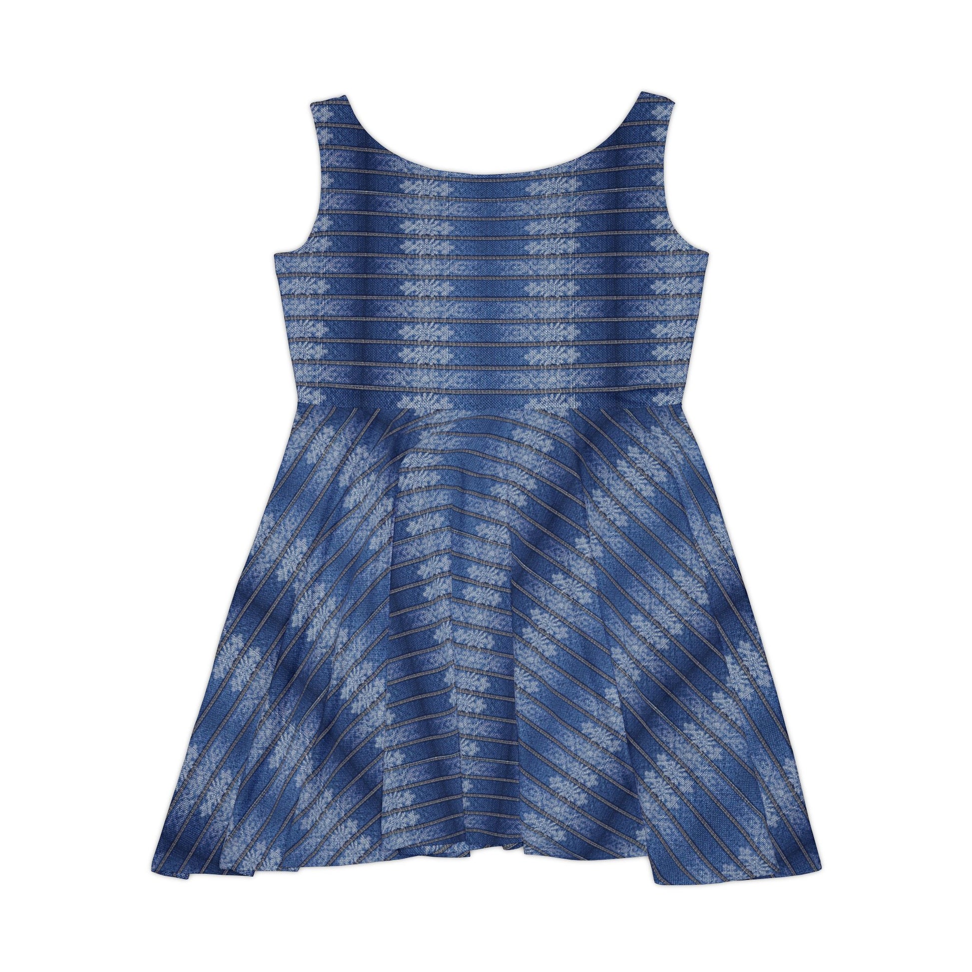 Women Denim Print Skater Dress, Denim Print Poly-Span Dress - 28