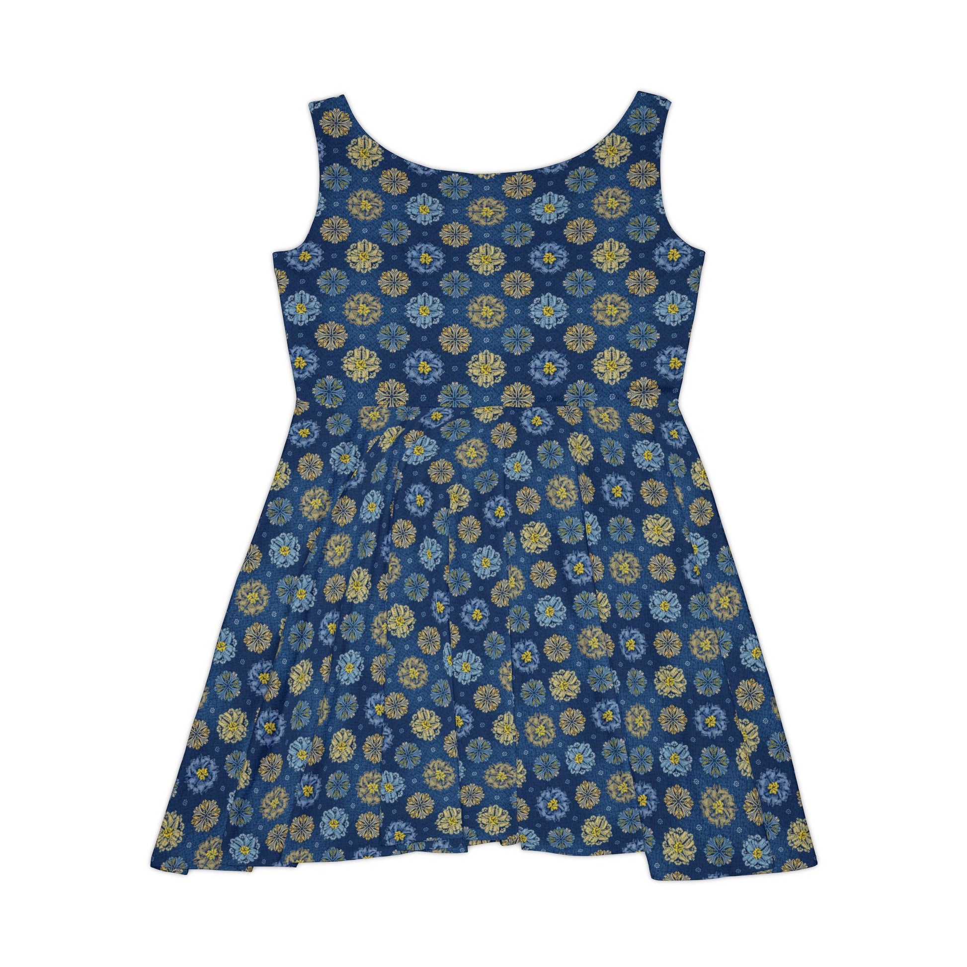 Designed for movement and comfort, this mid-length skater dress features a soft polyester-spandex blend with a high scoop neckline and an asymmetrical skirt that flows with every step. Durable double-needle stitching and vibrant dye-sublimation printing ensure long-lasting shape and color.