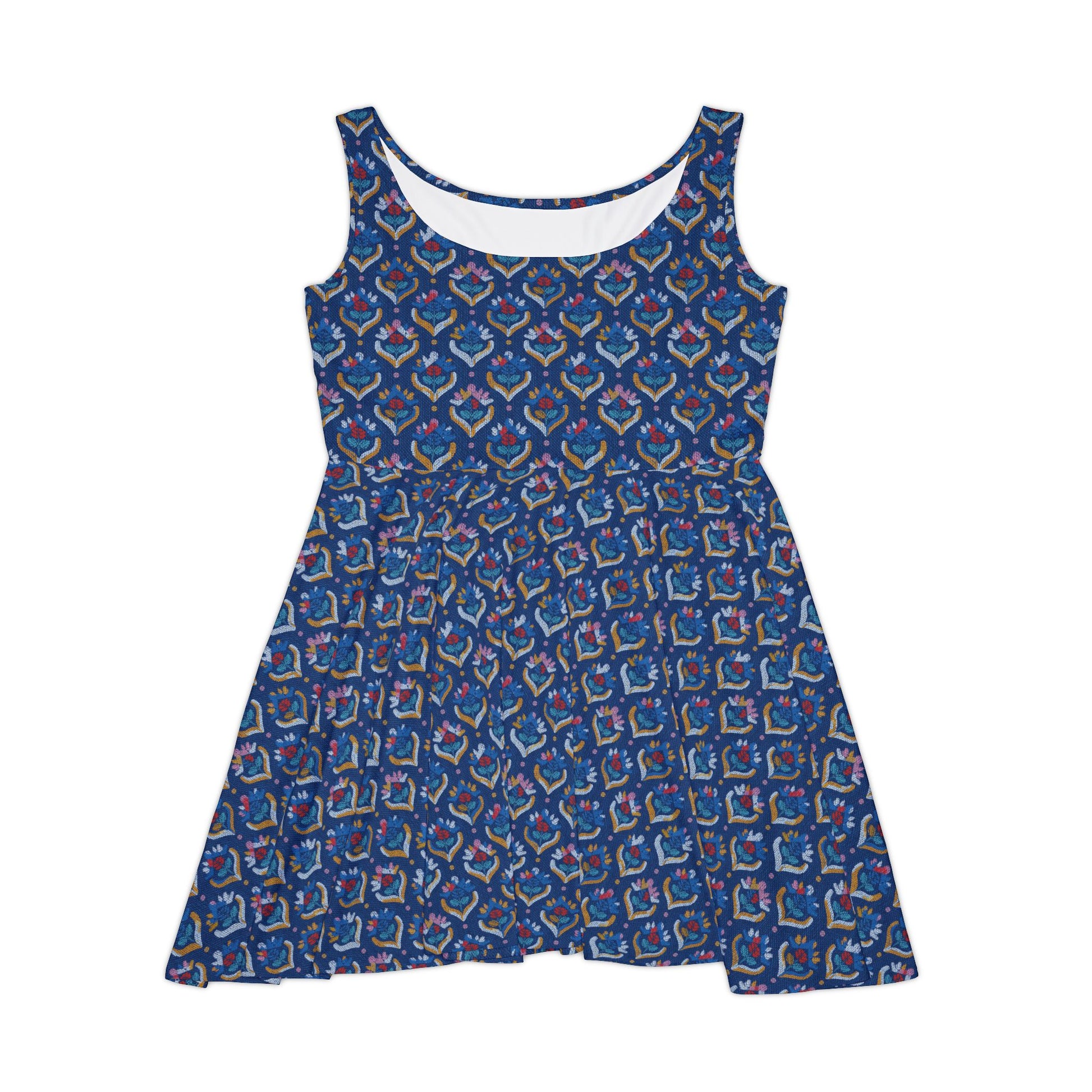 Designed for movement and comfort, this mid-length skater dress features a soft polyester-spandex blend with a high scoop neckline and an asymmetrical skirt that flows with every step. Durable double-needle stitching and vibrant dye-sublimation printing ensure long-lasting shape and color.