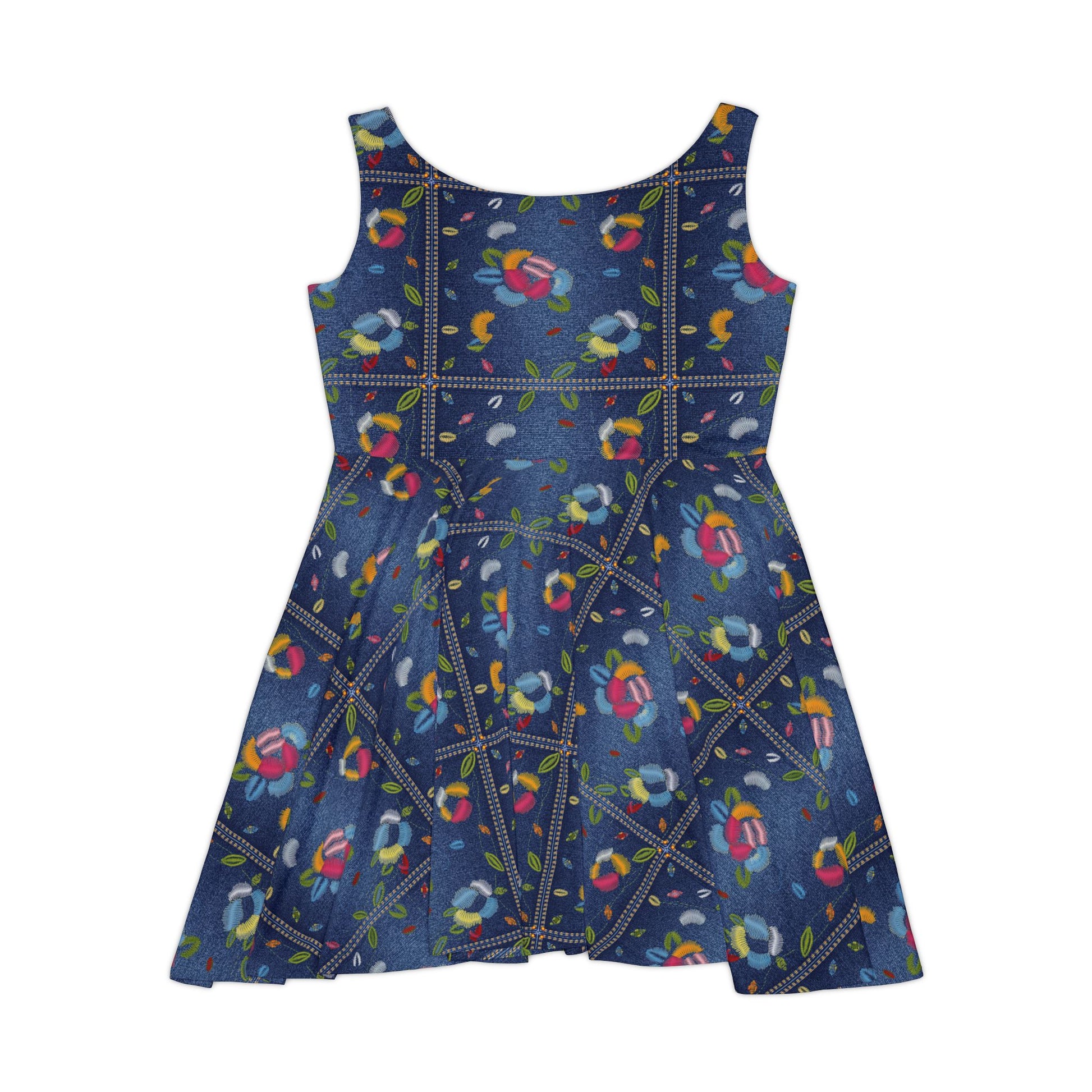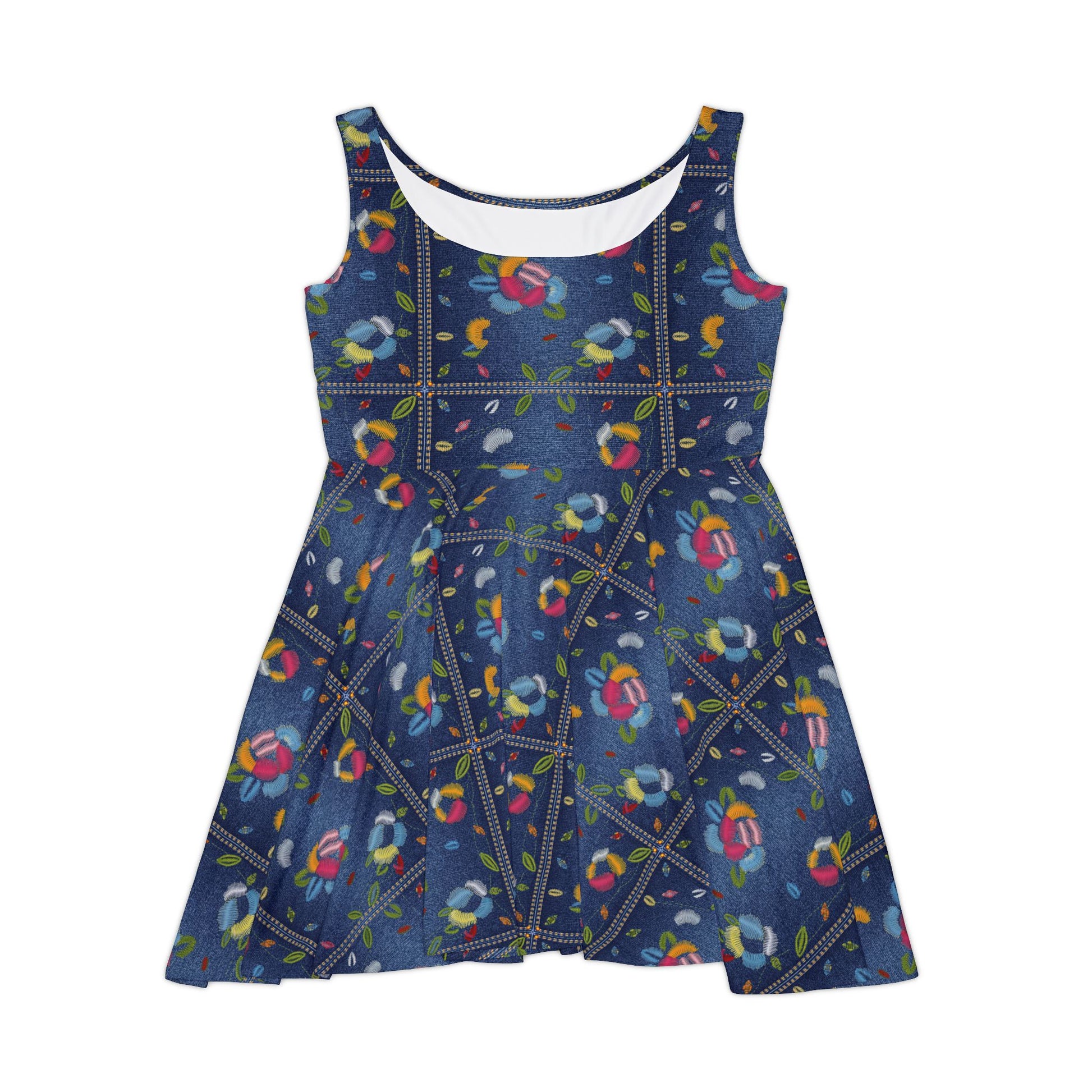 Women Denim Print Skater Dress, Denim Print Poly-Span Dress - 38