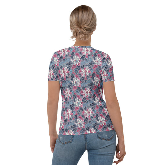 Gloria2, Floral Poly-Span T-Shirt, Ladies Floral Shirt, Floral T-Shirt